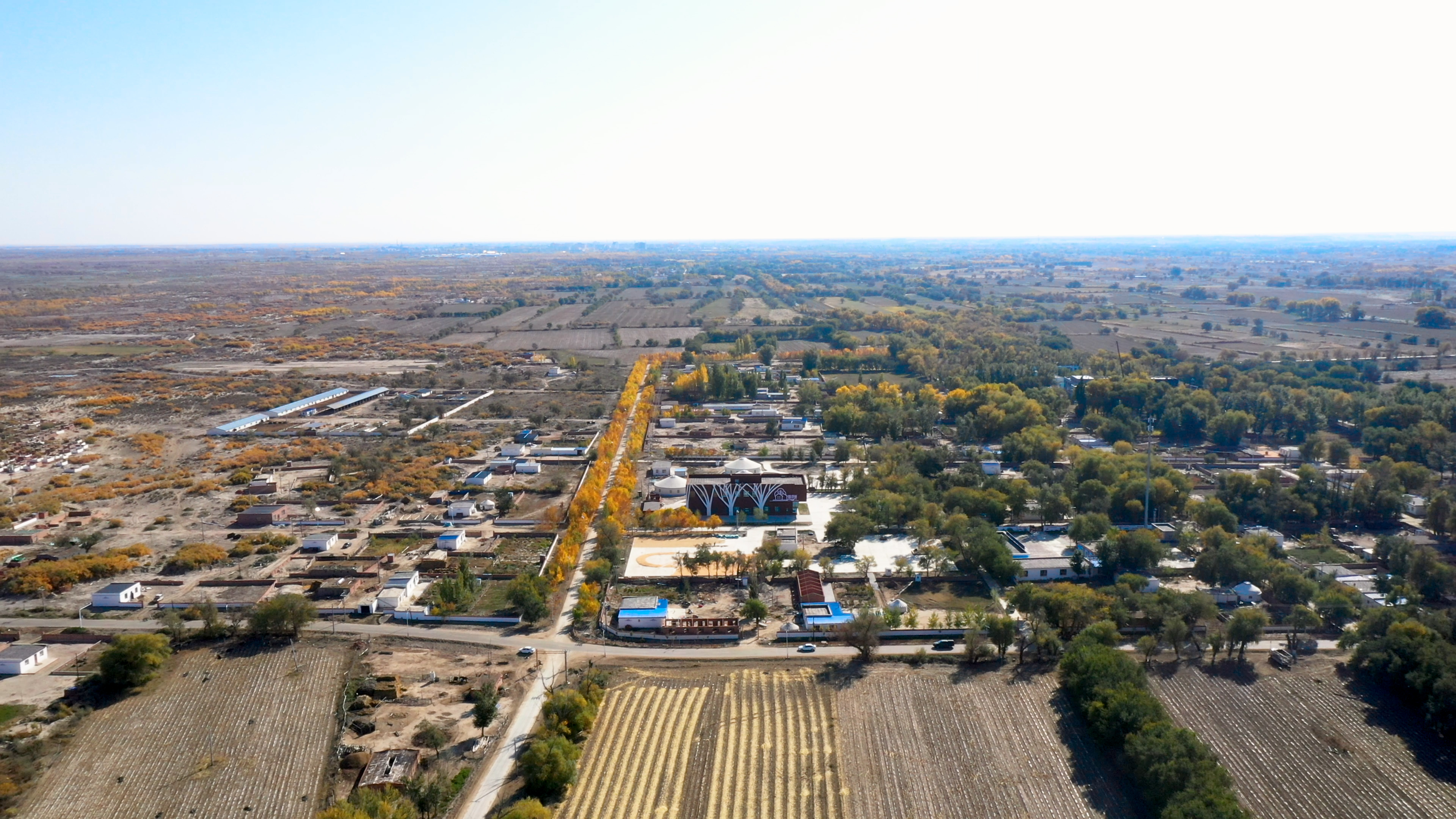 由黑龙江省投资1600万元打造的福海县解特阿热勒镇萨尔塔合塔依旅游示范村全景。