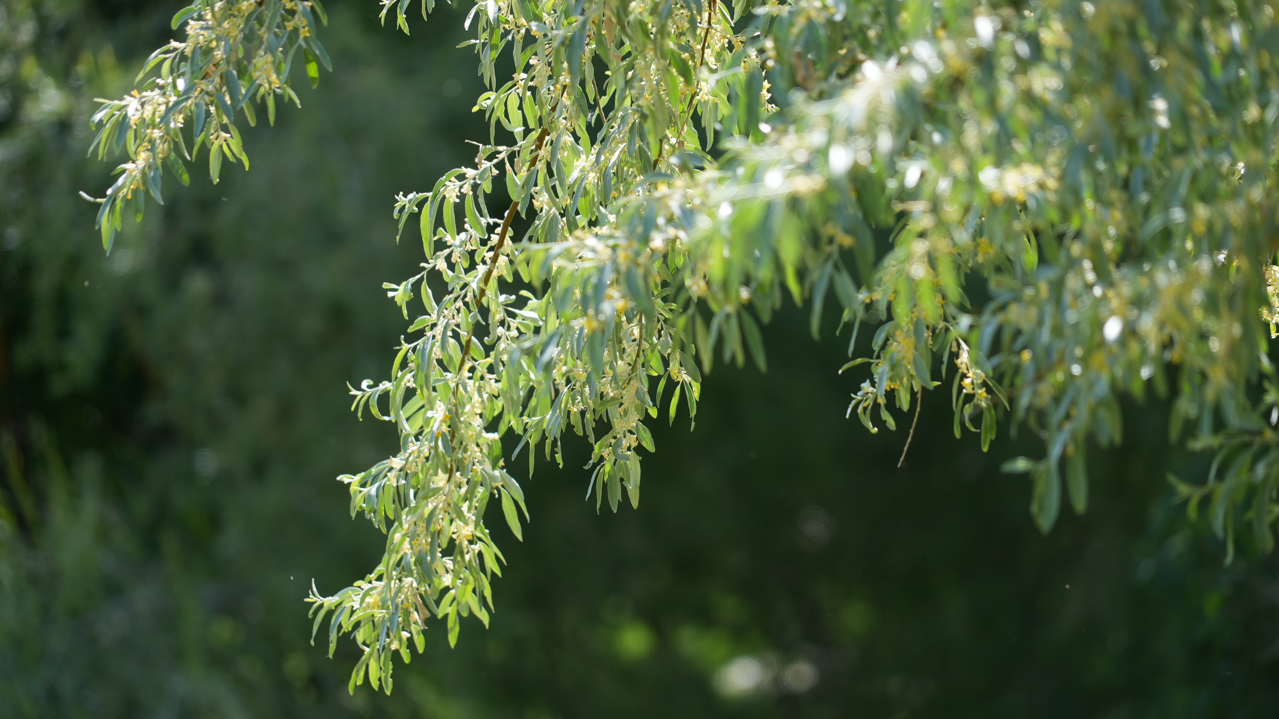 沙枣树是阿勒泰一种比较常见的树种,在山地、河谷、草原、荒滩、戈壁、沙漠均有分布,或兀自生长,或集中连片,生命力极其顽强,具有抗风沙、耐盐碱的特性,有着涵养水源、改良土壤、防风固沙的作用。