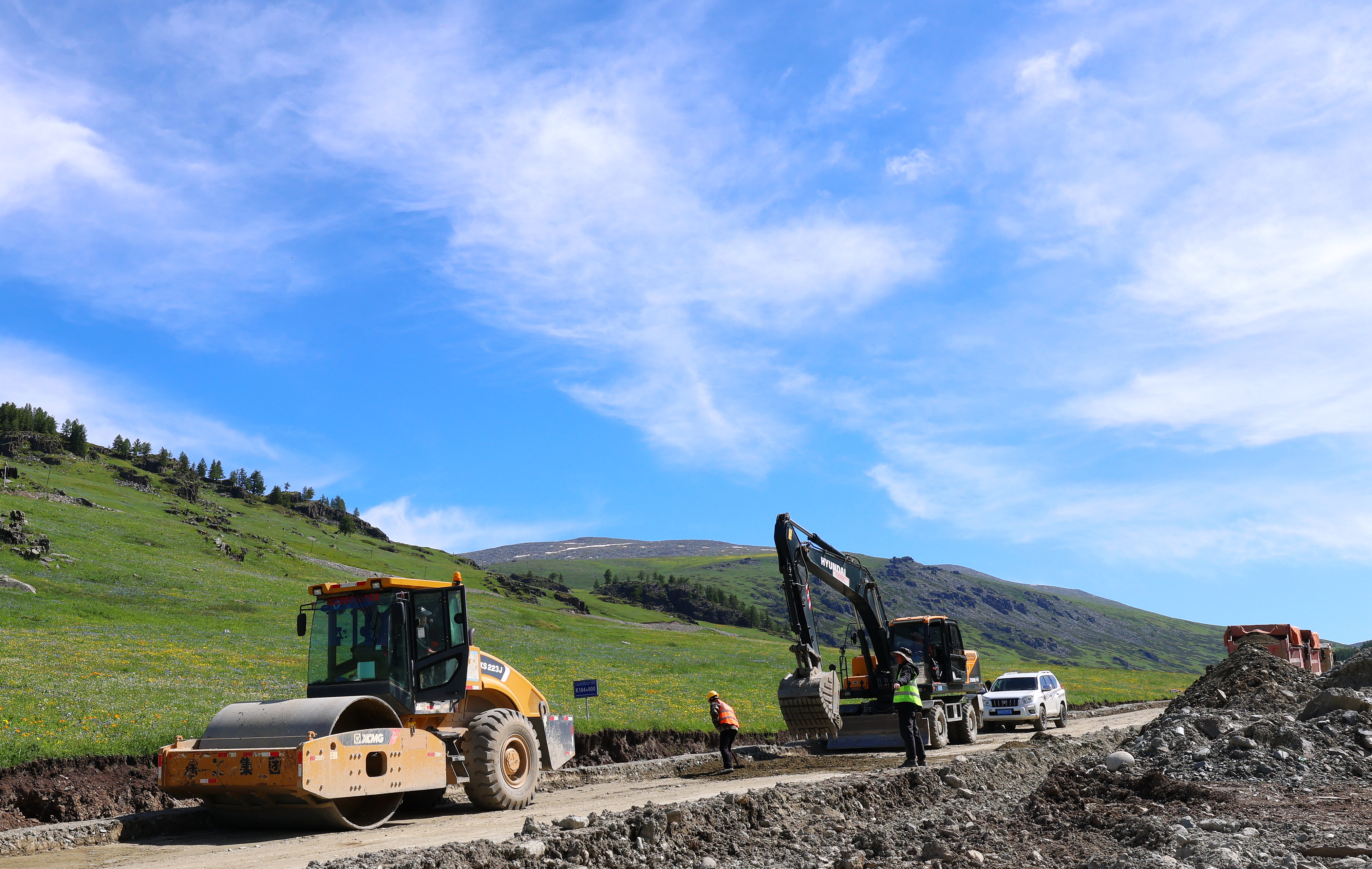 7月5日,阿禾公路切肯达拉路段施工现场,施工人员正在施工。