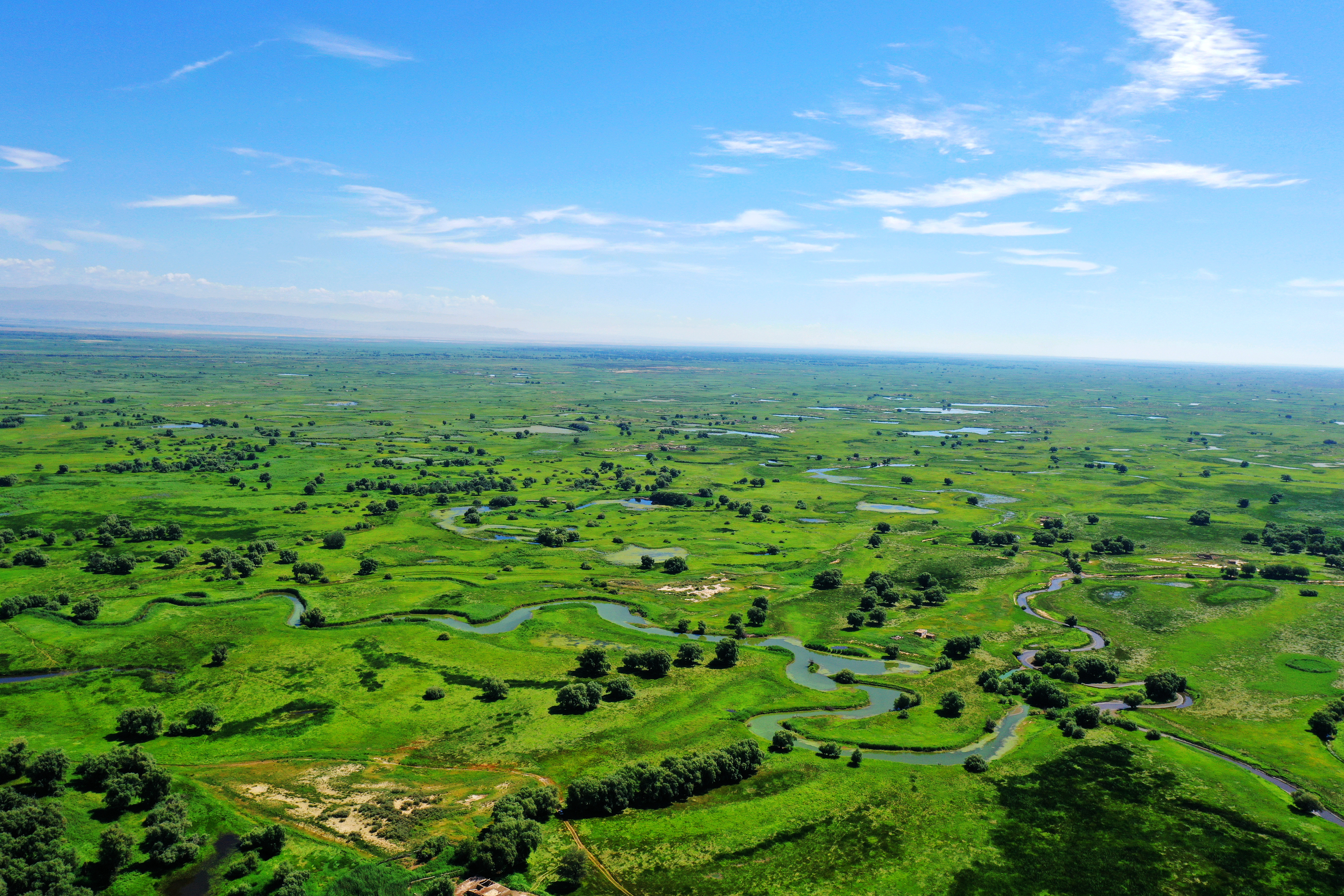 阿勒泰新闻网-阿勒泰地区融媒体中心(记者 阿尔达克·拜斯汗)入夏以来,阿勒泰科克苏湿地国家级自然保护区生机盎然、风景如画。阿勒泰科克苏湿地国家级自然保护区集河流、湖泊、沼泽、草甸、草原、荒漠等多种生态景观类型于一体,是新疆北部戈壁荒漠中最大的沼泽湿地。