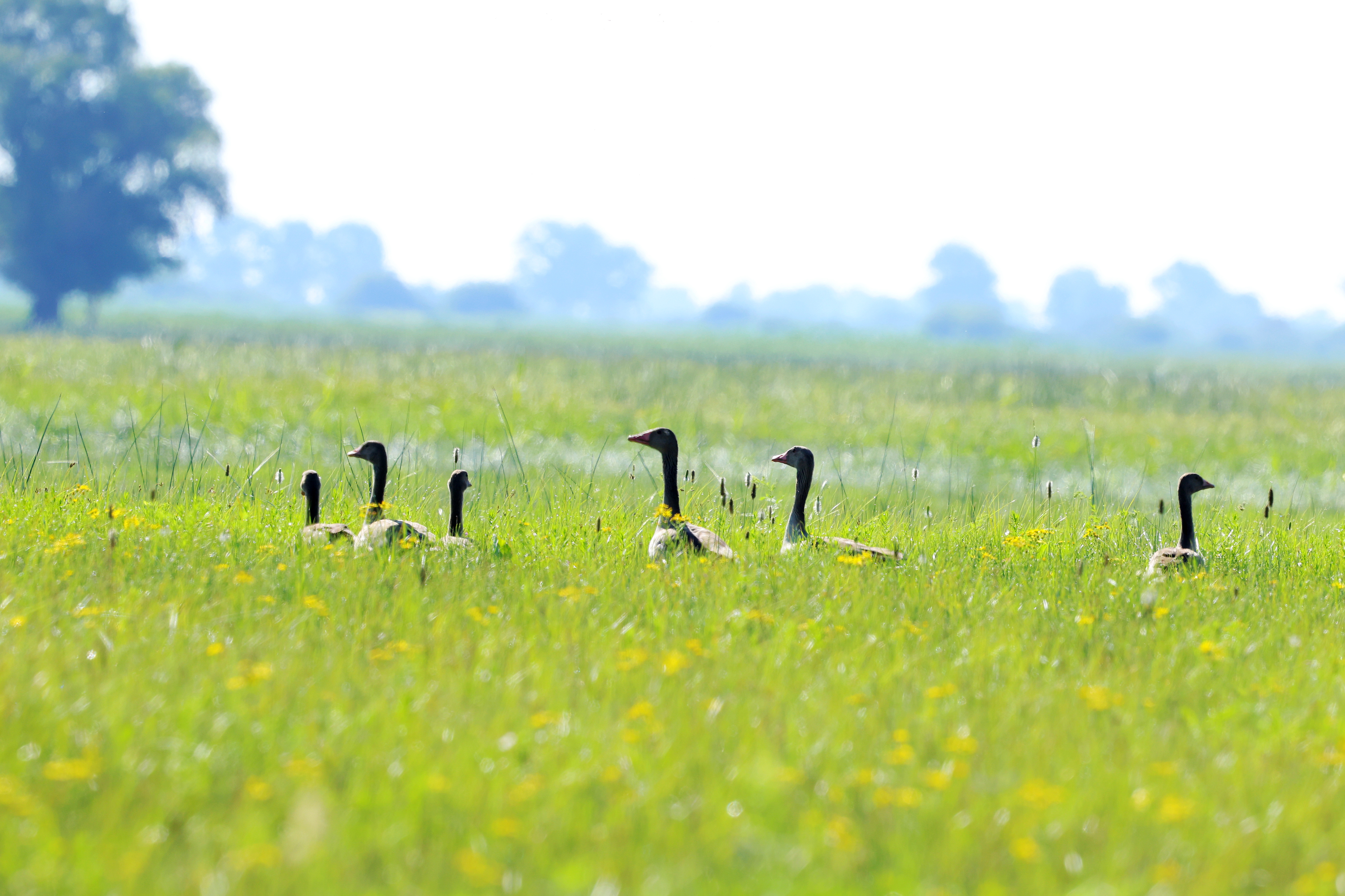 7月18日,一群大雁在阿勒泰科克苏湿地国家级自然保护区栖息觅食