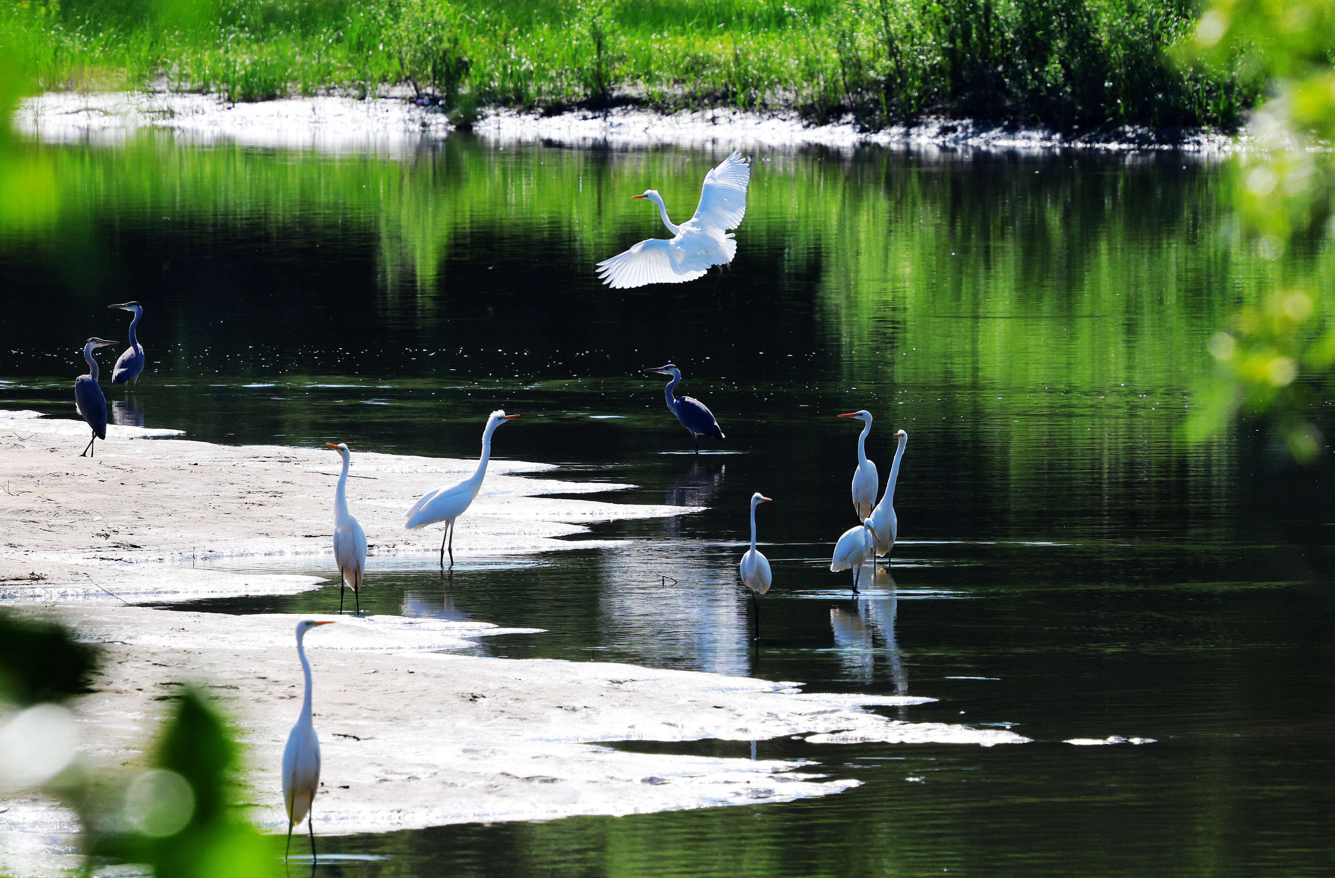 阿勒泰新闻网-阿勒泰地区融媒体中心(记者 阿尔达克·拜斯汗)7月18日,成群的白鹭、大雁等鸟类在阿勒泰科克苏湿地国家级自然保护区栖息、觅食。