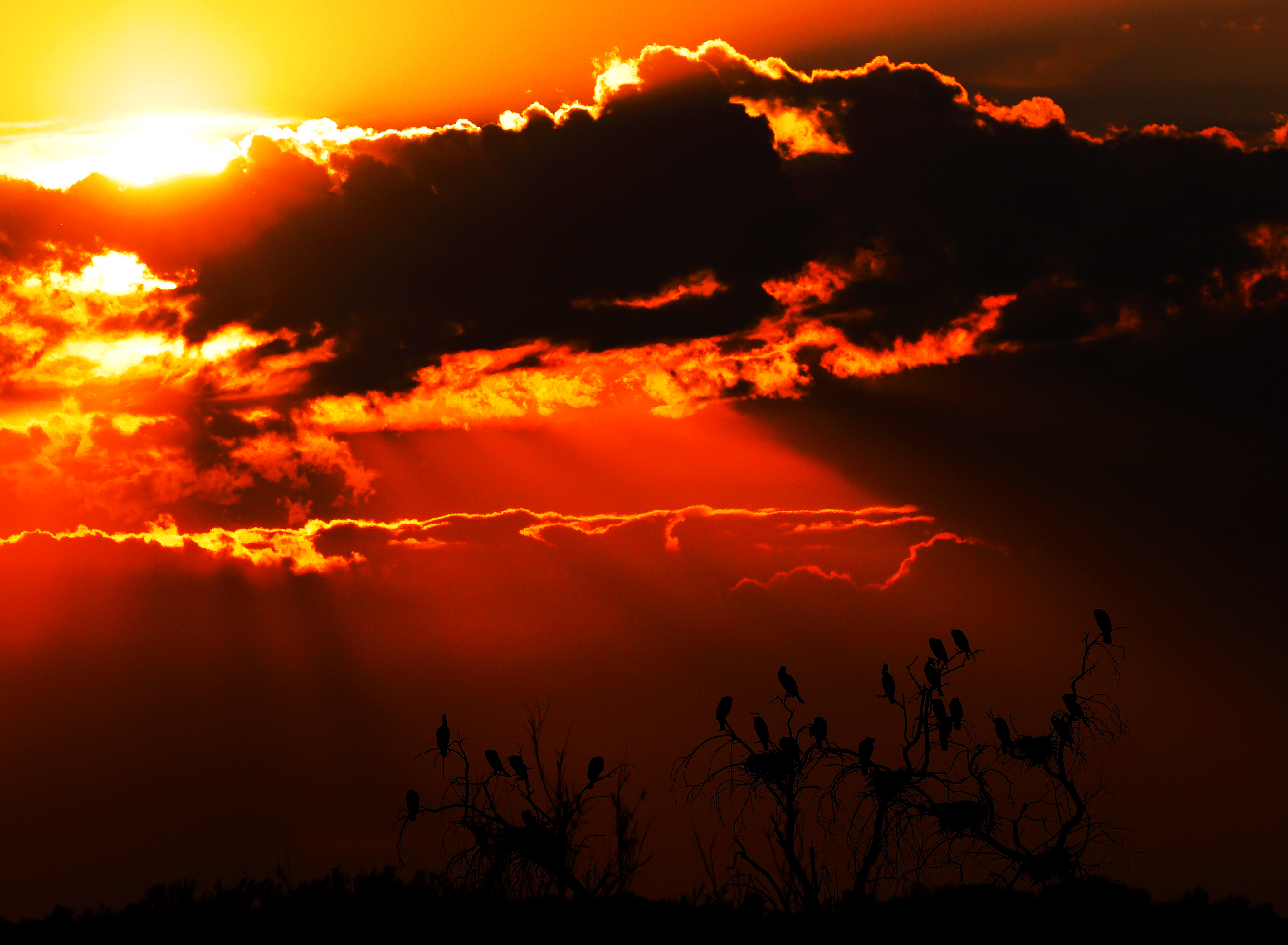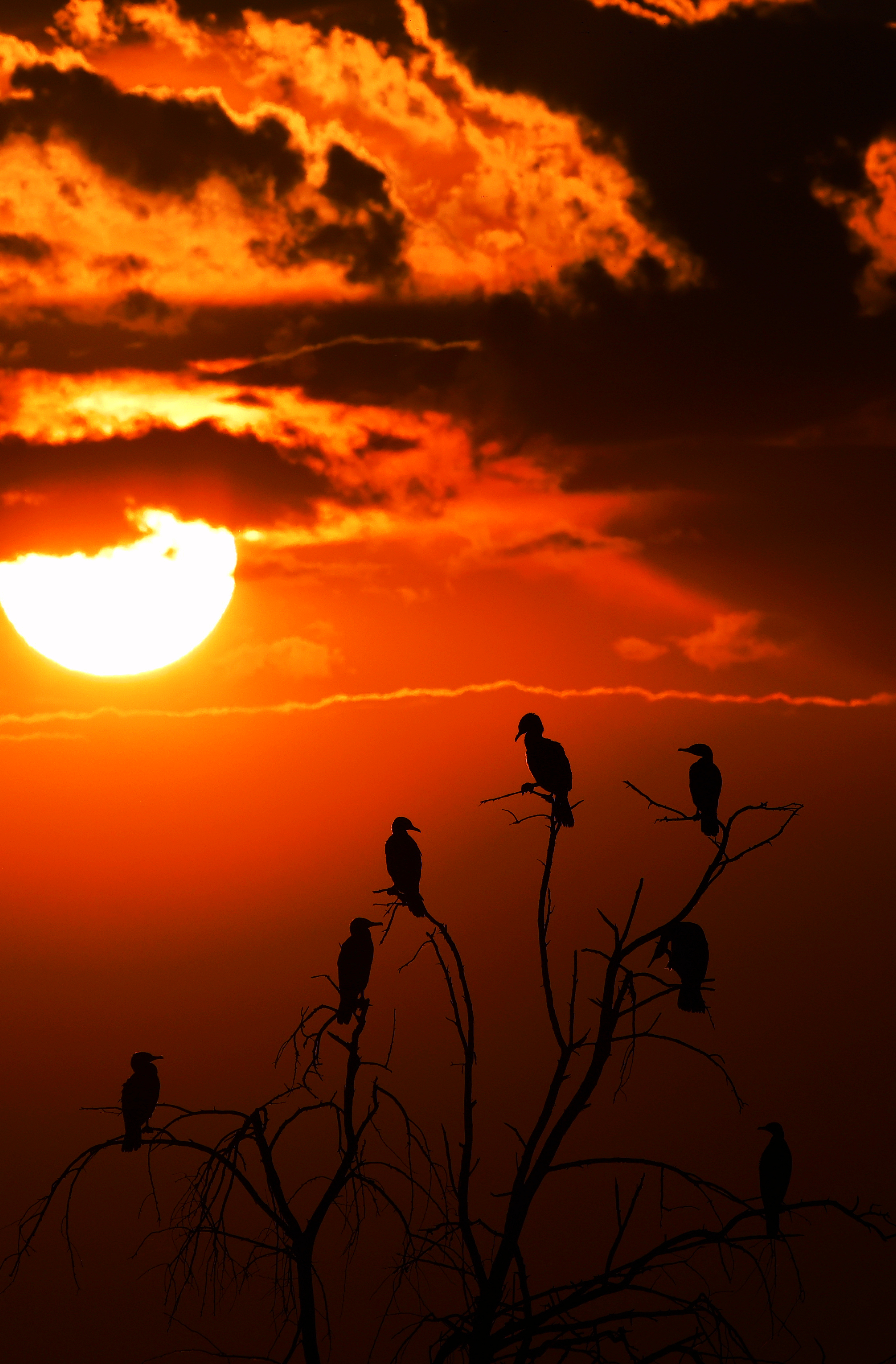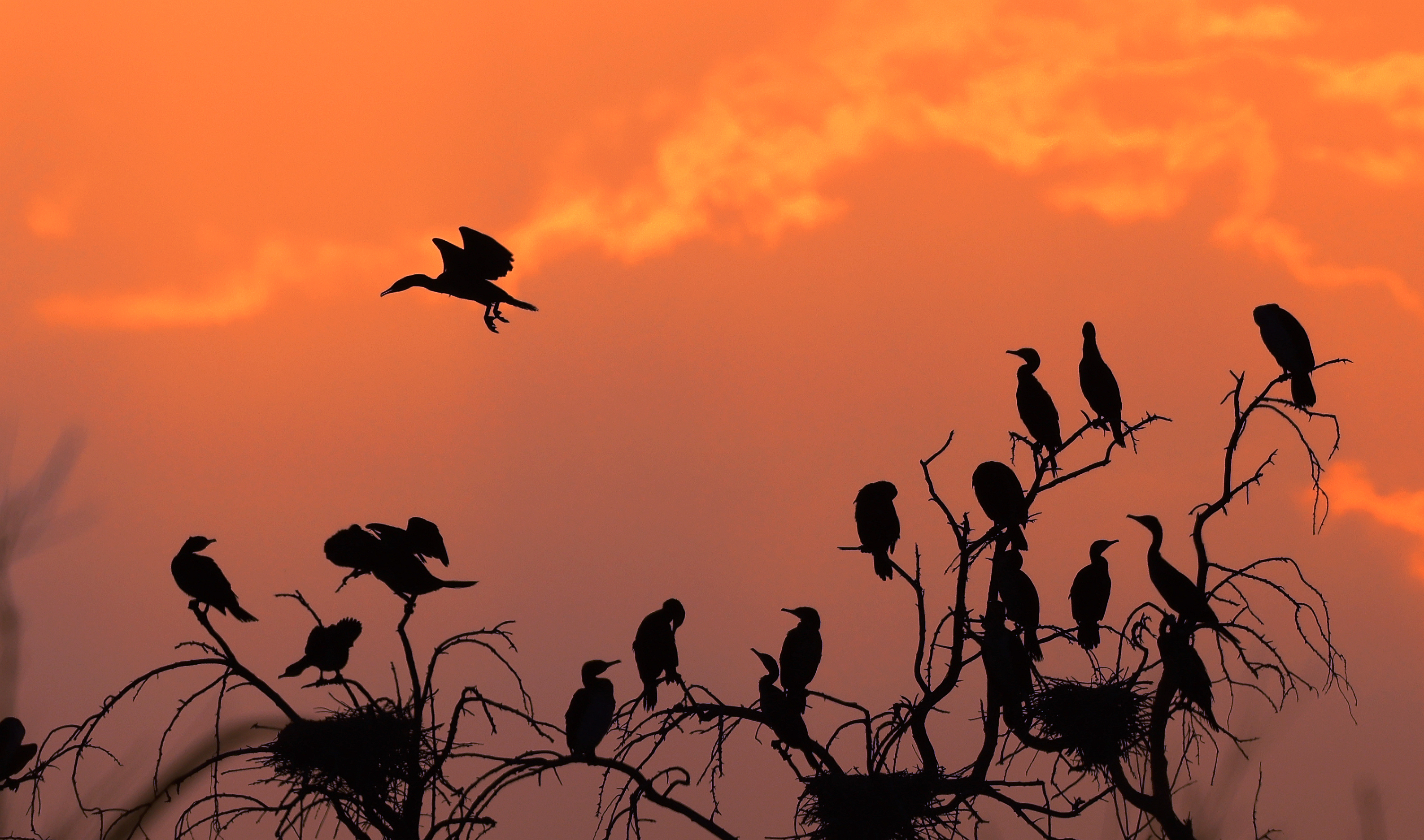 阿勒泰新闻网-阿勒泰地区融媒体中心(记者 阿尔达克·拜斯汗)晚霞红似火,倦鸟觅巢归。8月21日傍晚,新疆乌伦古湖国家湿地公园内,一群鸬鹚在枝头栖息。乌伦古湖是新疆北部最大的永久性淡水湖,也是迁徙候鸟飞越天山和阿尔泰山的“能量补充站”。生命的力量不在于顺从,站在树上的鸟儿,从不怕树枝断落,因为鸟儿相信的是自己的翅膀。