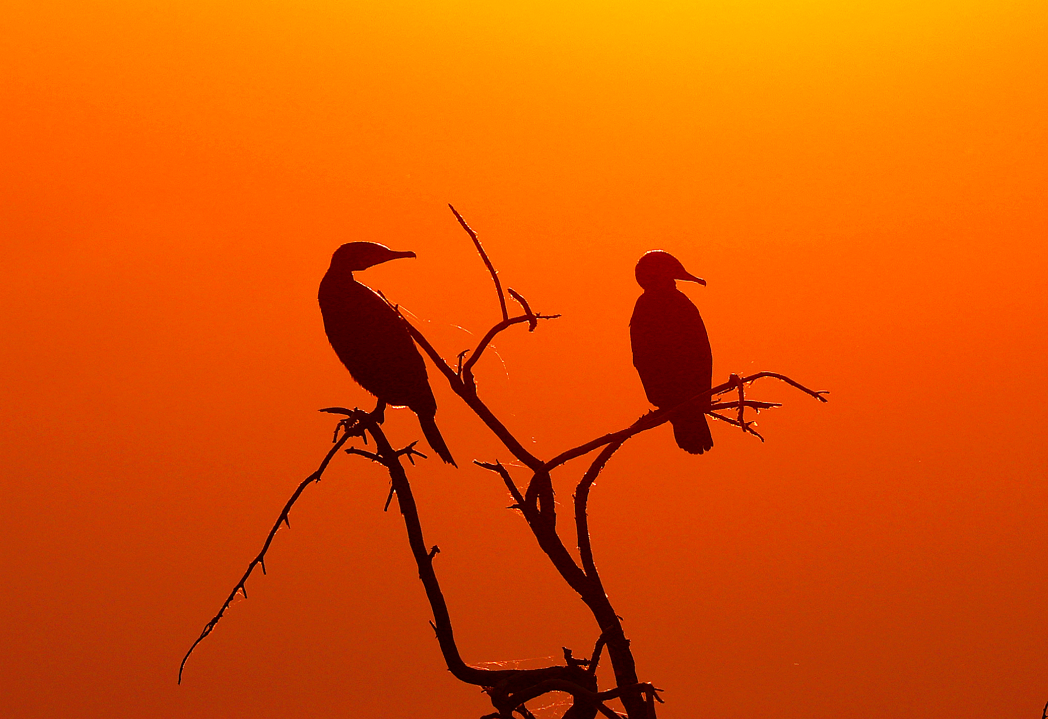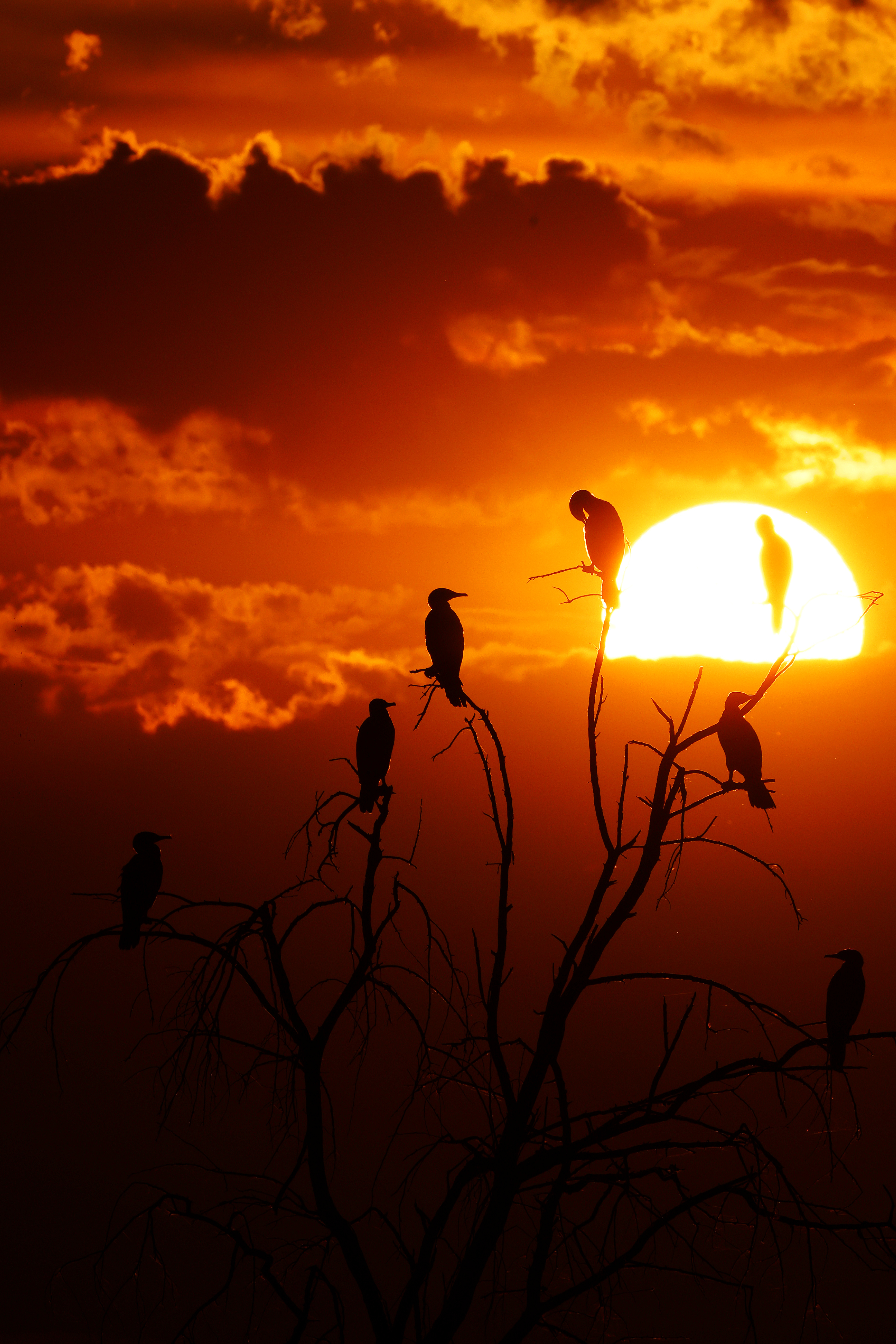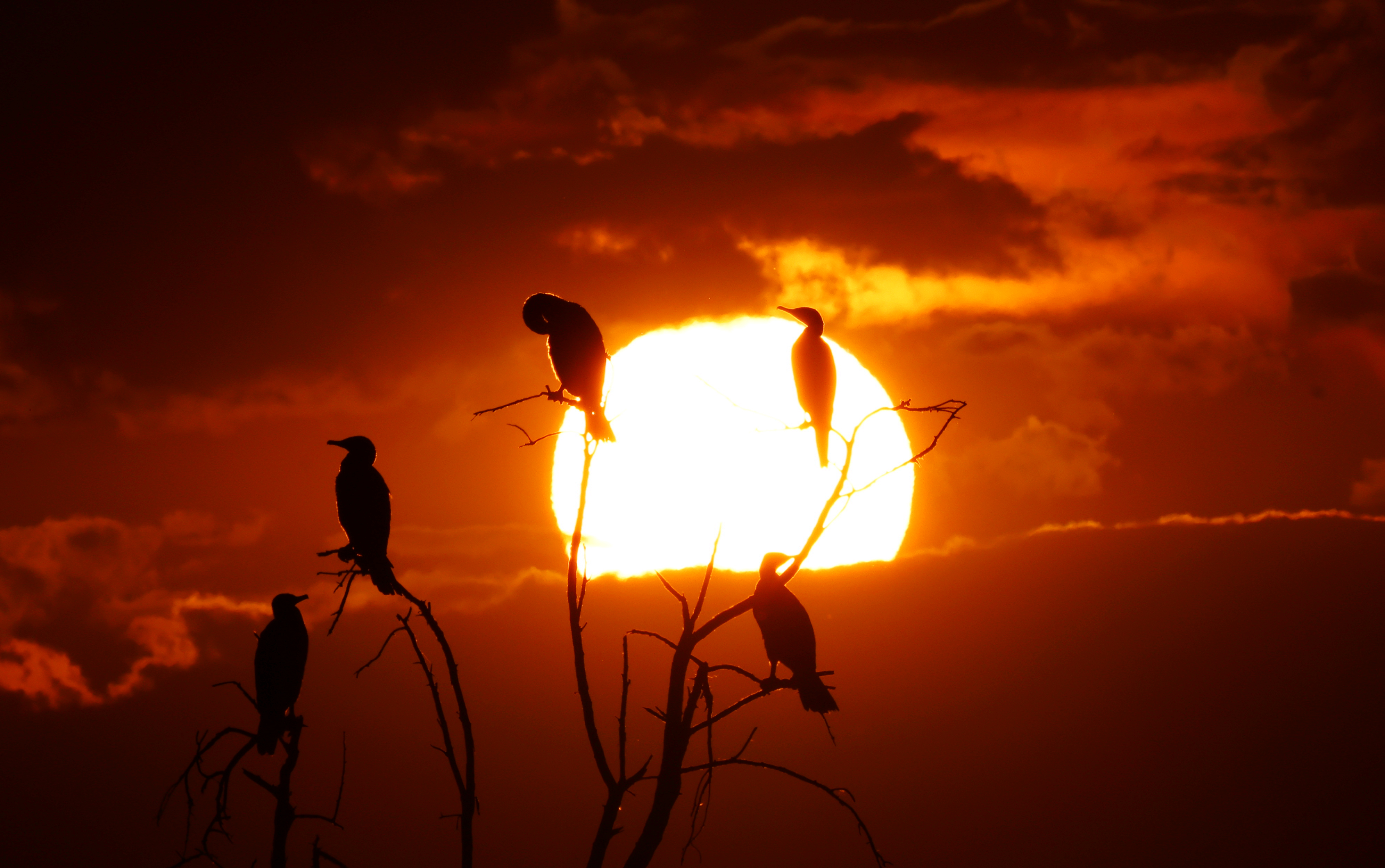阿勒泰新闻网-阿勒泰地区融媒体中心(记者 阿尔达克·拜斯汗)晚霞红似火,倦鸟觅巢归。8月21日傍晚,新疆乌伦古湖国家湿地公园内,一群鸬鹚在枝头栖息。乌伦古湖是新疆北部最大的永久性淡水湖,也是迁徙候鸟飞越天山和阿尔泰山的“能量补充站”。生命的力量不在于顺从,站在树上的鸟儿,从不怕树枝断落,因为鸟儿相信的是自己的翅膀。