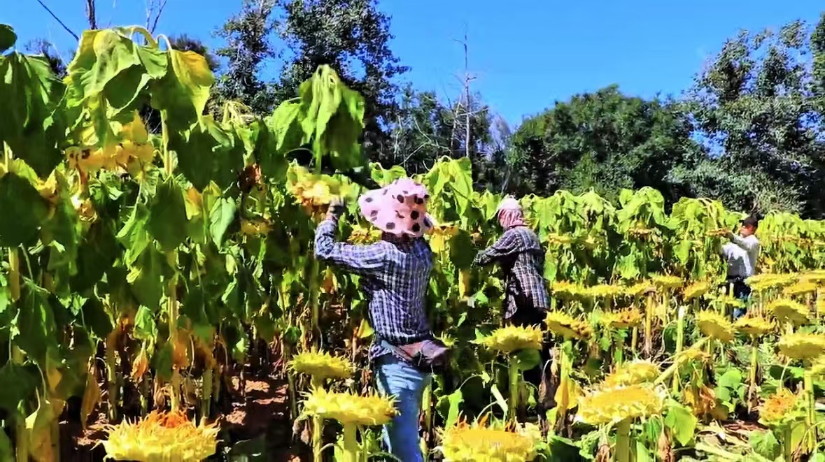 种植食葵用工量大,不论是播种、浇灌、割葵花盘还是收葵花籽,都需要大量劳动力。食葵丰收不仅让种植户收益颇丰,还促进了周边村民实现就近打工挣钱。