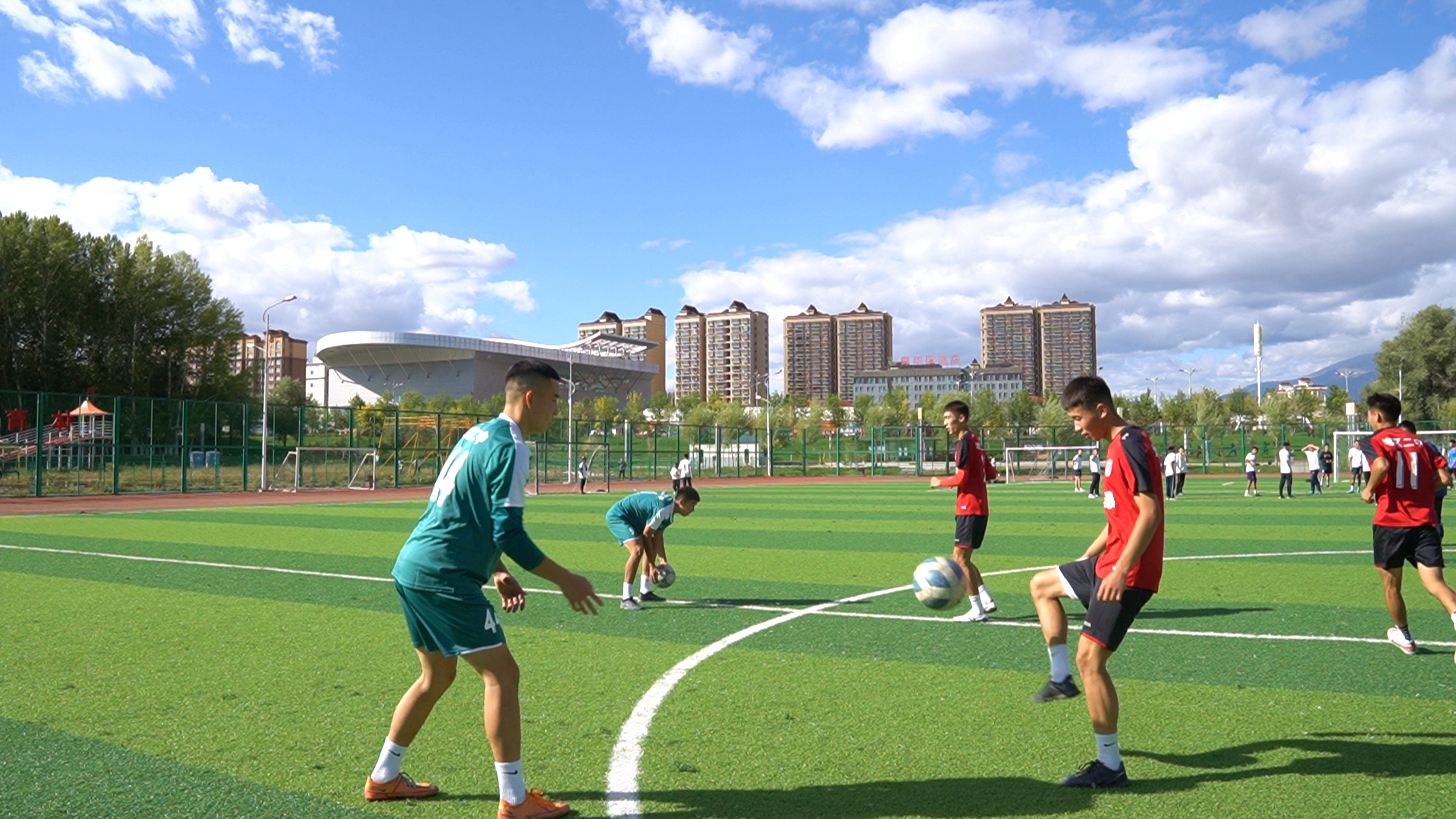 阿勒泰新闻网-阿勒泰地区融媒体中心(实习记者 彭林海)9月8日,阿勒泰市全季体育公园内热闹非凡,一场活力四射的足球盛宴 ——“百名少年足球大比拼” 激情上演。此次活动由阿勒泰地区文化体育广播电视和旅游局主办,来自阿勒泰地区第一高级中学、阿勒泰地区第二高级中学的百名青少年齐聚一堂,在绿茵场上尽情挥洒汗水,不断释放青春活力。
