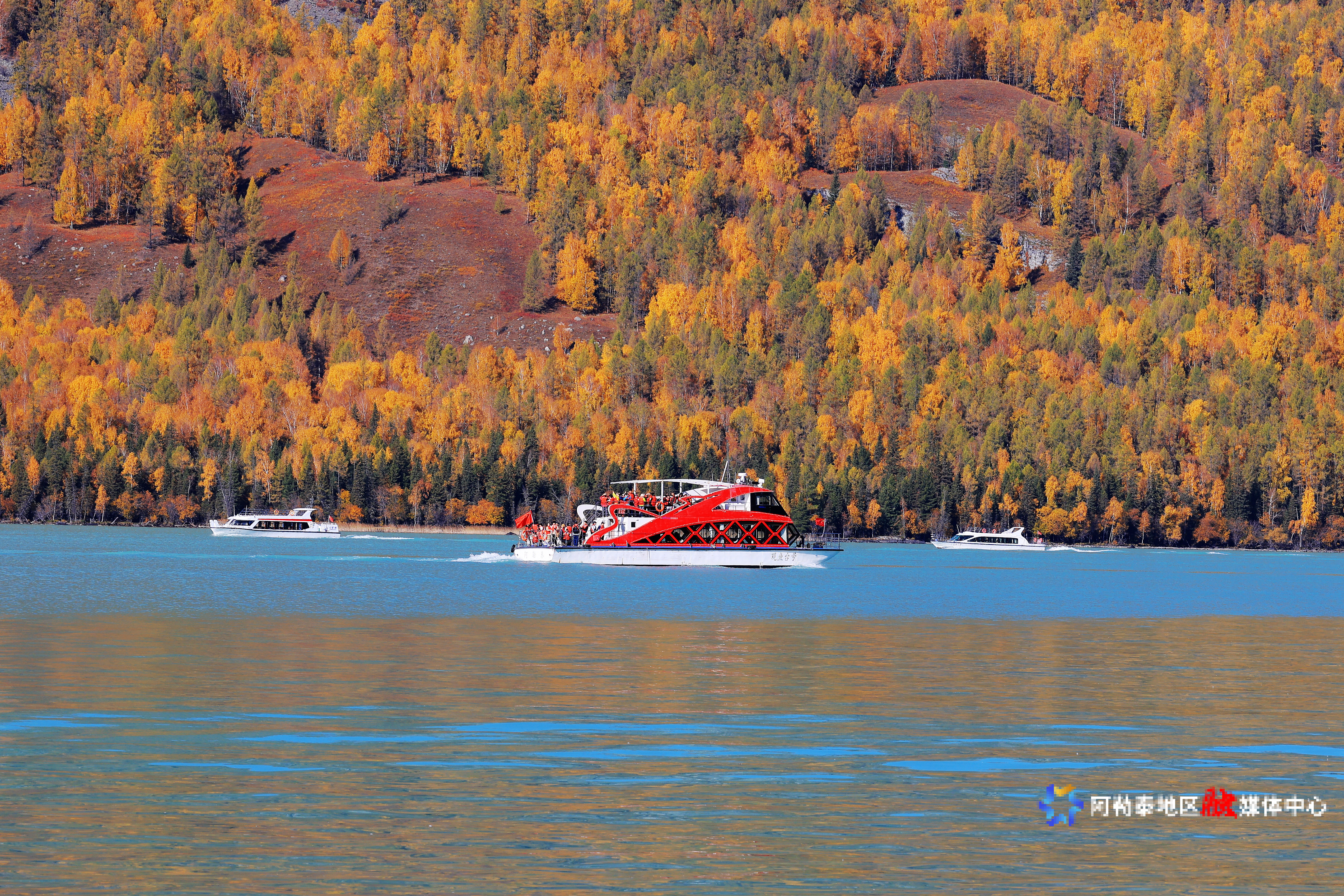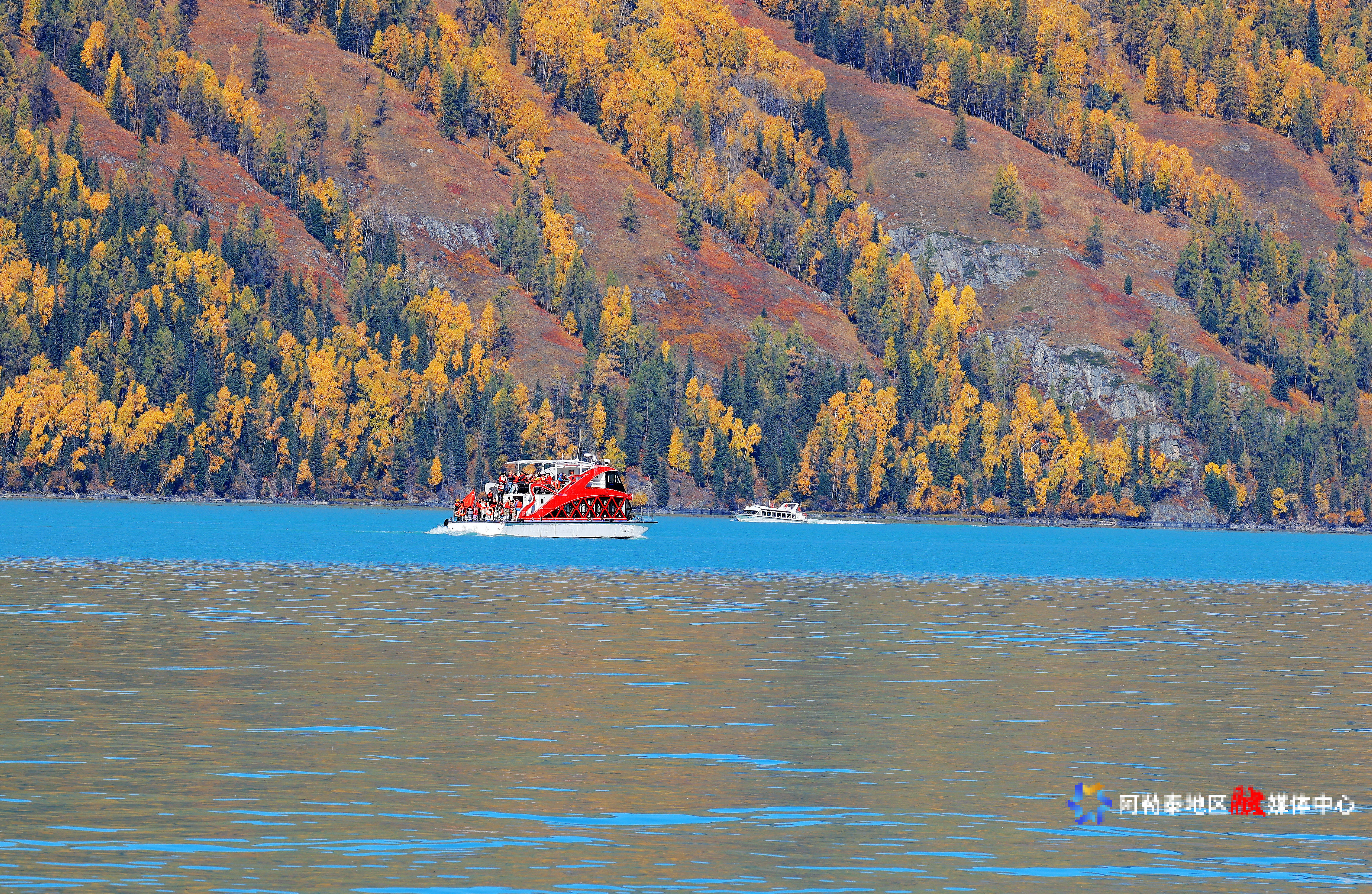 阿勒泰新闻网-阿勒泰地区融媒体中心(记者 阿尔达克·拜斯汗)9月24日,布尔津县喀纳斯景区,来自全国各地的游客乘坐游船游览喀纳斯湖。喀纳斯景区迎来秋季旅游高峰。今年截至9月20日,该景区累计接待游客467万人,同比增长23.02%;旅游综合收入81.48亿元,同比增长23.02%。