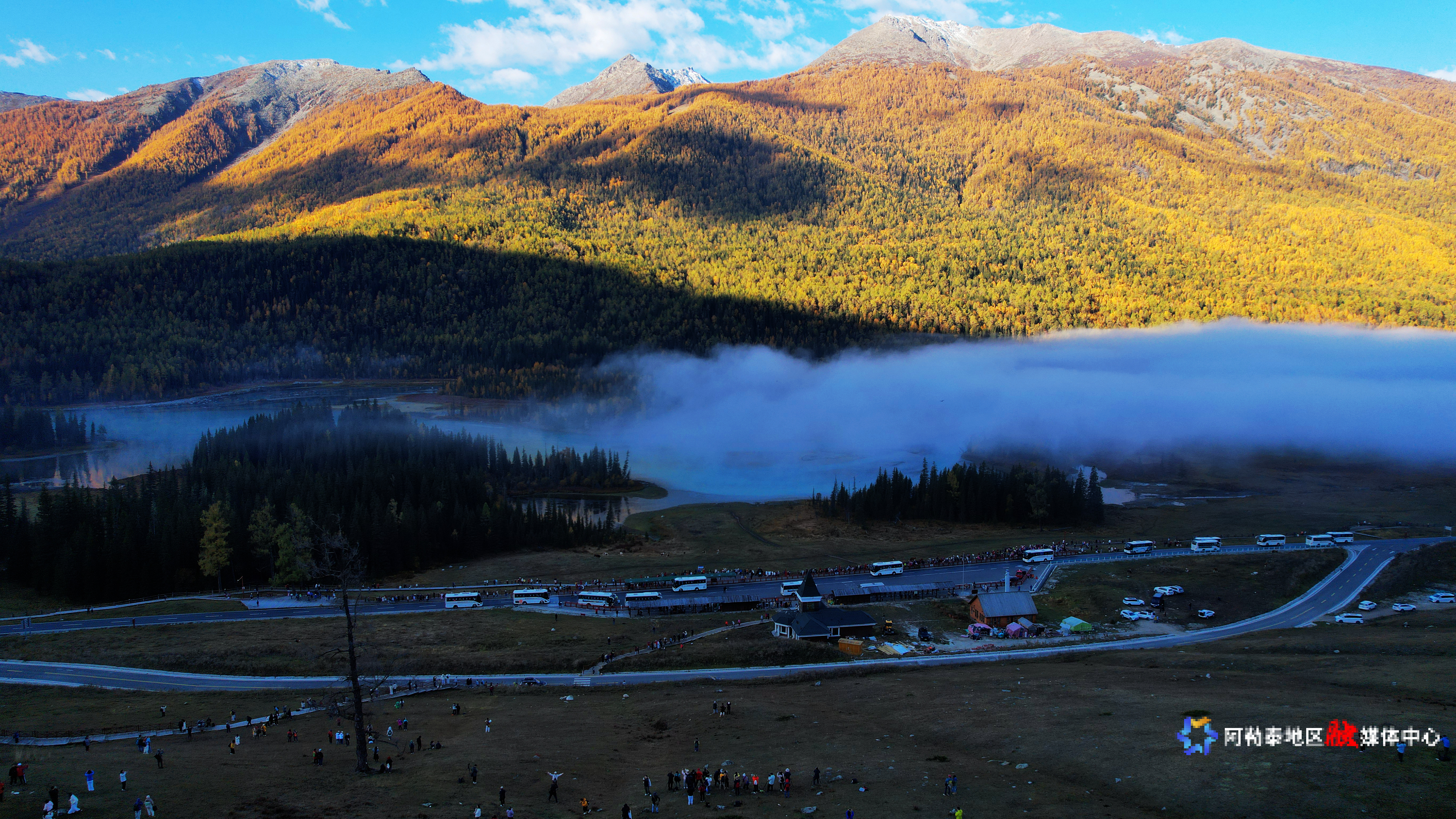阿勒泰新闻网-阿勒泰地区融媒体中心(记者 阿尔达克·拜斯汗)9月24日,布尔津县喀纳斯景区神仙湾出现云海填谷景观,云雾升腾、峰峦若现,如油画般让人着迷。