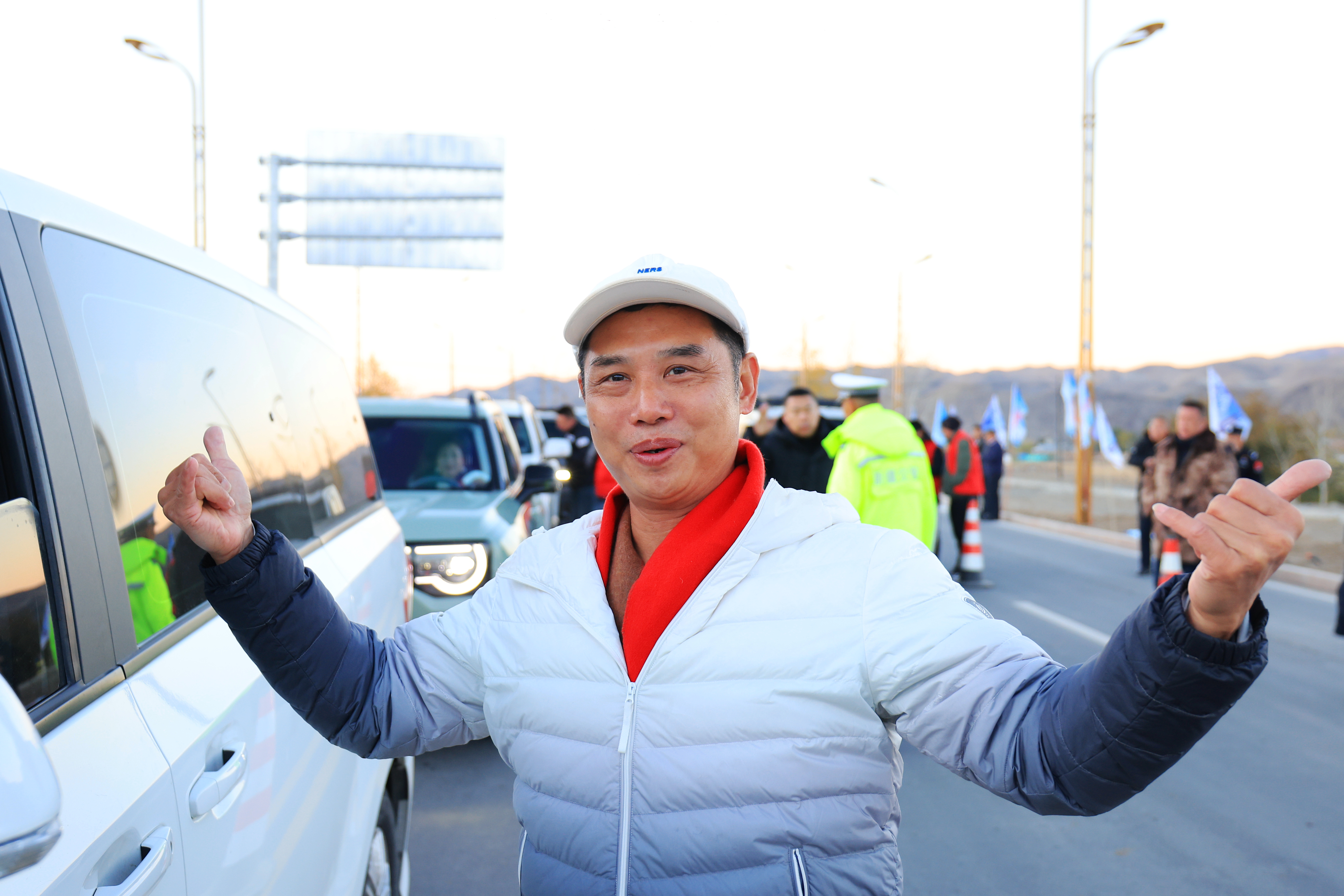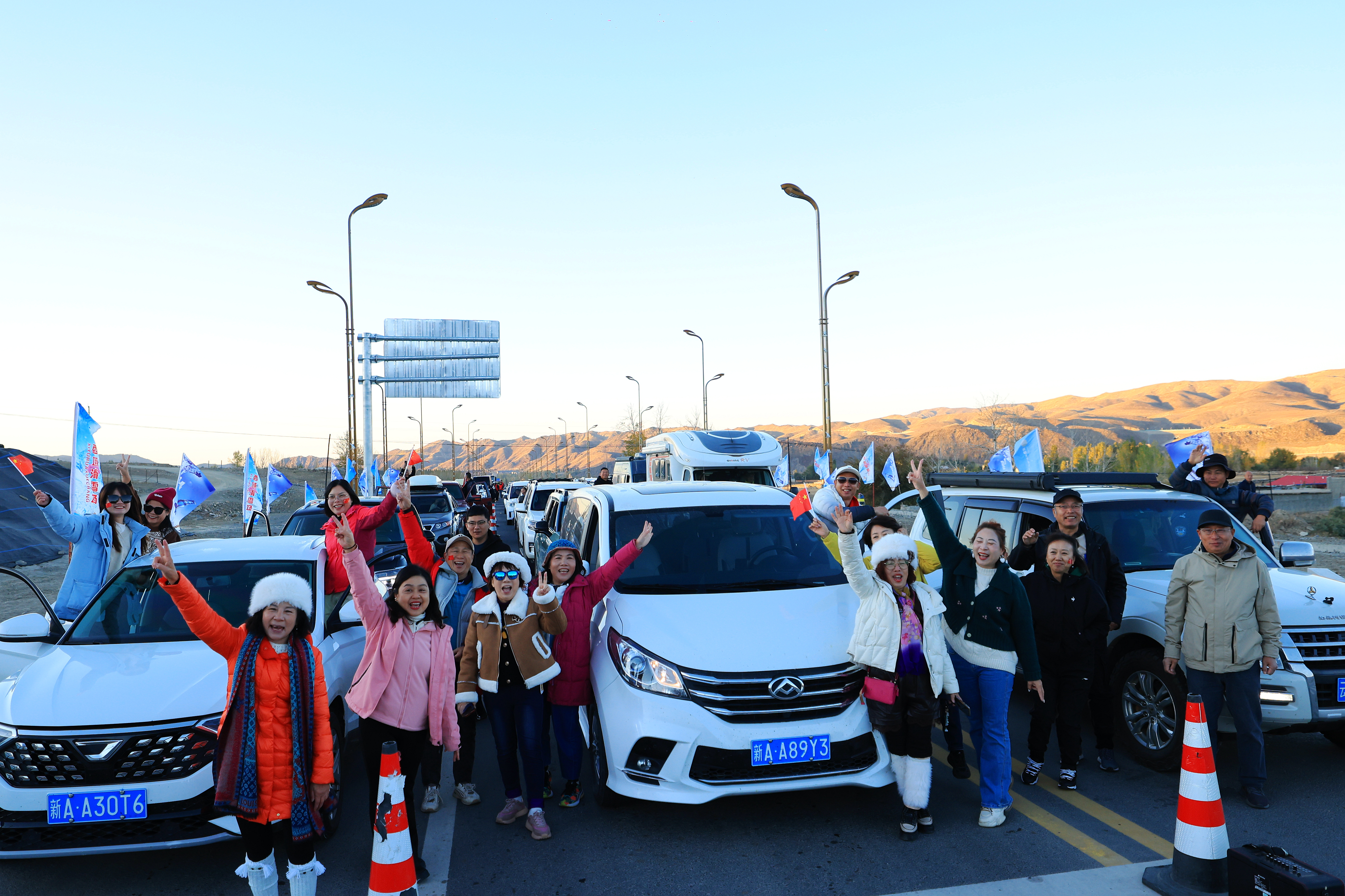 9月30日,阿禾公路试通车现场,自驾游车辆出发前往阿禾公路。记者 阿尔达克·拜斯汗 摄