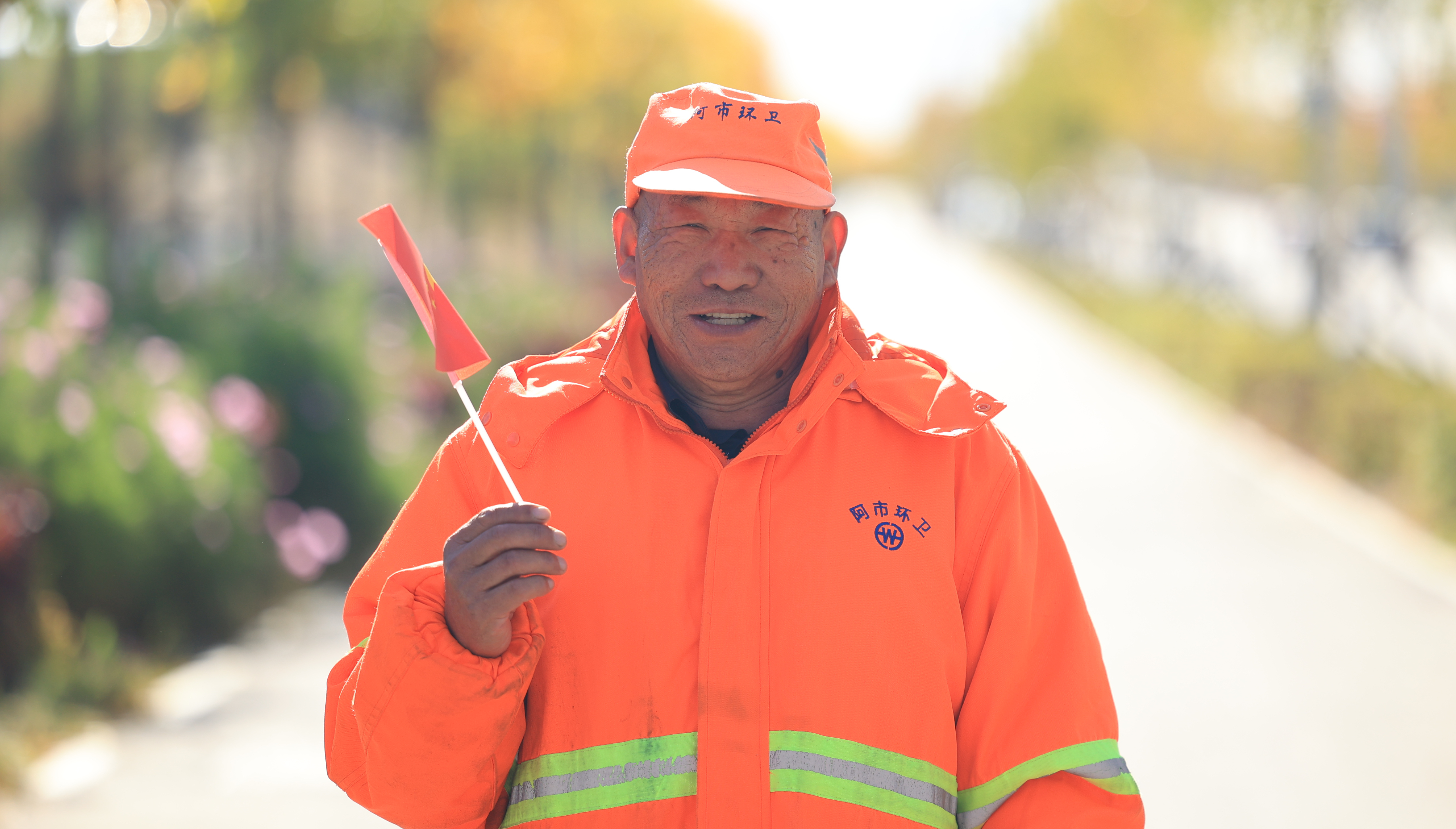 阿勒泰市环卫工人王经富:“祝我们伟大的祖国繁荣昌盛!”记者 张涛摄