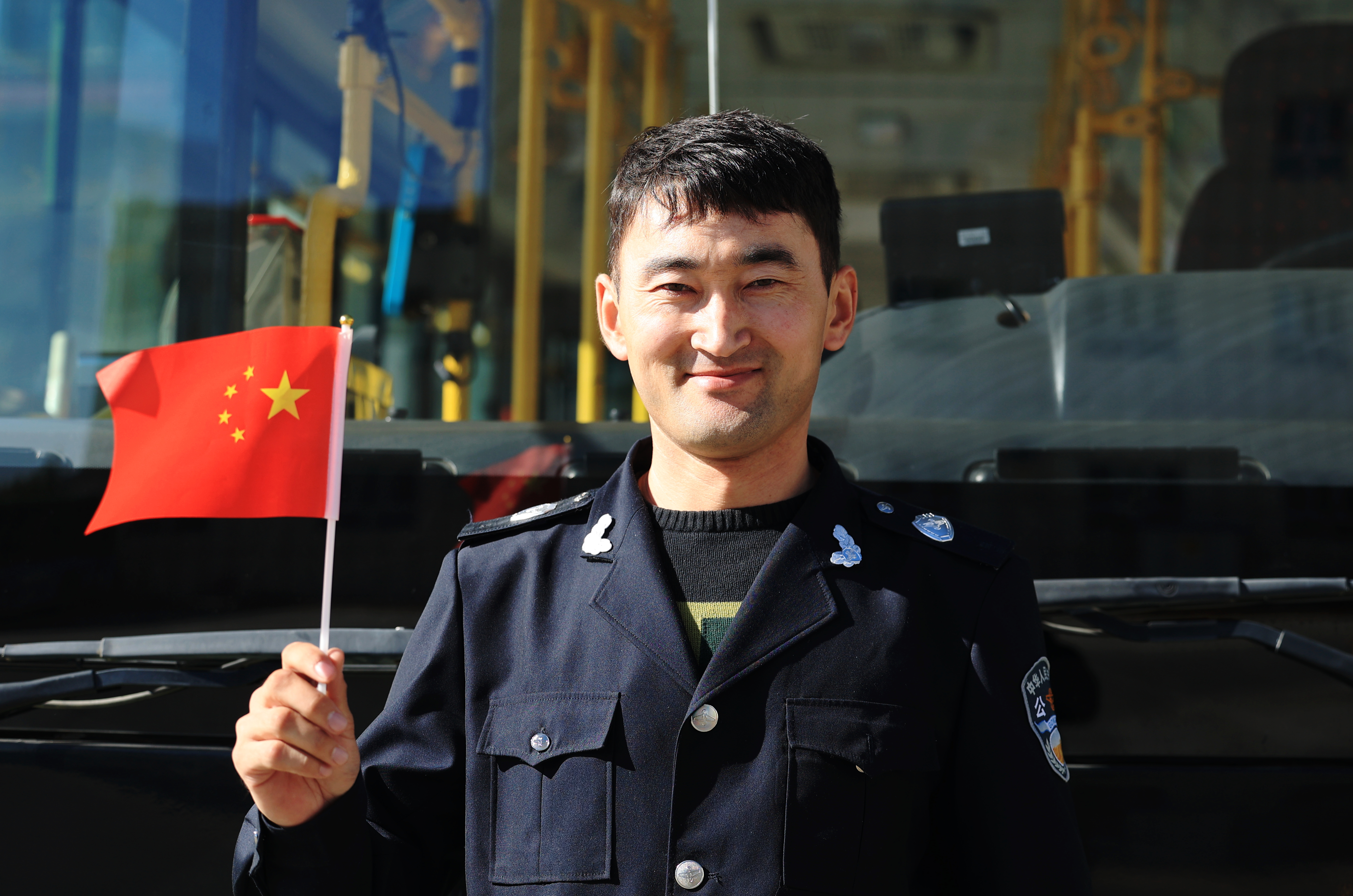 阿勒泰市公交车司机叶尔波力·努尔托肯:“祝福我们伟大的祖国越来越强大!”记者 张涛 摄