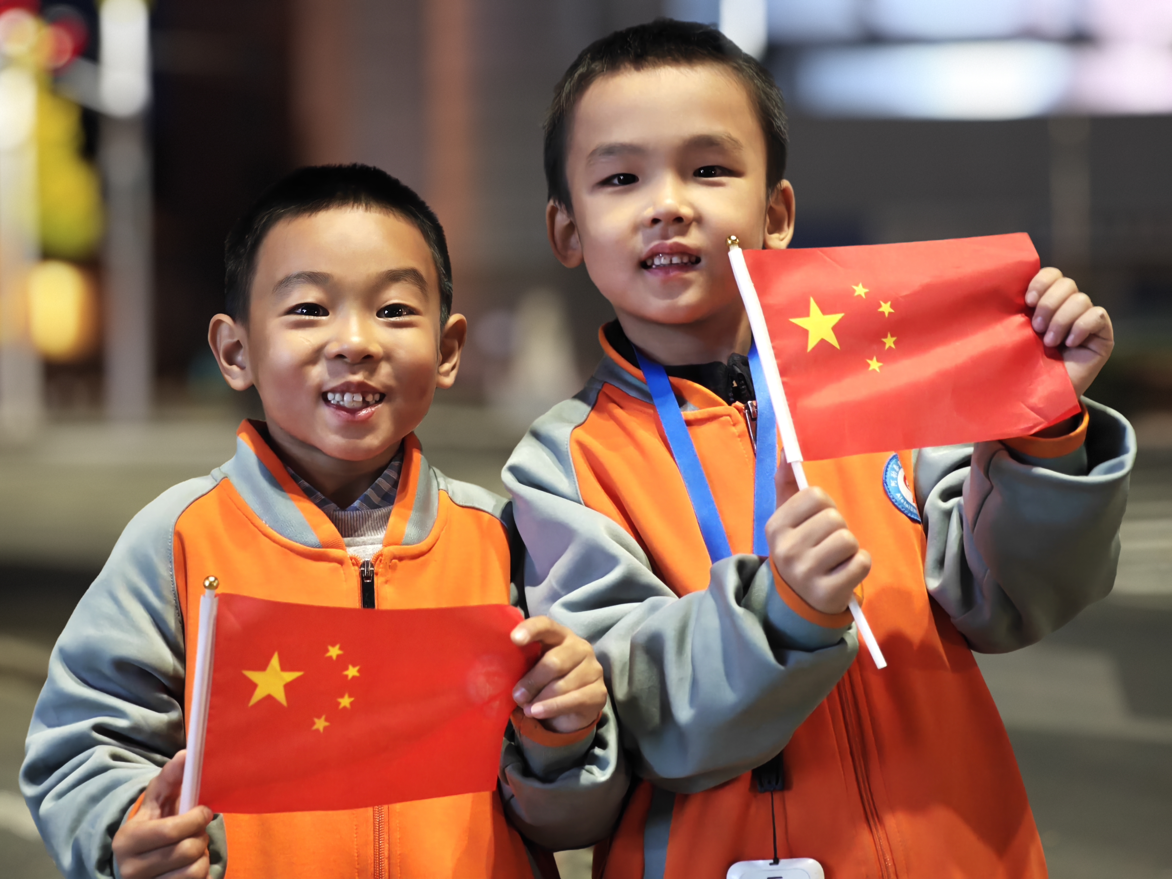 乌鲁木齐游客詹煜帆:“祝福祖国繁荣昌盛,兴旺发达,国泰民安!”记者 王子源 摄