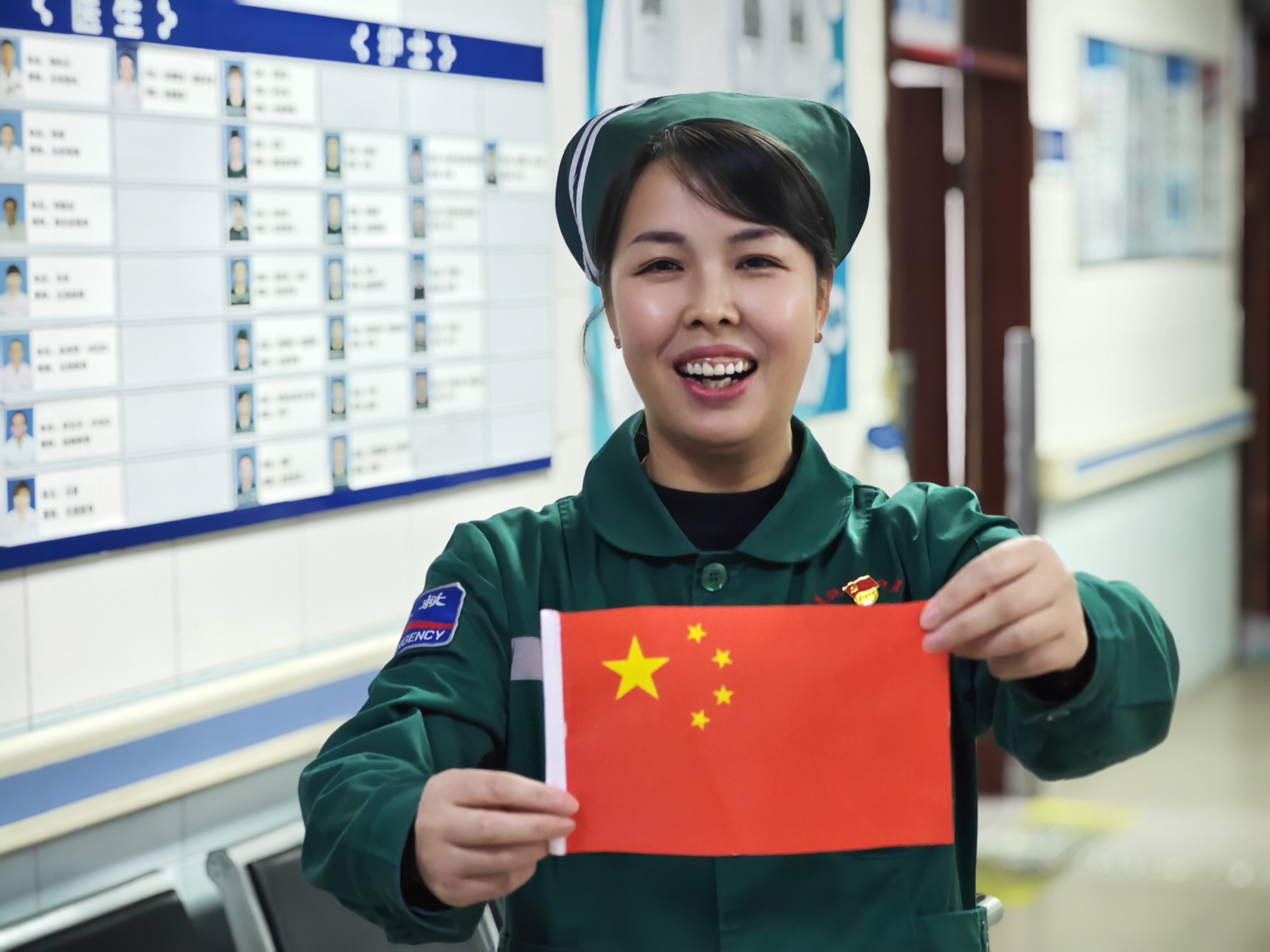 阿勒泰地区人民医院急诊科护士李梦娜:“祝我们的国家更加繁荣富强,人民生活更加幸福美好!”记者 王子源 摄