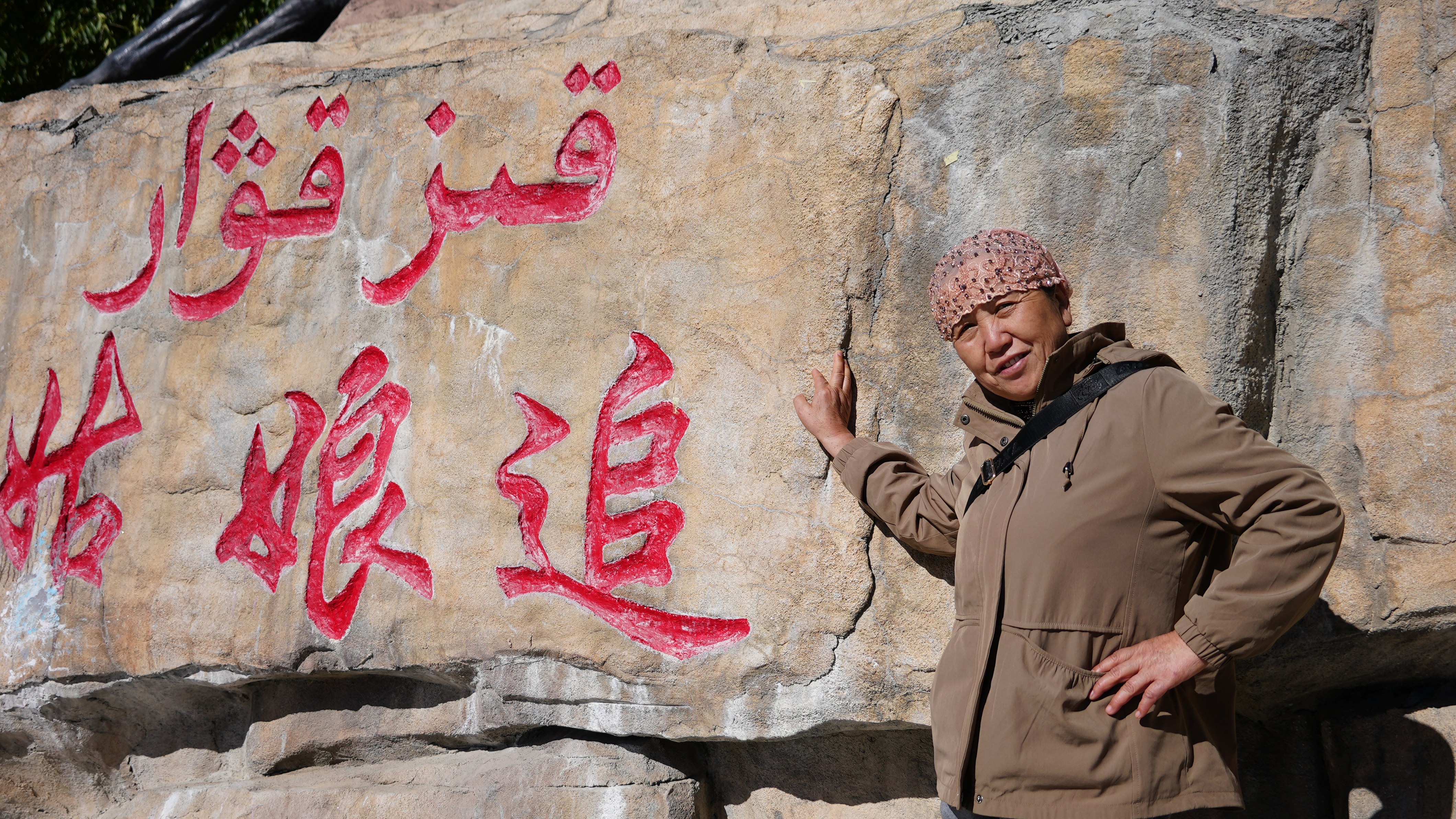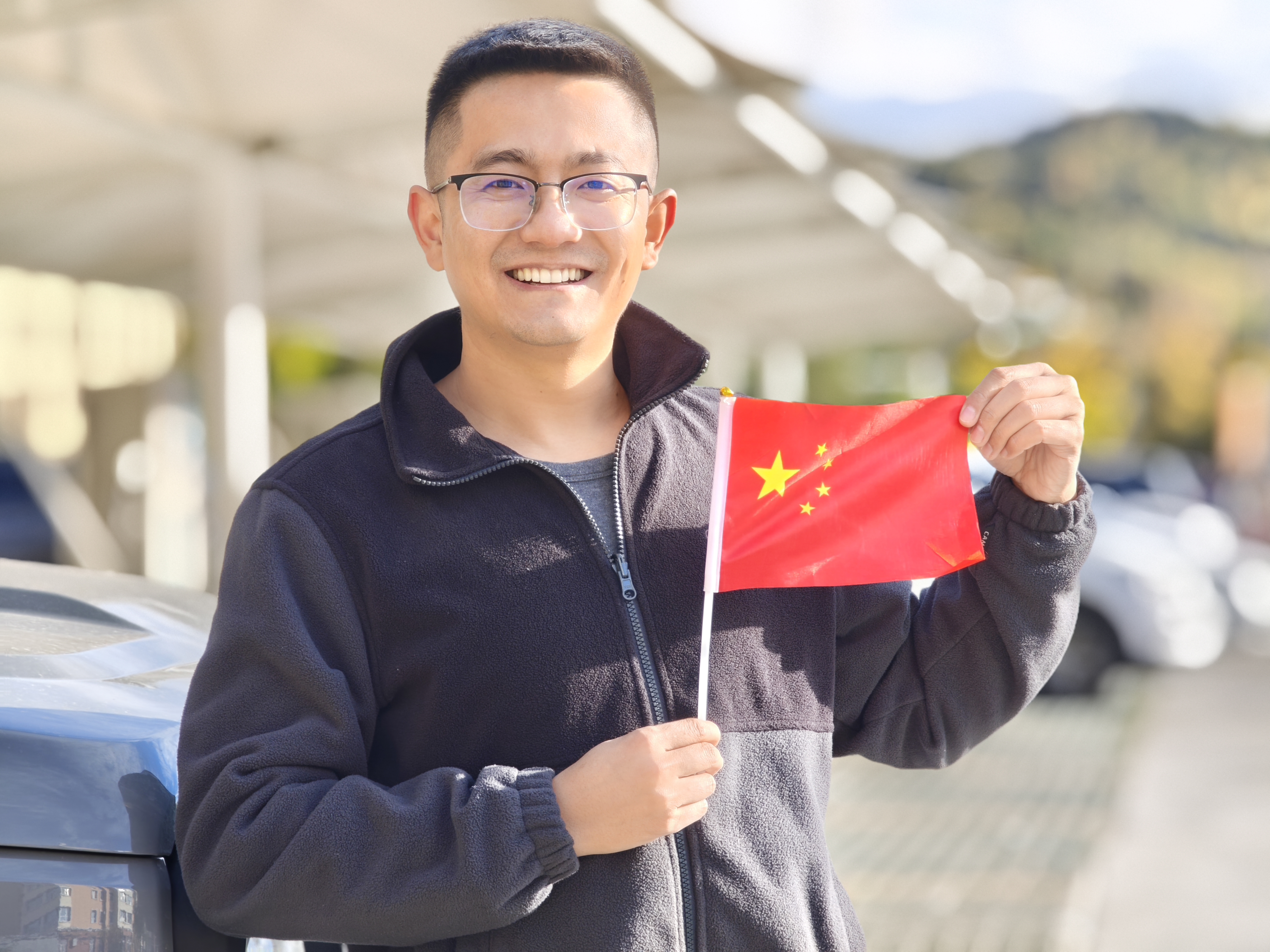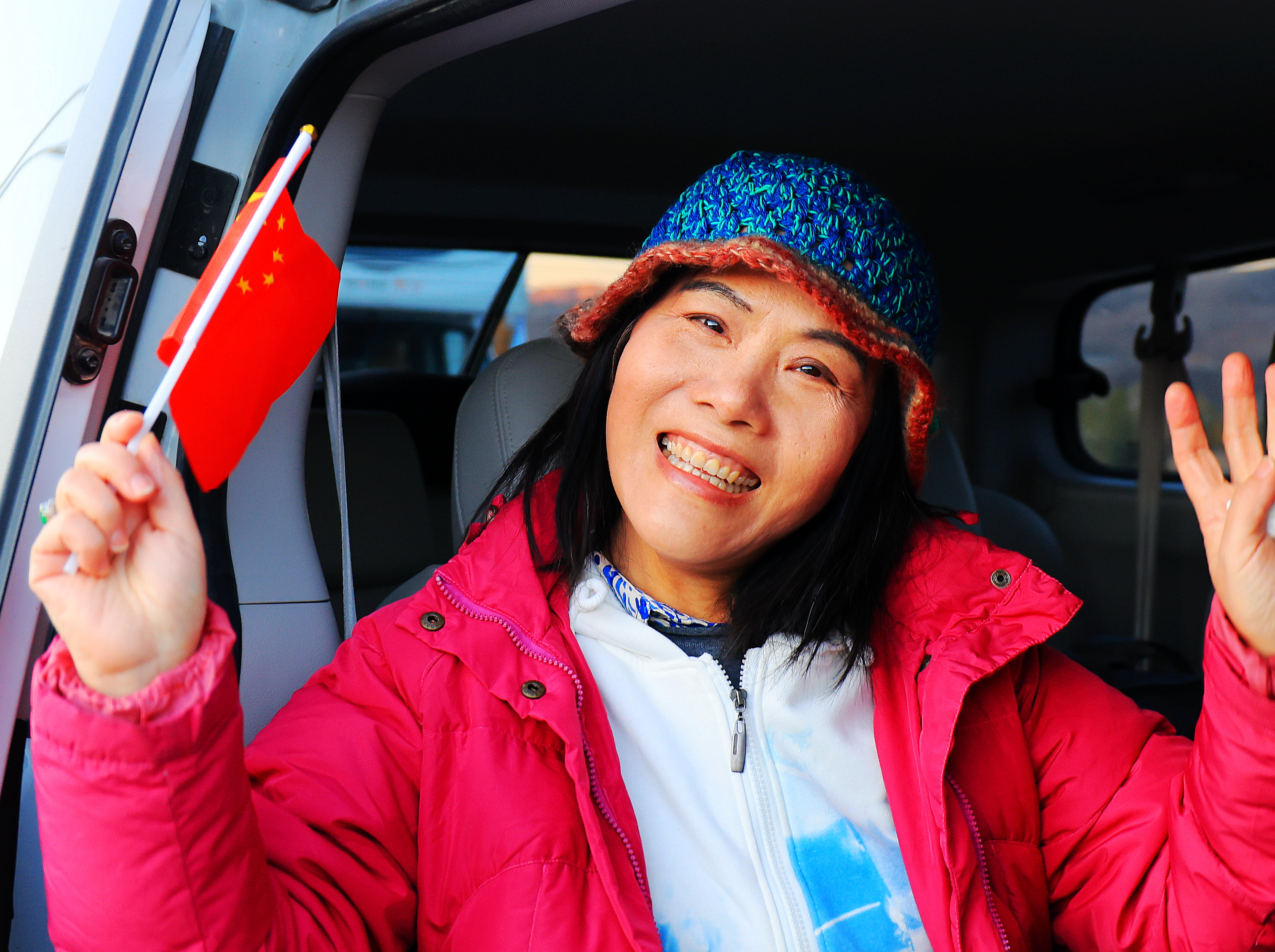 广东自驾游客伍凯敏: “国庆佳节,红旗飘飘。祝大家国庆快乐,万事如意!”记者 阿尔达克·拜斯汗 摄