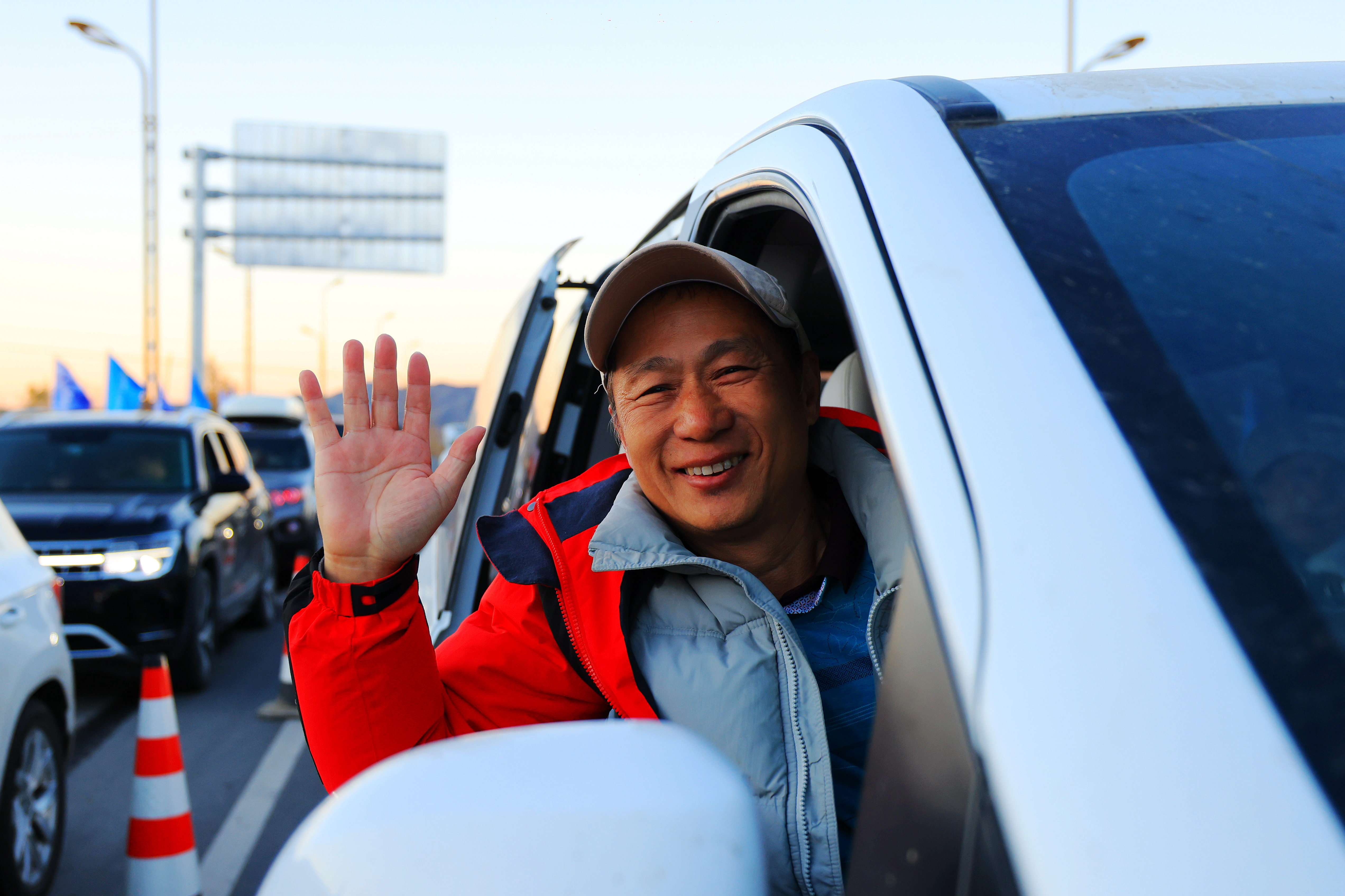 广东游客自驾阿和公路许杨明:“不到新疆不知祖国多大。祝祖国平安!阿禾公路,我们来了!”记者 阿尔达克·拜斯汗 摄