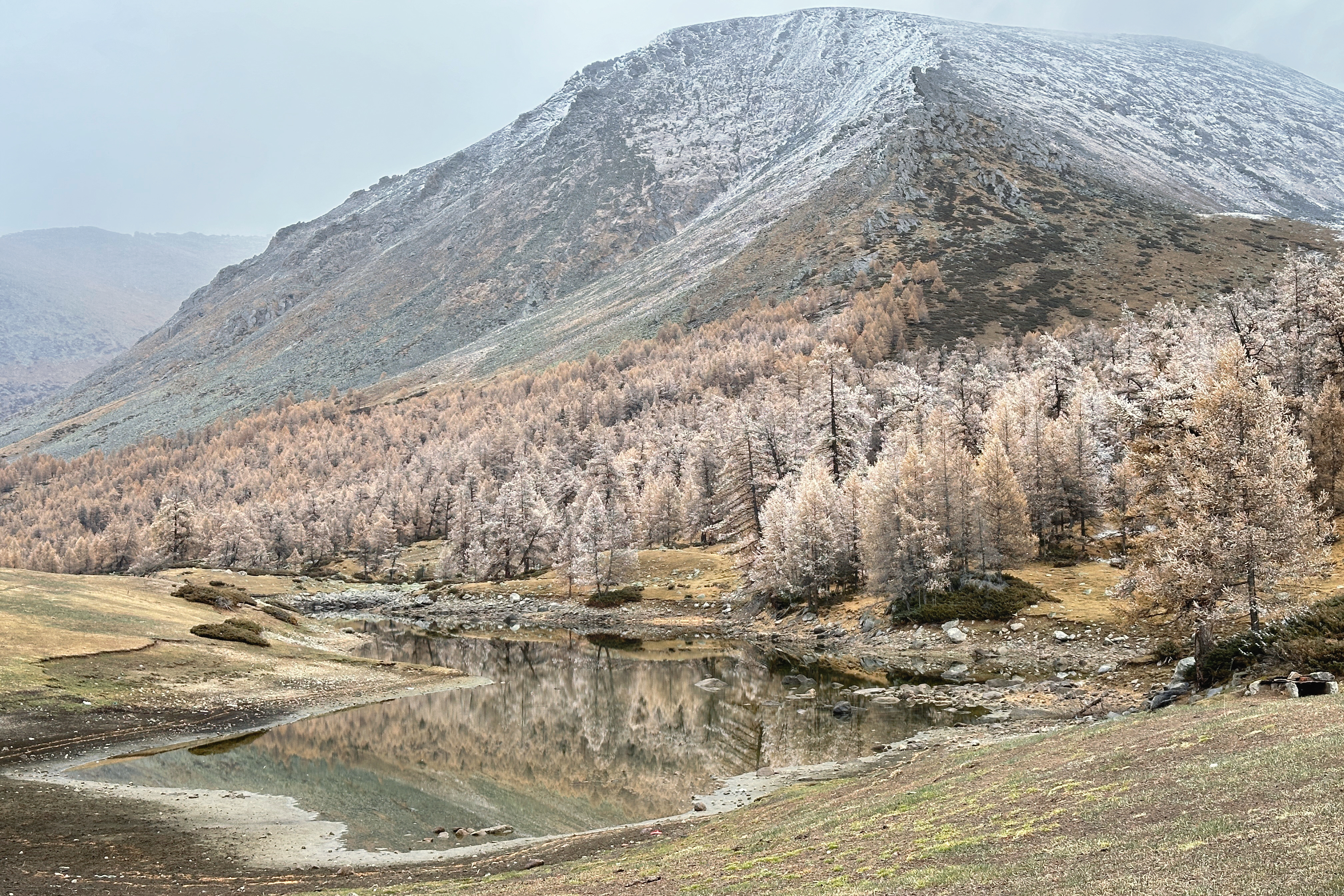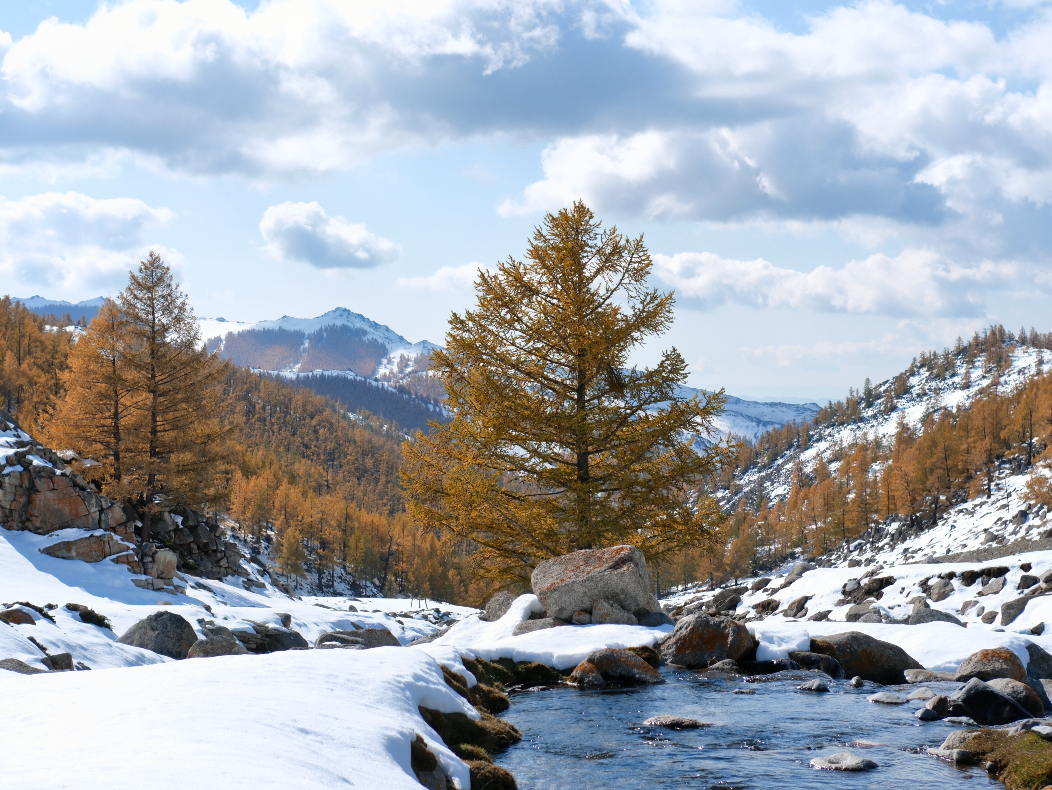 10月17日,在青河县大青河谷,初雪轻抚过林间,万物悄然披上银装。阳光斑驳,透过稀疏的云层,洒在苍松翠柏上,给树木镀上了一层金色。枝叶间挂着点点白雪,宛如镶嵌了无数颗晶莹的珍珠。河谷两岸,雪覆峰峦,静谧而庄严。大青河水在两岸白雪的映衬下,显得更加清澈和灵动,宛若镶嵌在高山间的蓝宝石。