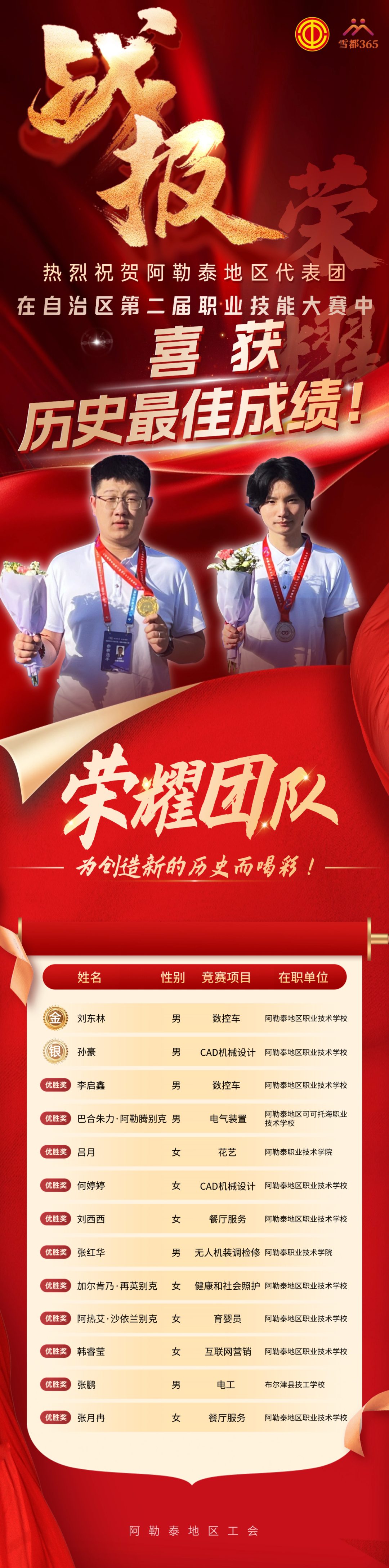 喜讯!阿勒泰地区代表团在自治区第二届职业技能大赛中创造历史最佳成绩