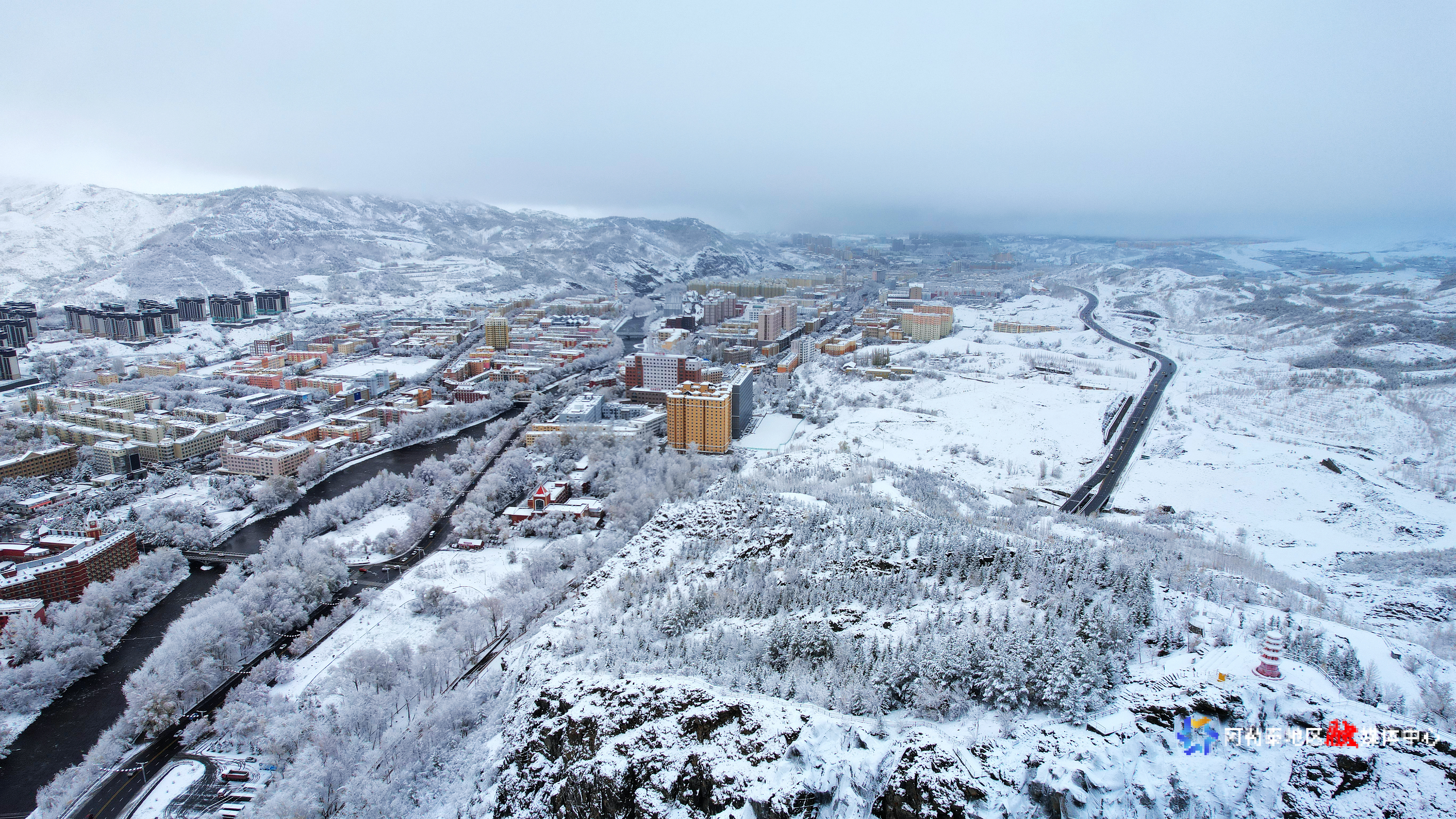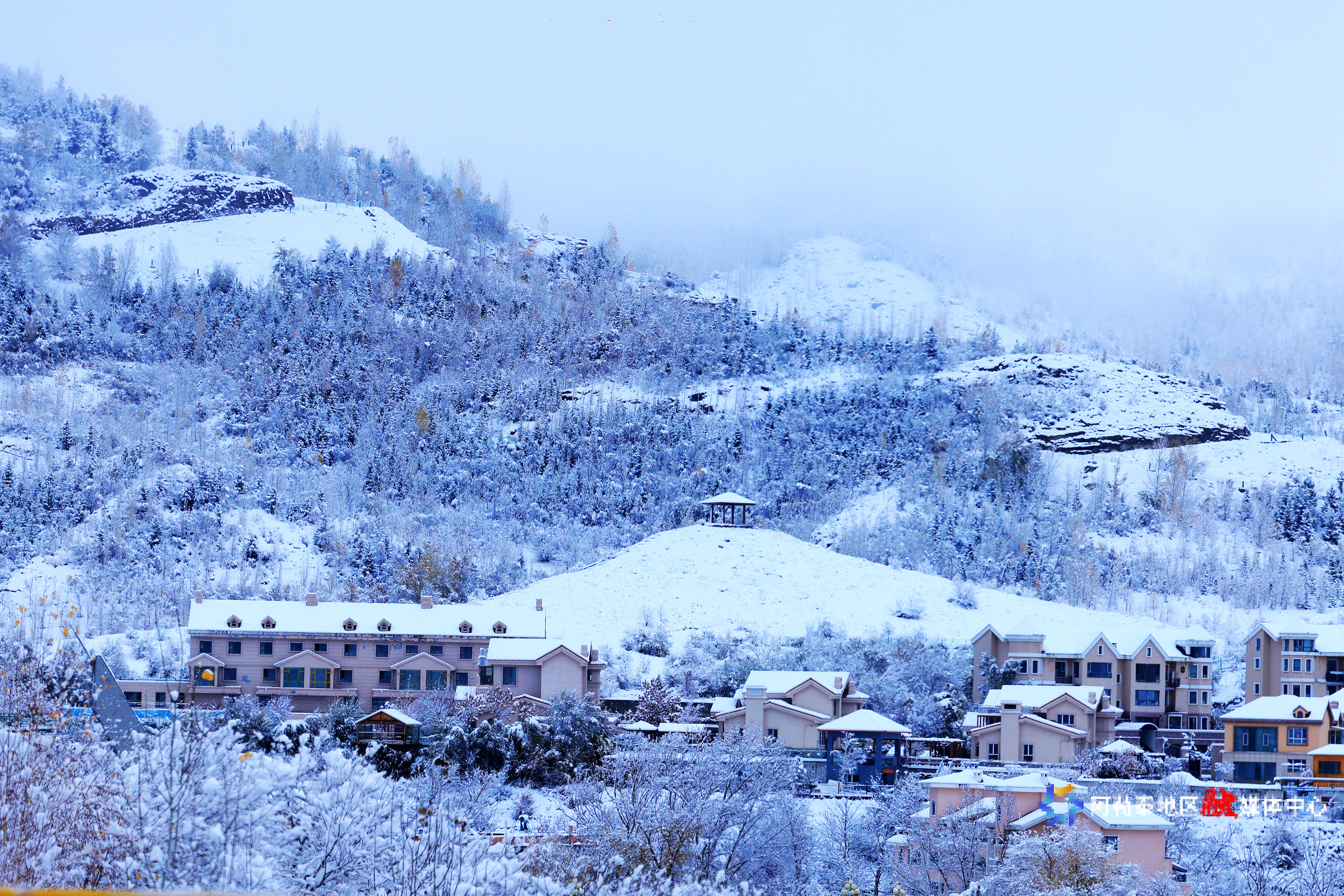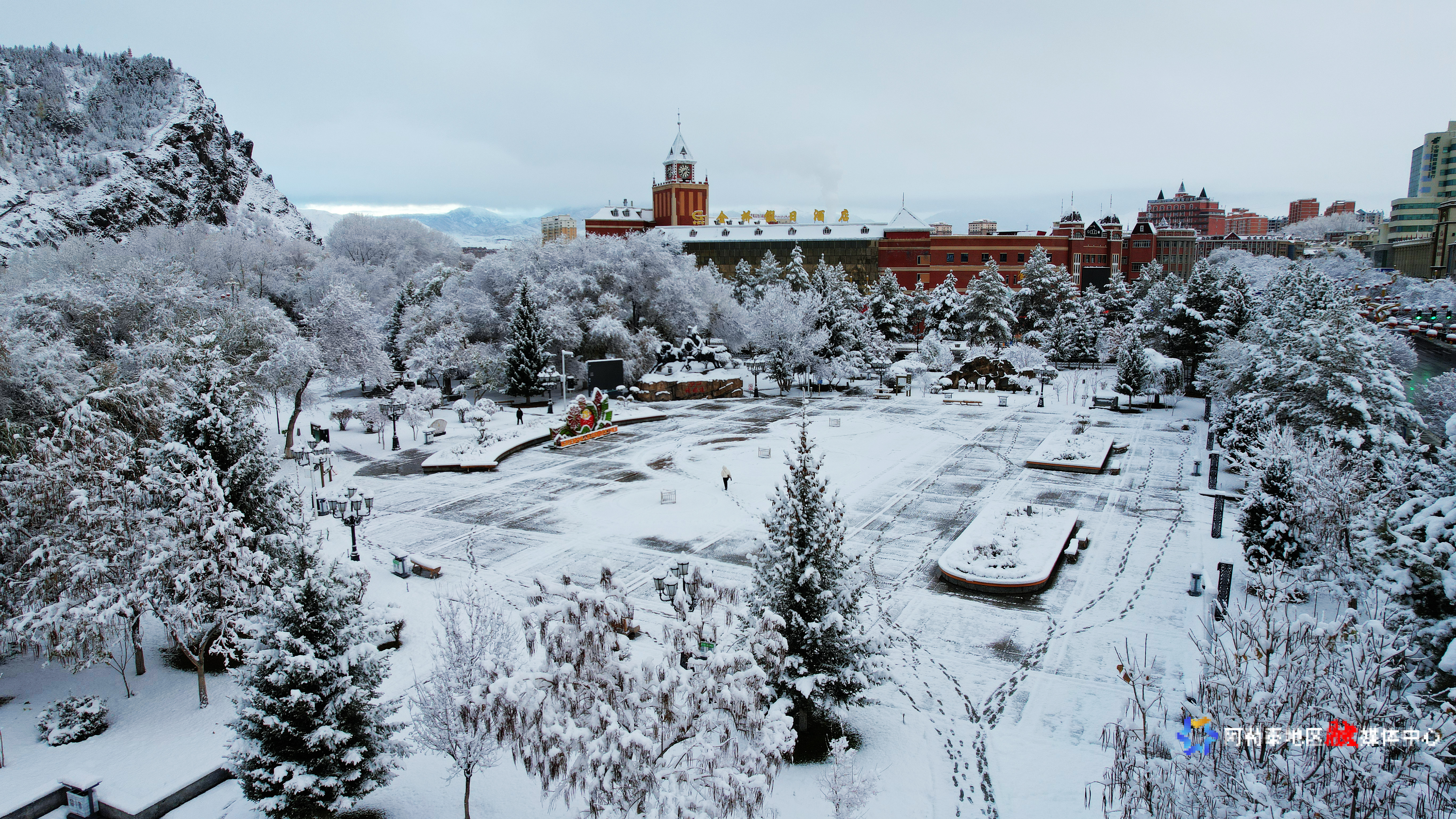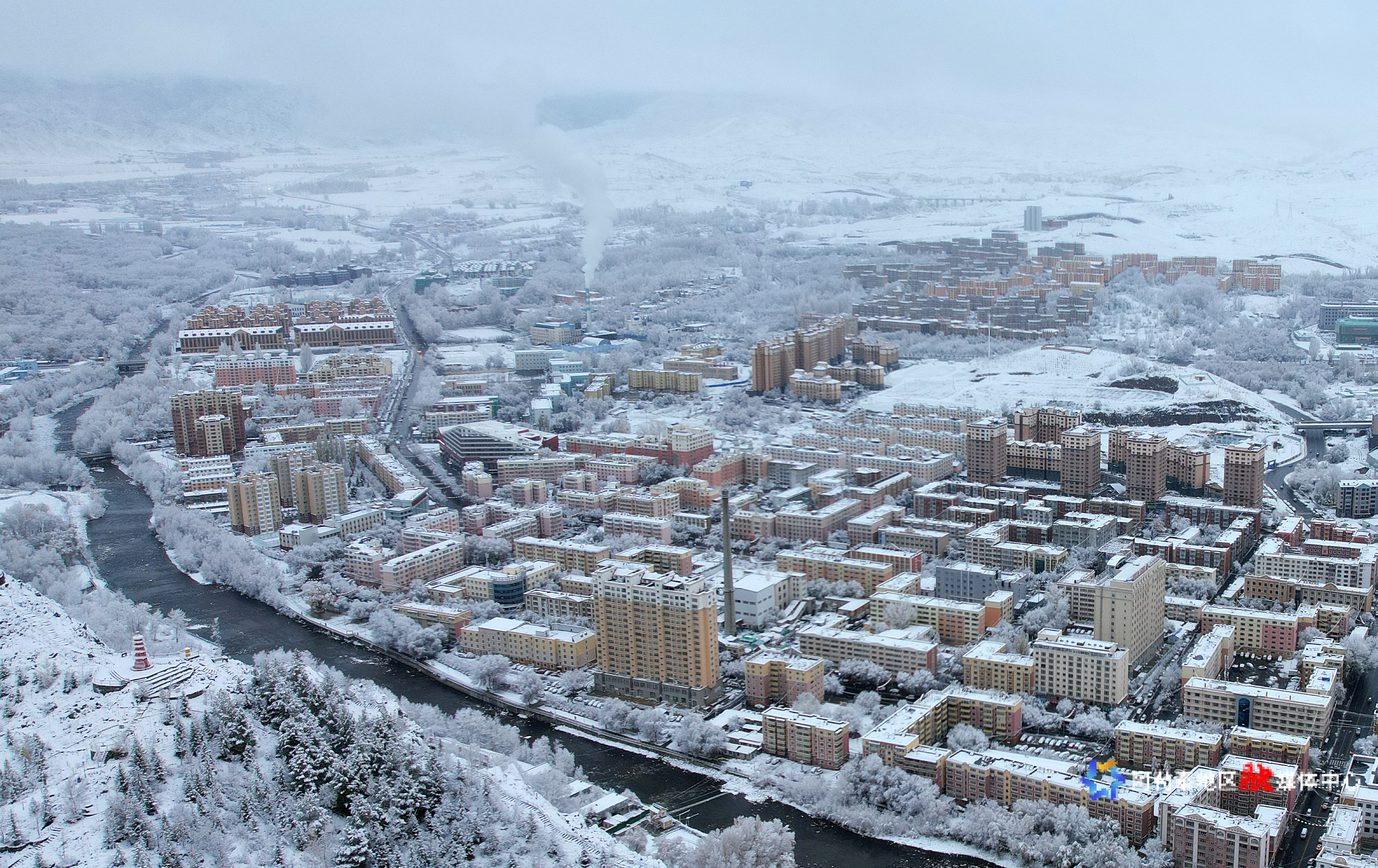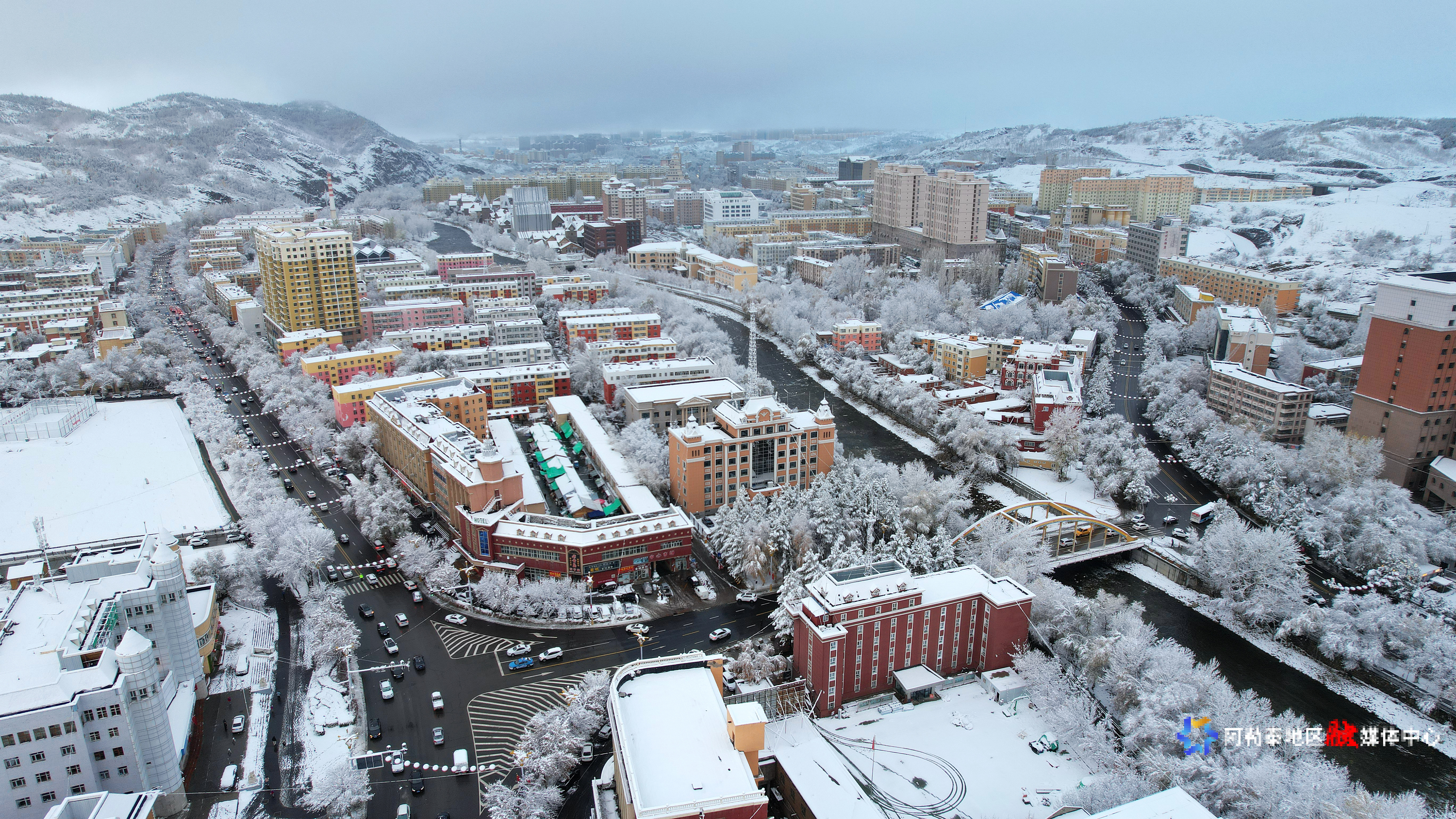 10月30日,阿勒泰市迎来降雪天气,建筑物被白雪覆盖,银装素裹。阿尔达克·拜斯汗 摄
