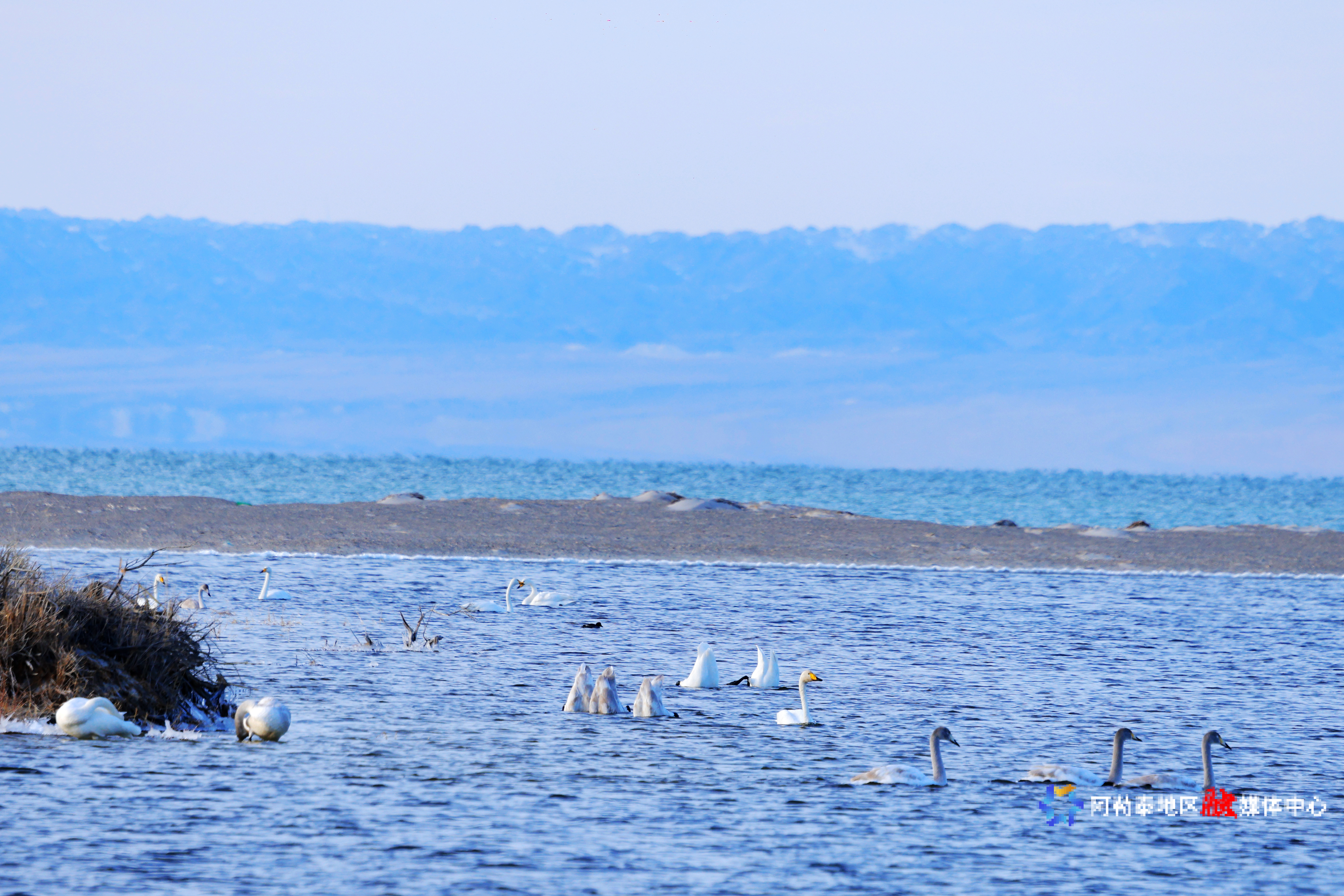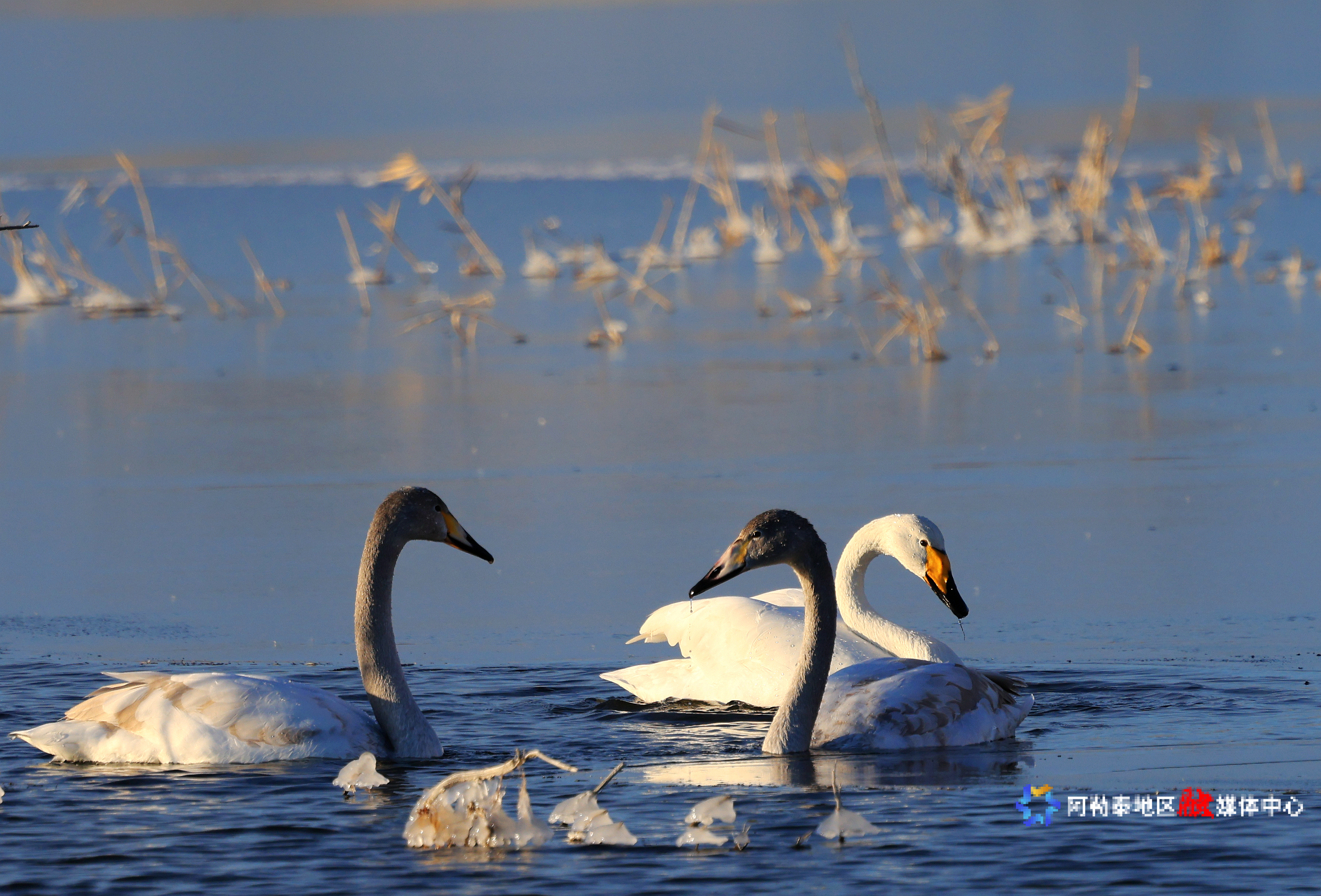 阿勒泰新闻网-阿勒泰地区融媒体中心(记者 阿尔达克·拜斯汗)11月15日,天鹅在福海县乌伦古湖栖息。
