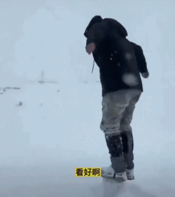 纵身一跃跳入1米多高的雪里