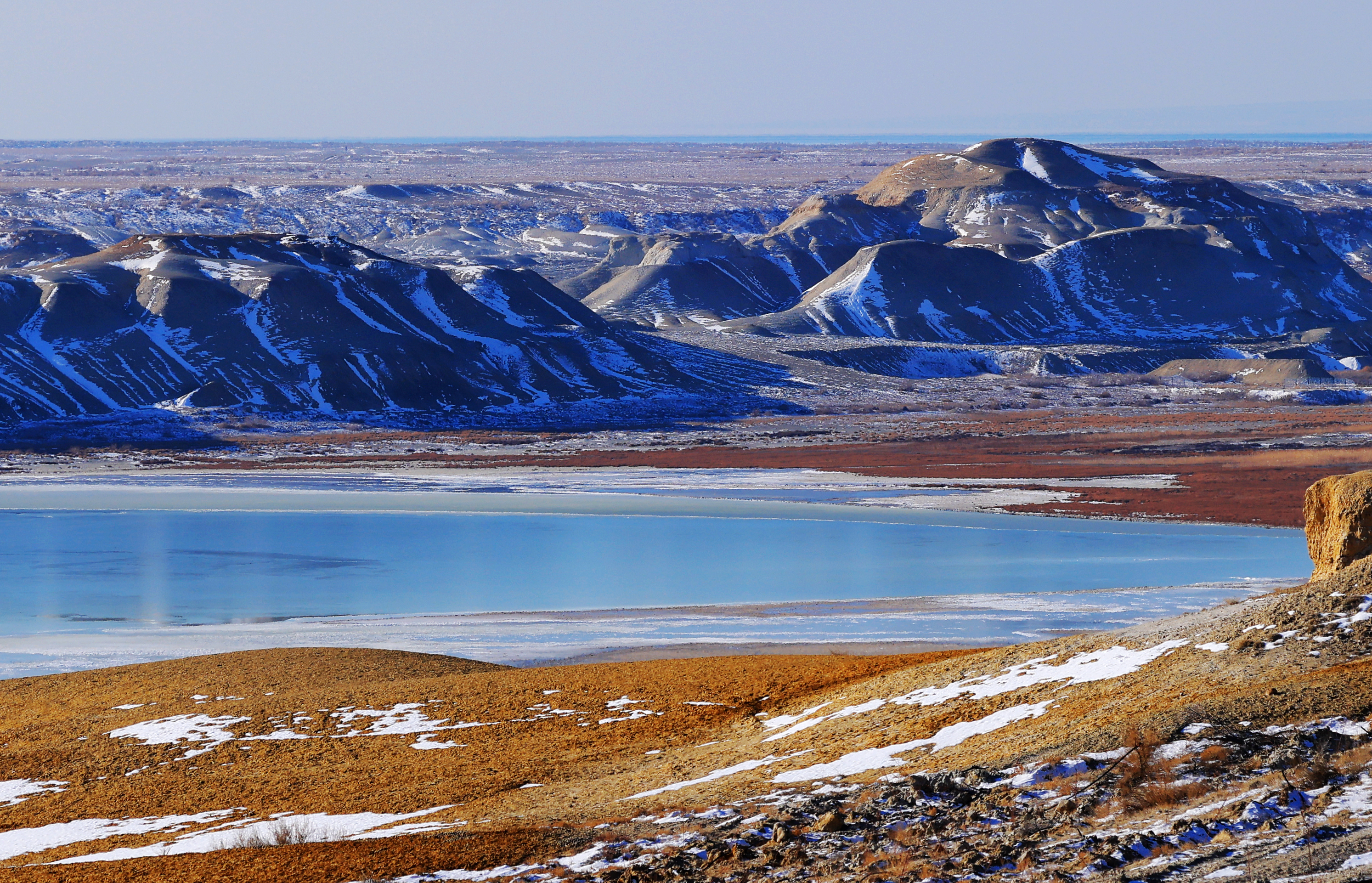 雪落乌伦古湖 美景如画
