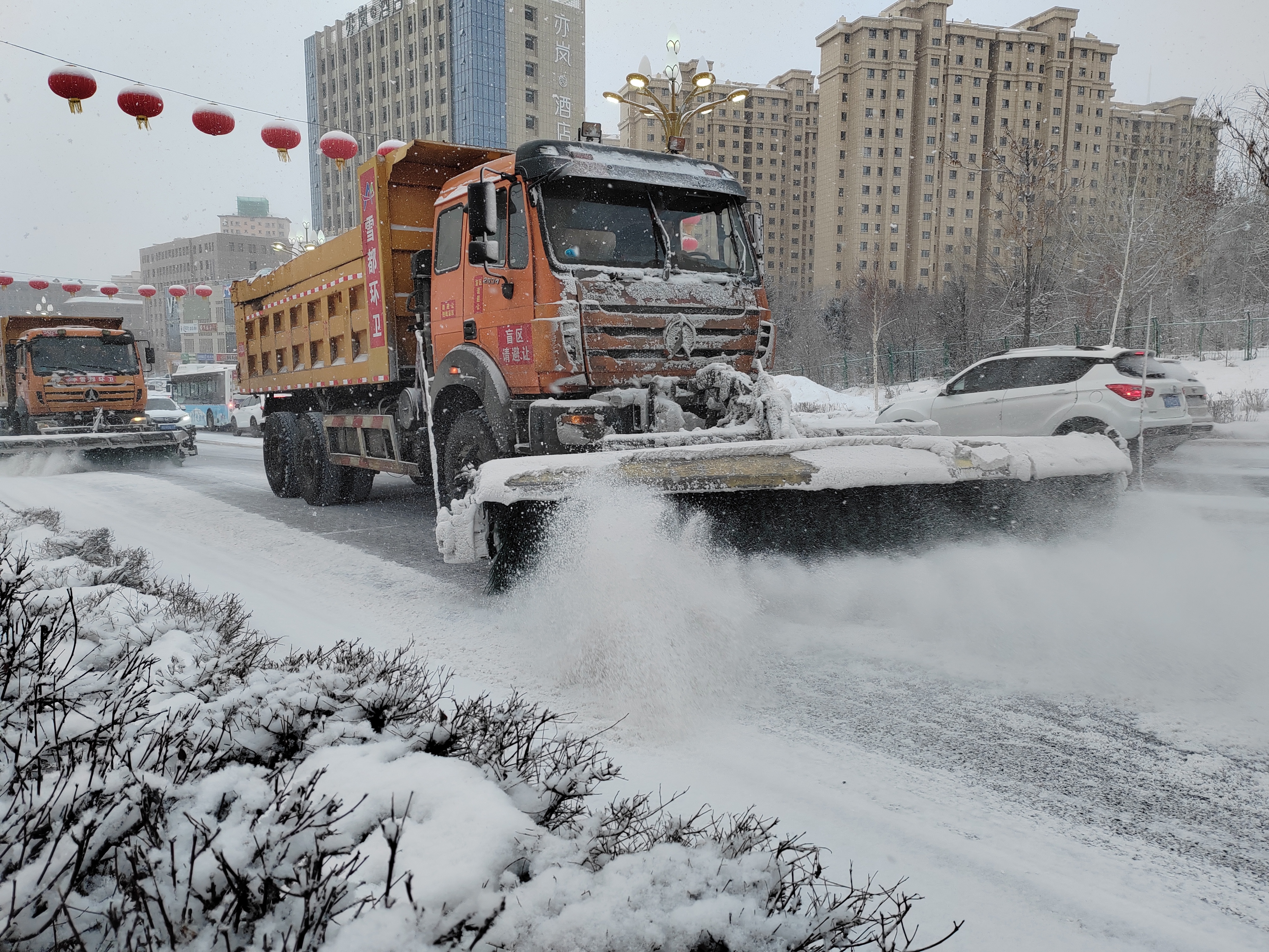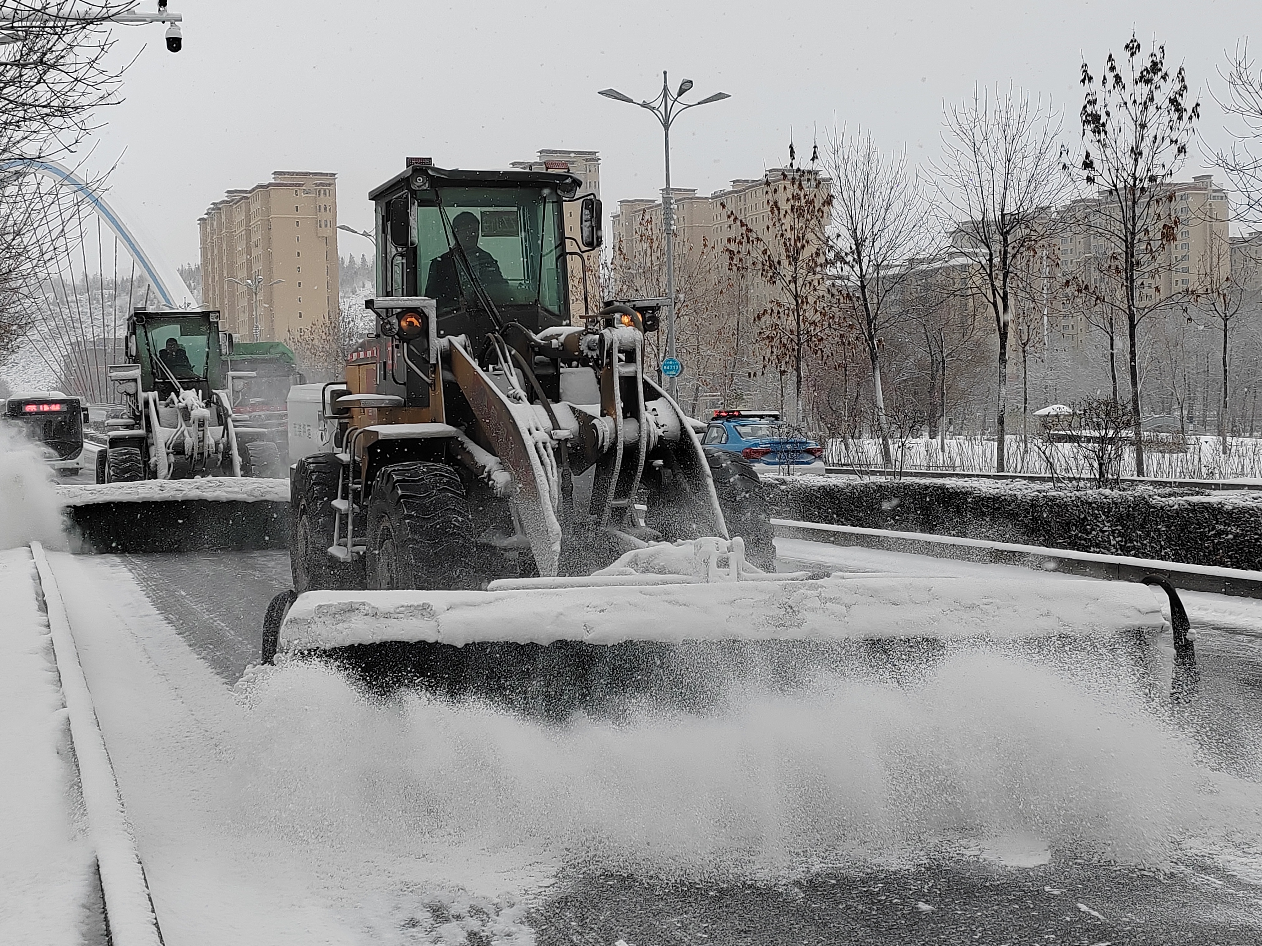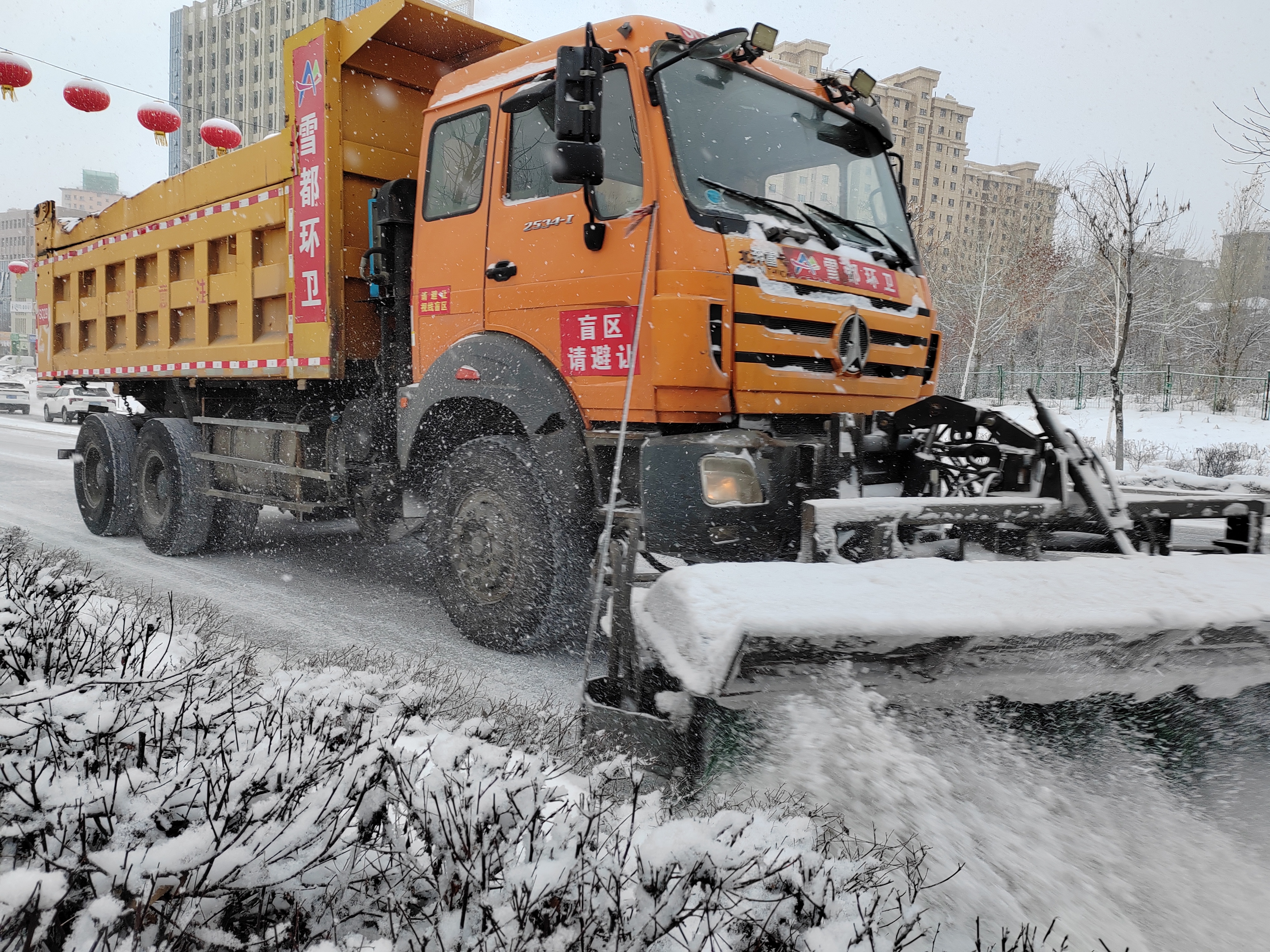 随着铲雪车等清雪机械的轰鸣声,一条条被白雪覆盖的道路逐渐露出了原本面貌。环卫工人清扫人行道上的积雪、配合机械清理主干道上的积雪,他们成为这座城市中最美的风景。