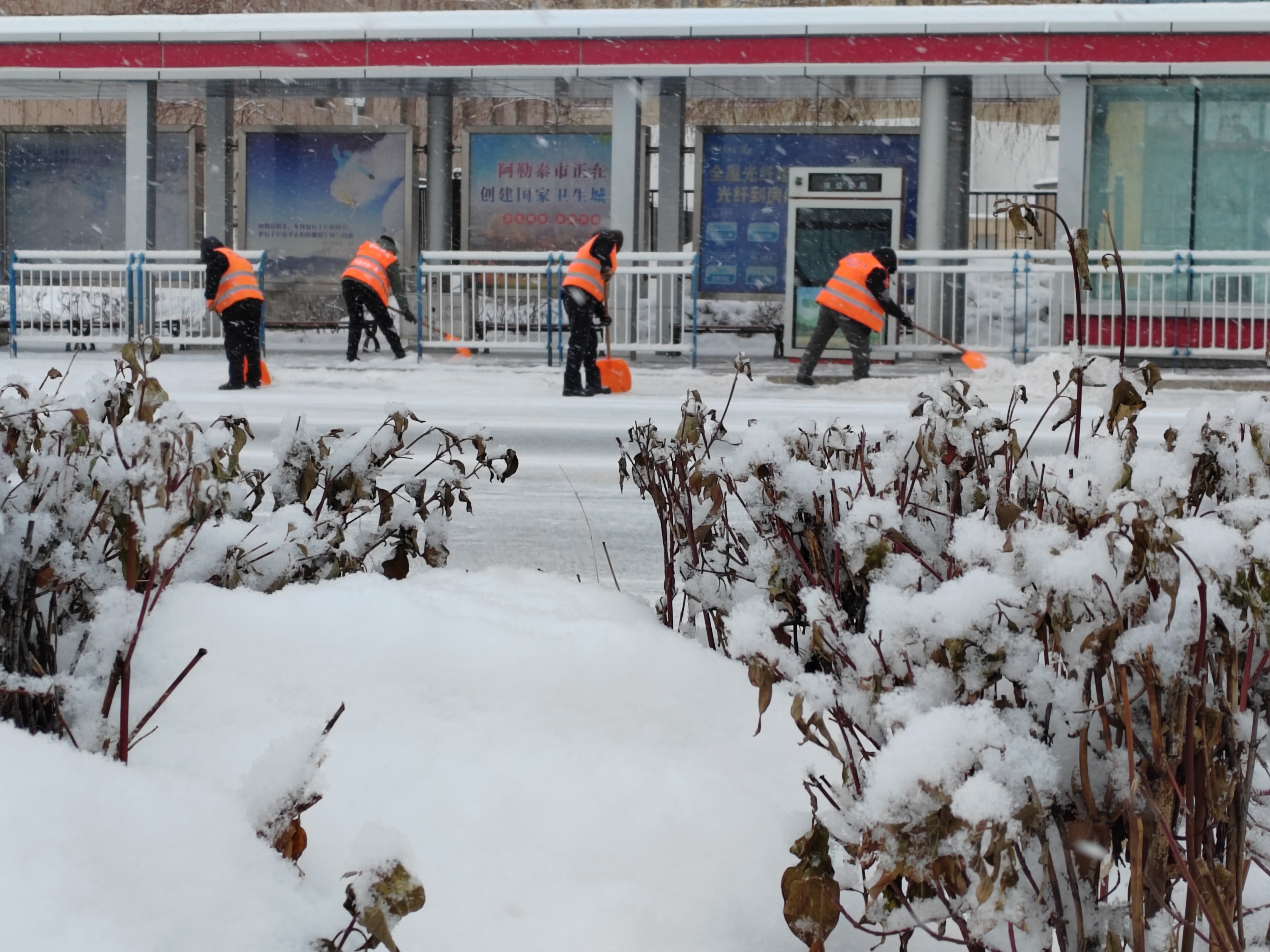 阿勒泰新闻网-阿勒泰地区融媒体中心(记者 代维利)12月9日清晨,一场降雪翩然而至,为确保道路畅通,环卫工人们走上街头开展清雪行动。