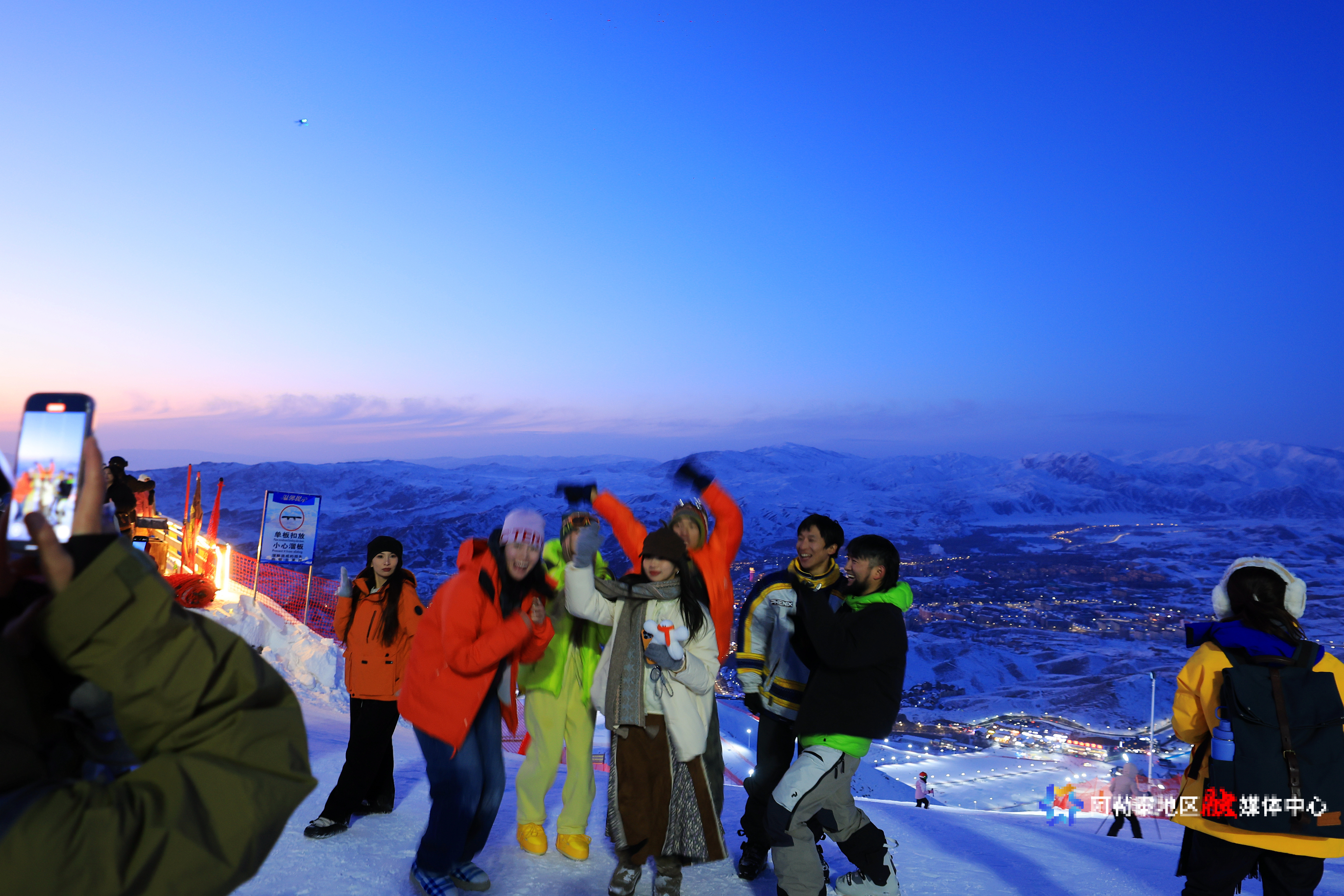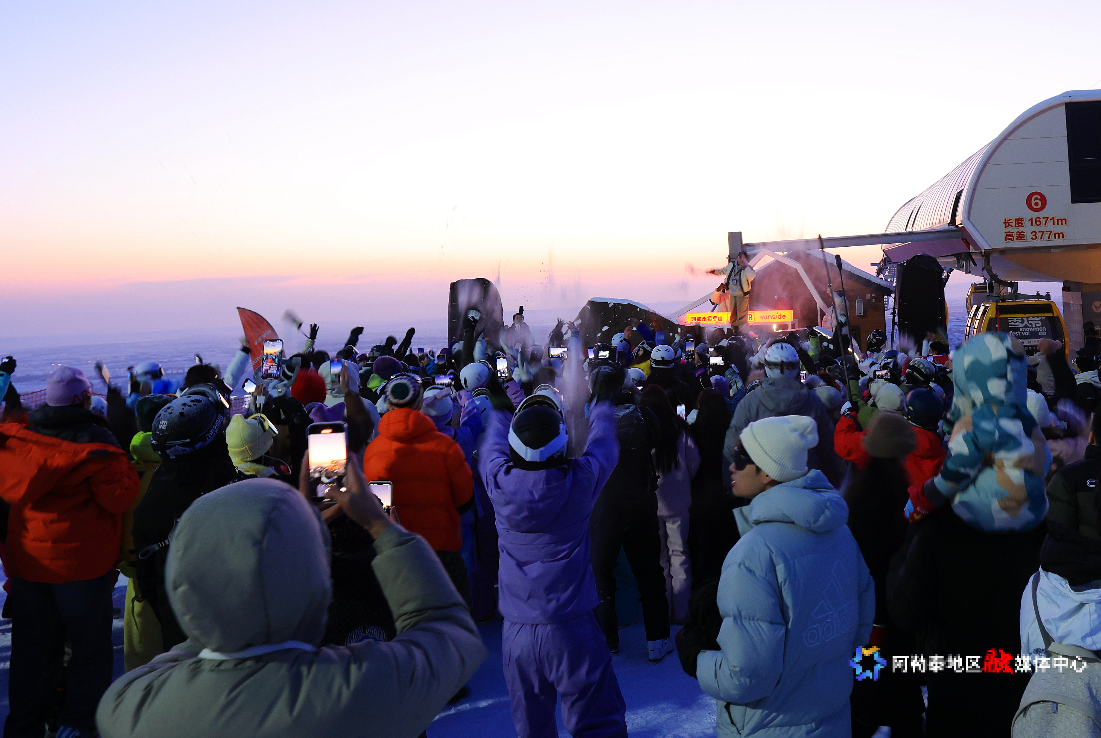 阿勒泰新闻网-阿勒泰地区融媒体中心(记者 阿尔达克·拜斯汗)12月21日傍晚,随着夕阳西落,阿勒泰的天空被一抹温暖的橙红色所笼罩。从阿勒泰将军山国际滑雪度假区山顶远眺,连绵的山脉在夕阳的余晖中显得格外壮丽,宛如一幅精心绘制的美丽画卷。雪友们齐聚山顶,邂逅绝美夕阳,体验山顶蹦迪快乐。