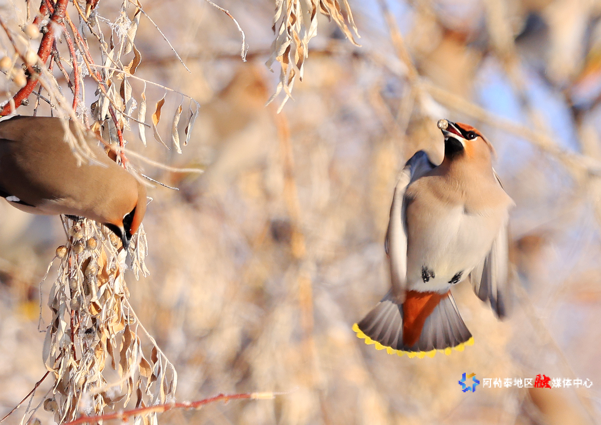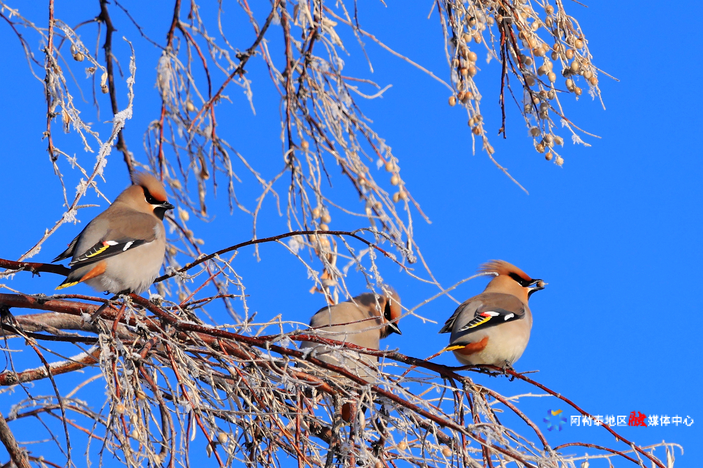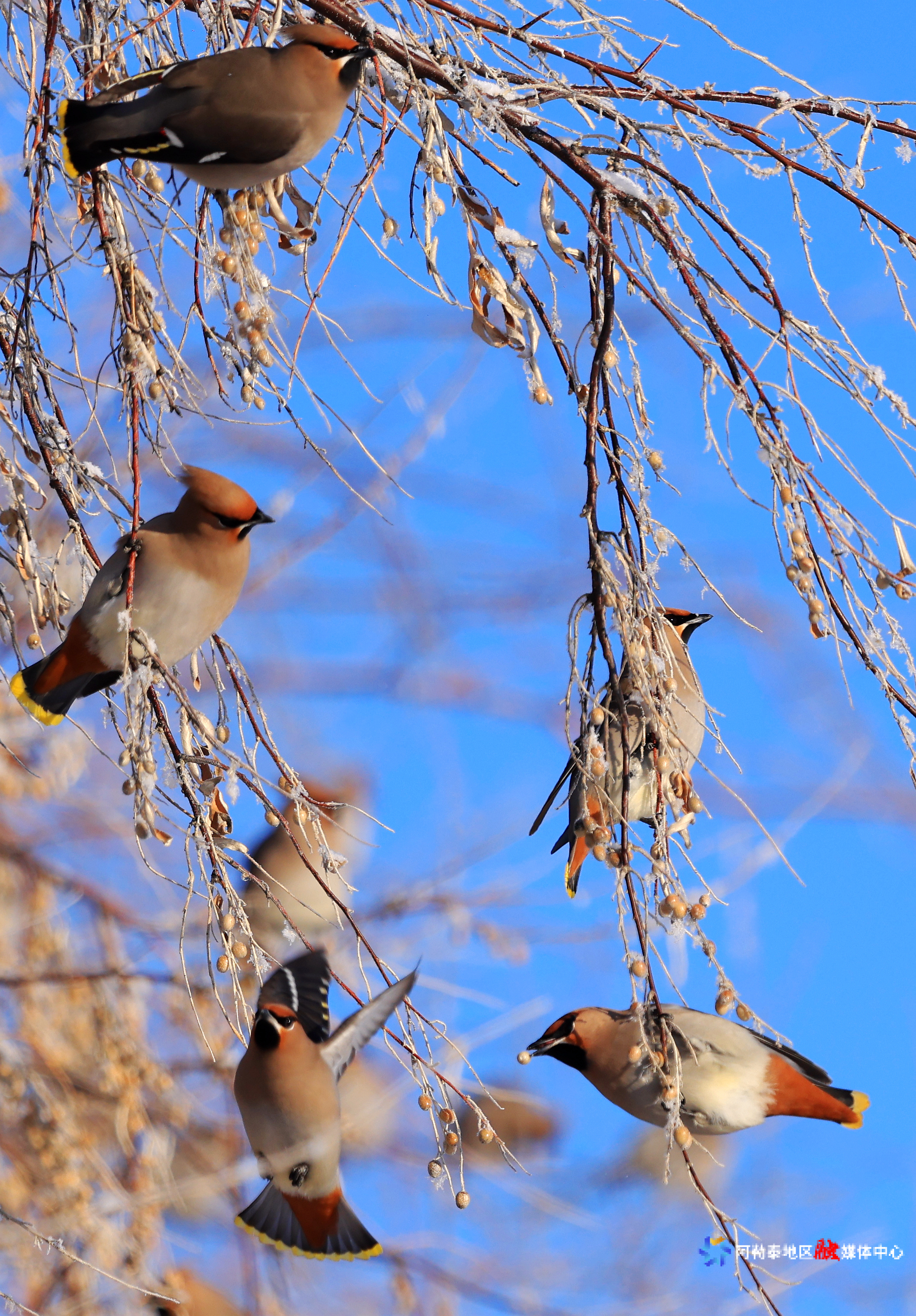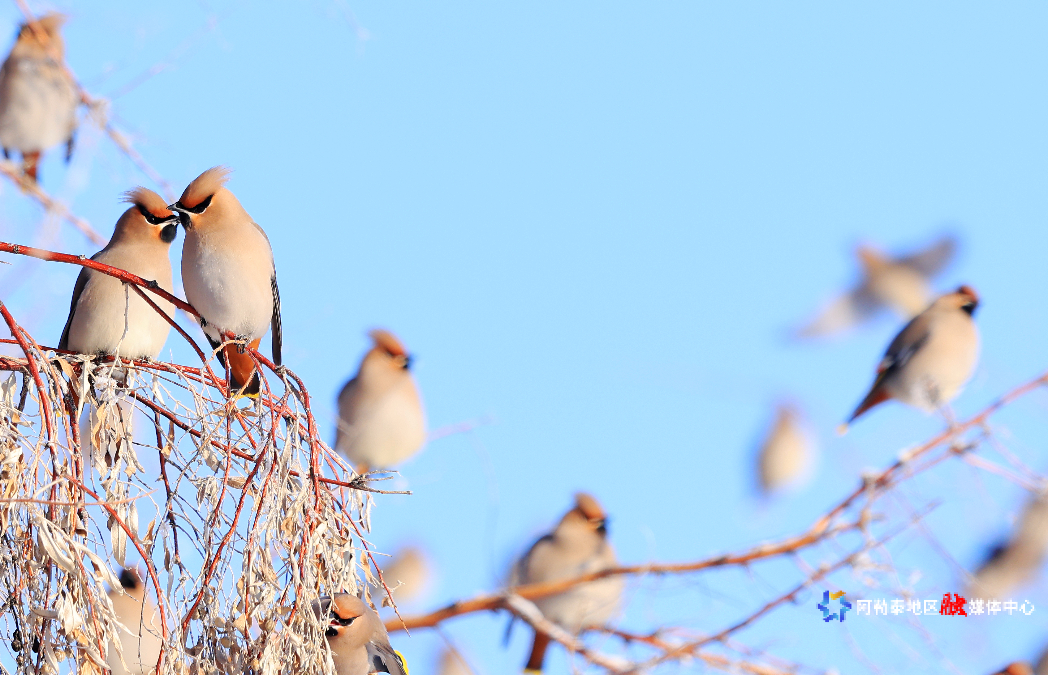 阿勒泰新闻网-阿勒泰地区融媒体中心(记者 阿尔达克·拜斯汗)12月24日,在阿勒泰市阿苇滩镇一片林地里,一群太平鸟在枝头欢快觅食,它们的身影在晨光中显得格外灵动。