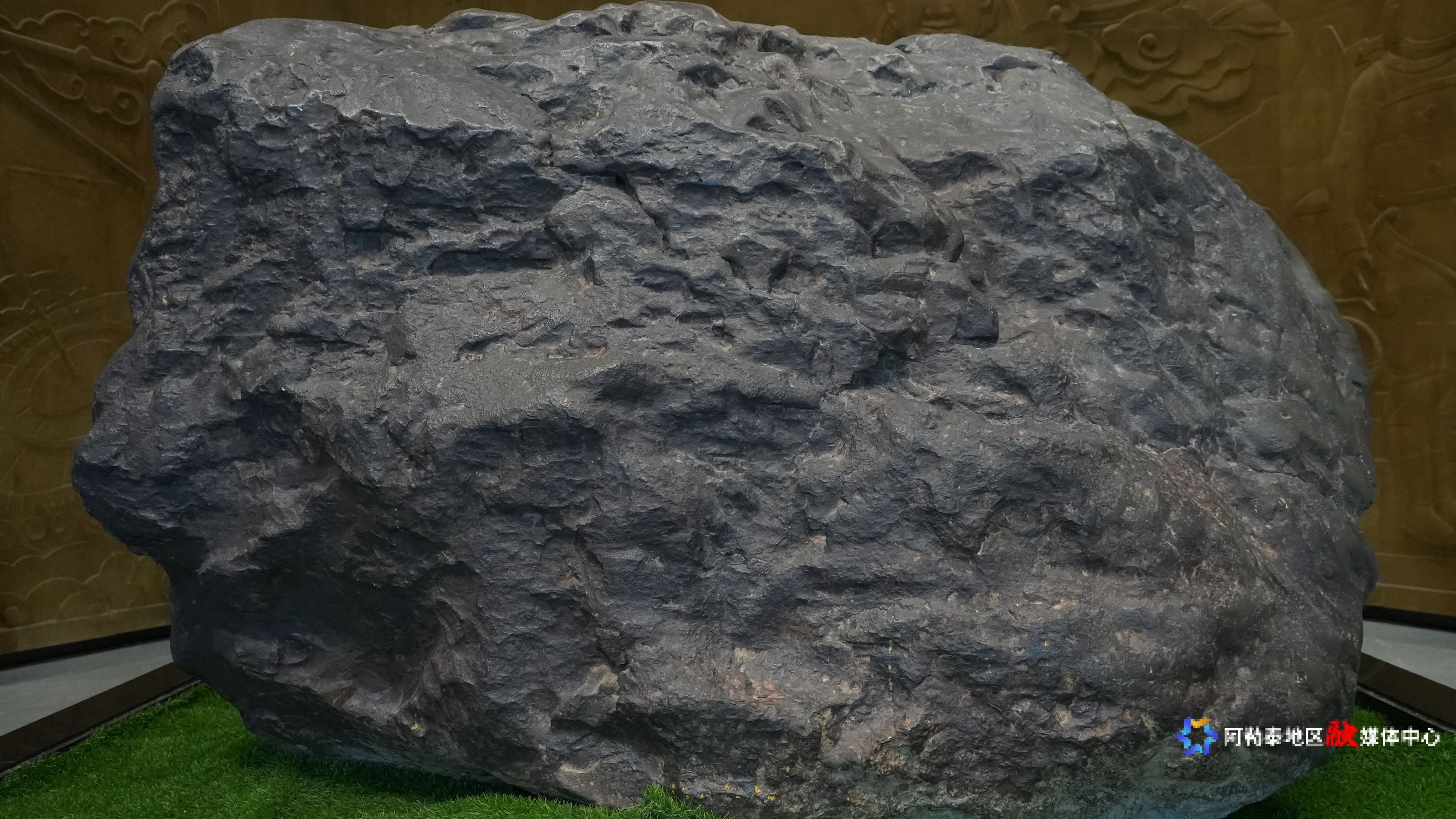 据介绍,“阿勒泰之星”重17.8吨,呈不规则圆锥体,高2.3米,底部直径1.5米,含88.67%的铁和9.27%的镍。二十世纪八十年代,它在阿勒泰克兰大峡谷被发现,因其含有6种地球上没有的矿物(锥纹石、镍纹石、变镍纹石、合纹石、陨硫铁和磷铁镍),故具有极高的科研价值。它与藏于新疆地质矿产博物馆的“银骆驼”为同一来源的成对陨石。