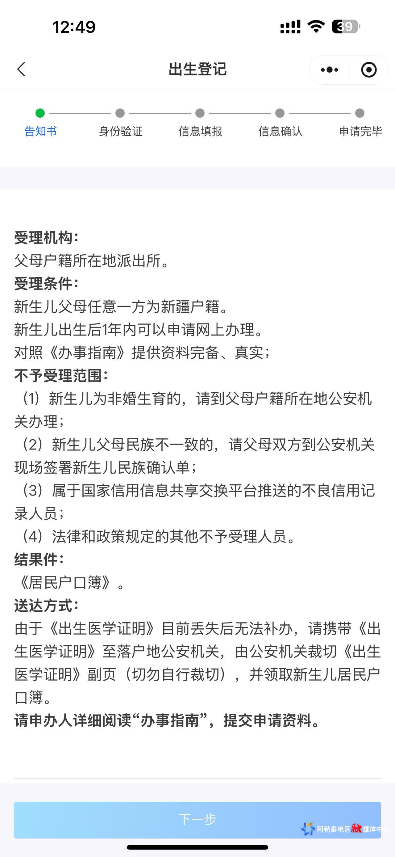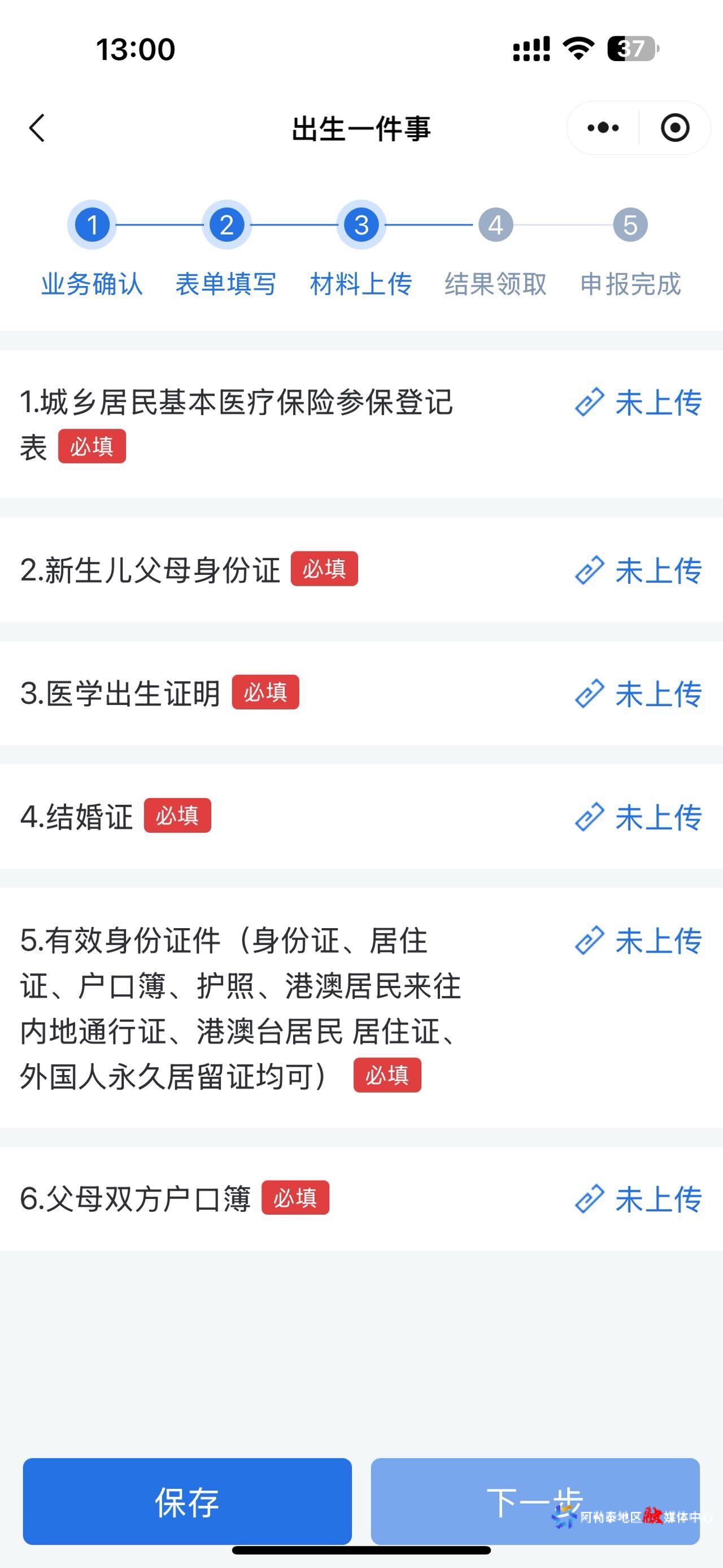 以往,新生儿家长办理生育医疗费用报销、户口登记、社会保障卡申领等事项需要“多处跑、来回跑”,办理时间跨度大,准备材料多。现在,家长只需先在助产机构办理《新生儿出生医学证明》,再打开“新疆政务服务—新服办”小程序,点击首页“婚育业务”选择“新生儿出生一件事”,再选择“办理地区”,并根据引导确认需要办理的事项及上传申报材料,便可办理完成。