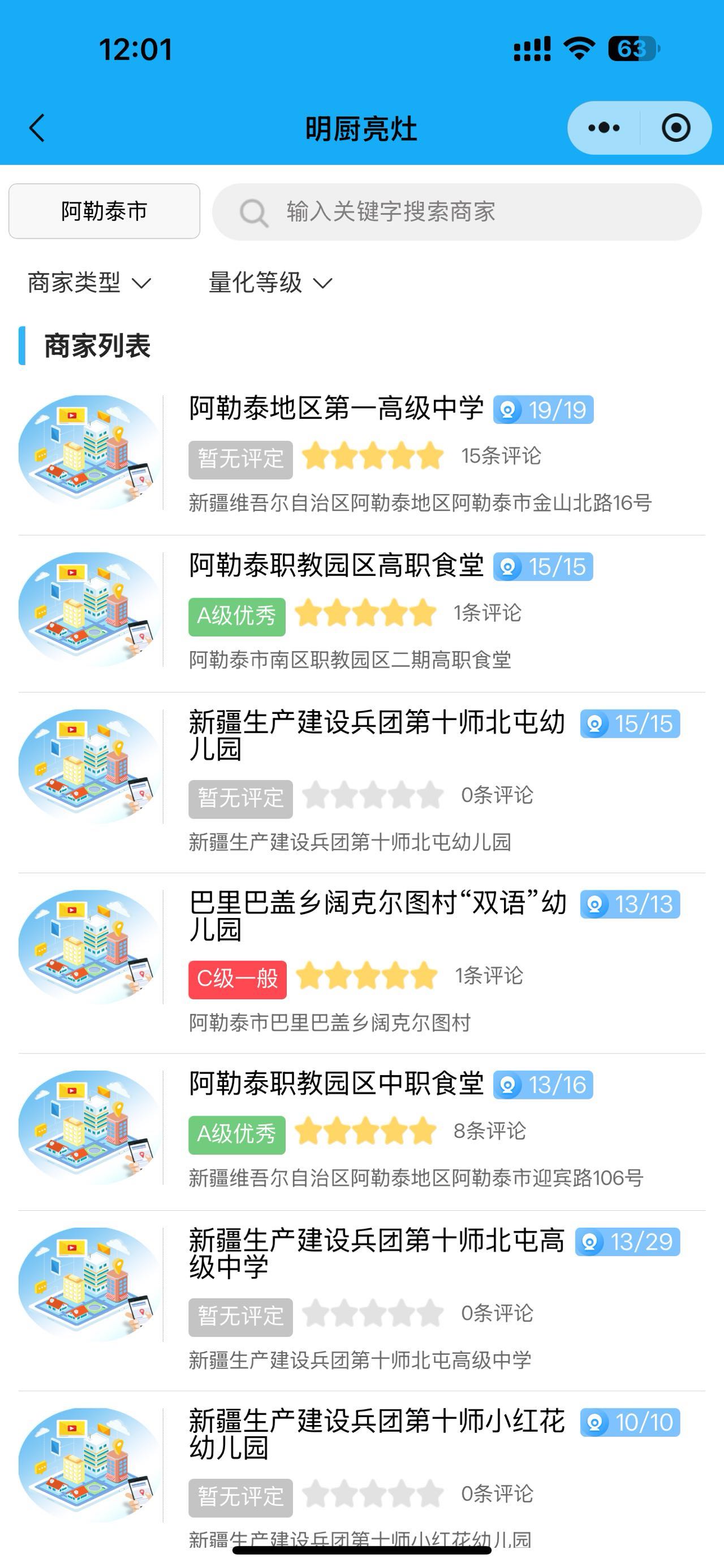 “明厨亮灶”系统设计了“智慧监管”终端,把后堂实时画面生成二维码,投放在学校门口明显位置,家长们只需使用手机扫描二维码,即可随时随地查看学校食堂的加工制作画面。同时,家长可通过微信搜索“阿勒泰地区市场监督管理局”小程序,在线实时查看食堂情况。
