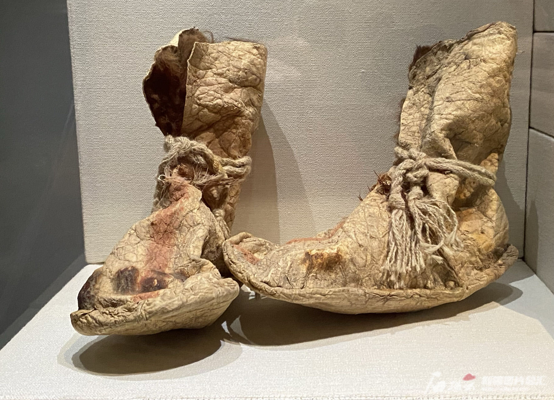 小河墓地出土皮靴。石榴云/新疆日报记者赵梅摄