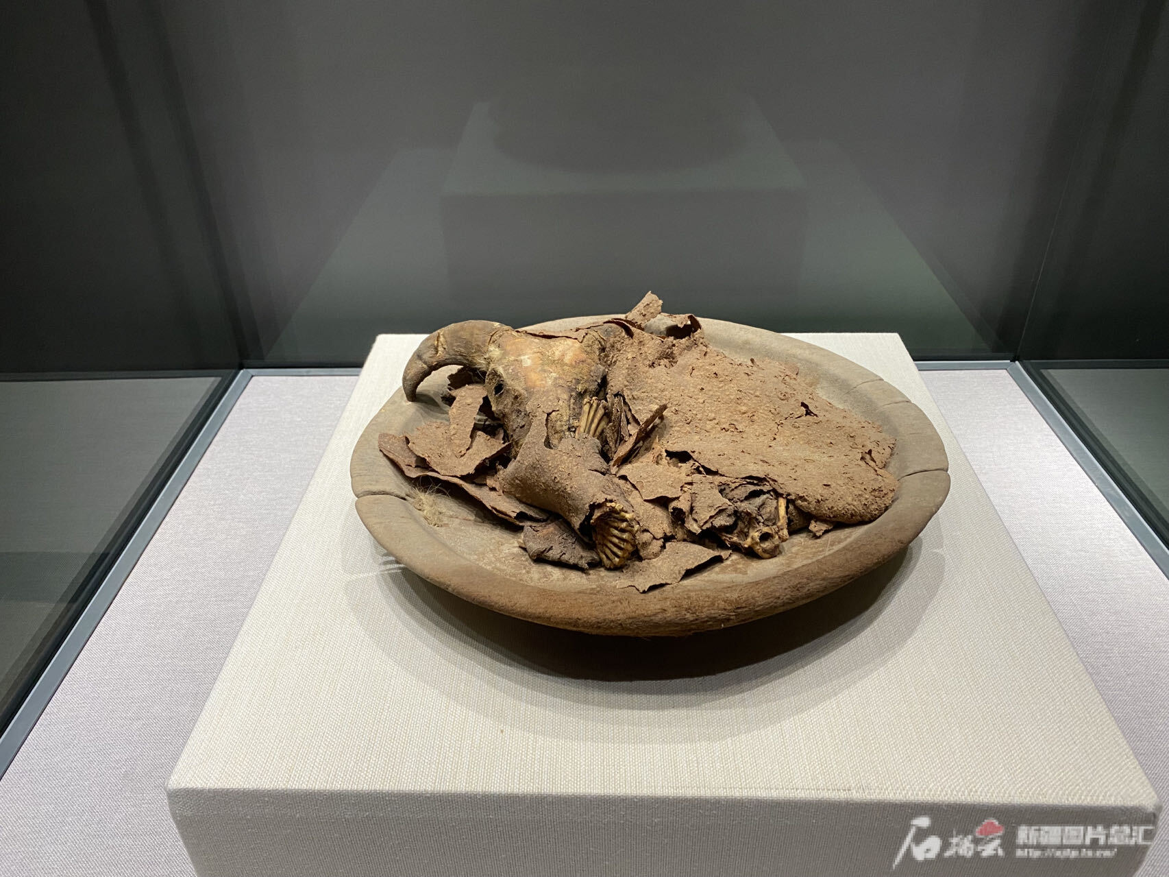 尉犁县营盘墓地出土木盘及食物。石榴云/新疆日报记者赵梅摄