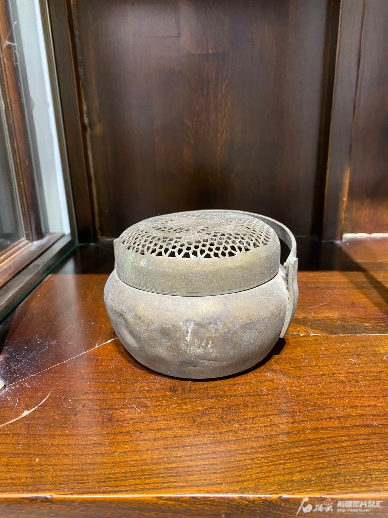新疆文物总店展出民国时期镂空铜手炉。石榴云/新疆日报记者赵梅摄