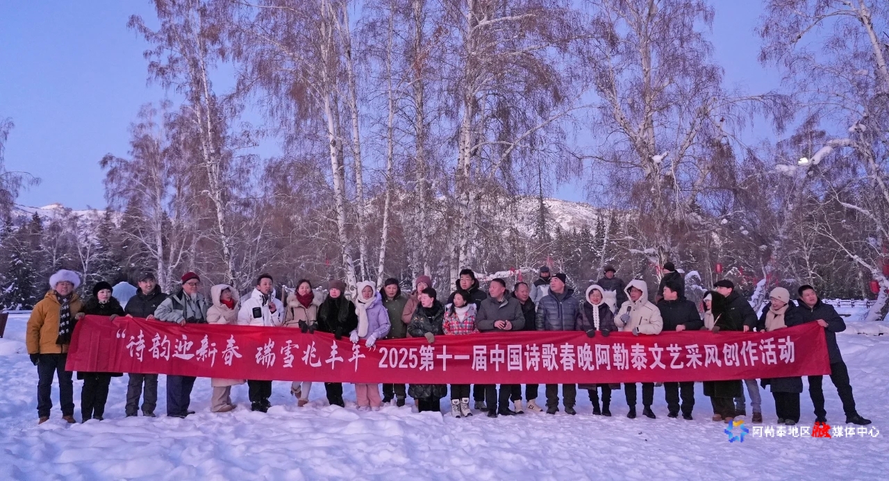 可可托海国际滑雪度假区、可可苏里等地为阿勒泰文艺采风团成员带来了无尽的创作灵感。冰雪之中,文艺家们即兴朗诵,悠扬的诗声在雪场间回荡,与周围的白雪相得益彰,构成了一幅动人的画面,充分表达和传递了对阿勒泰的热爱与赞美。