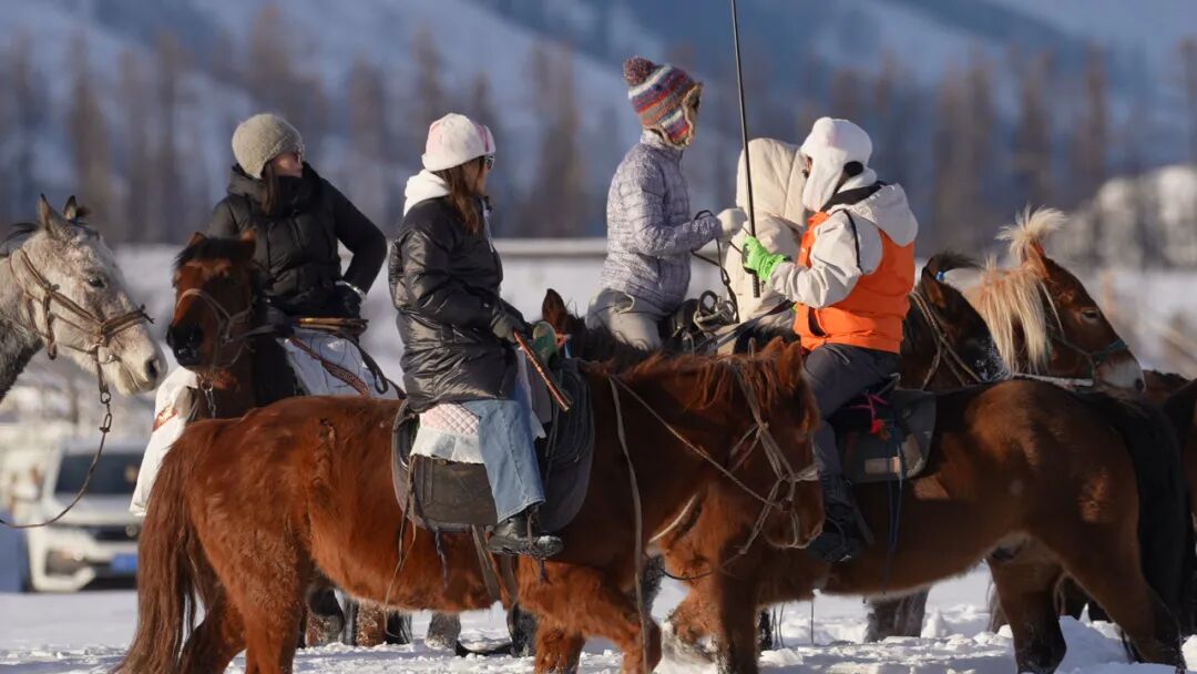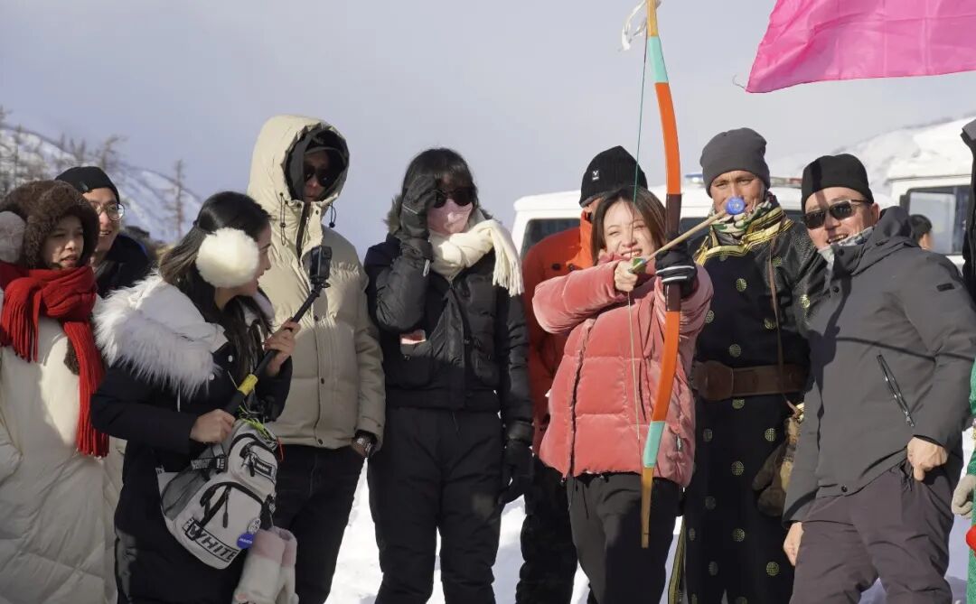 与此同时,游客可以体验马拉雪橇、骑马、滑雪圈等项目,参与投壶、泼水成冰、传雪挑战等活动,身着民族服饰体验冰雪摄影,参加雪地篝火晚会,与当地身着传统服饰的群众共唱一首歌、共跳一支舞。