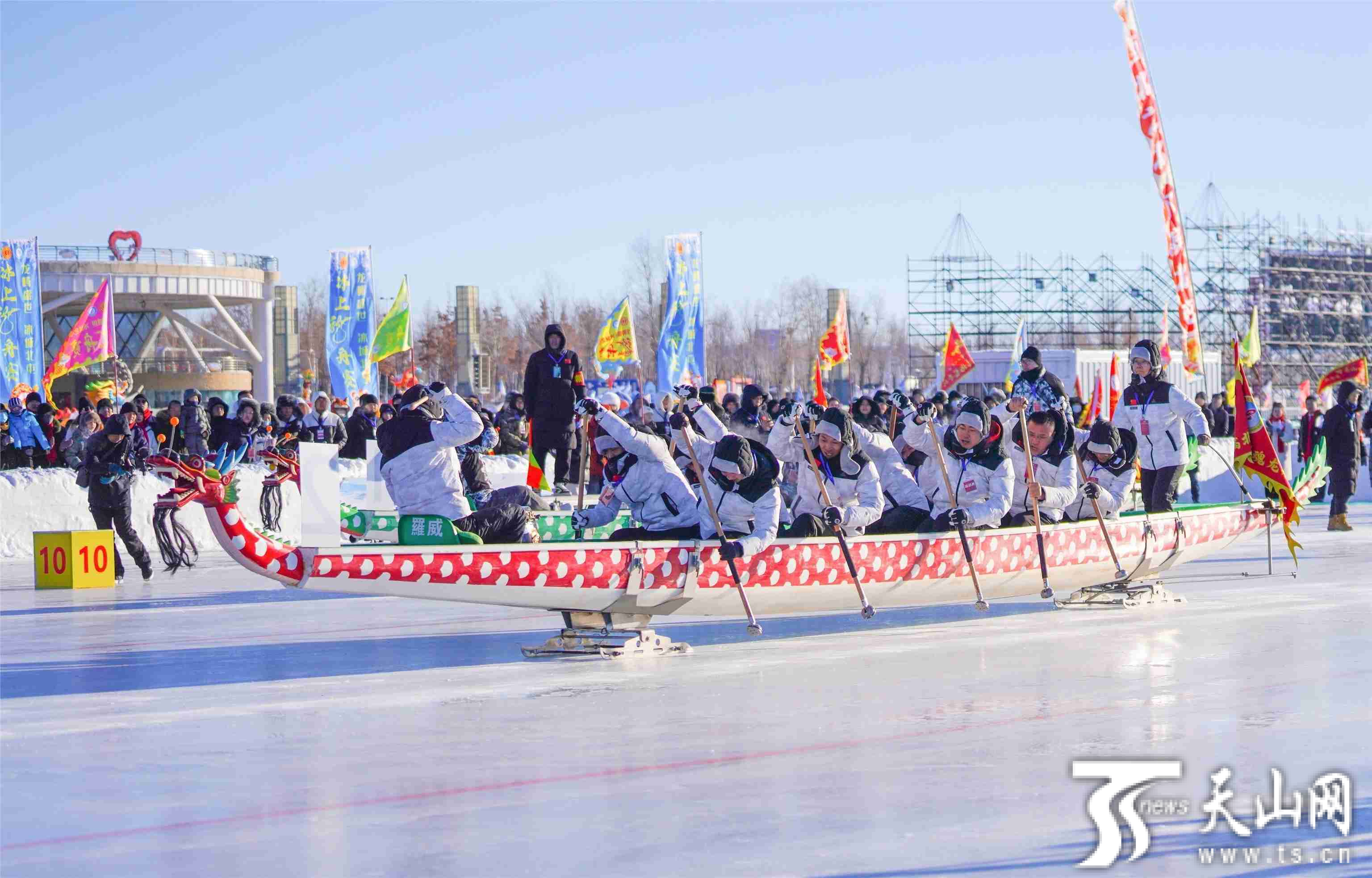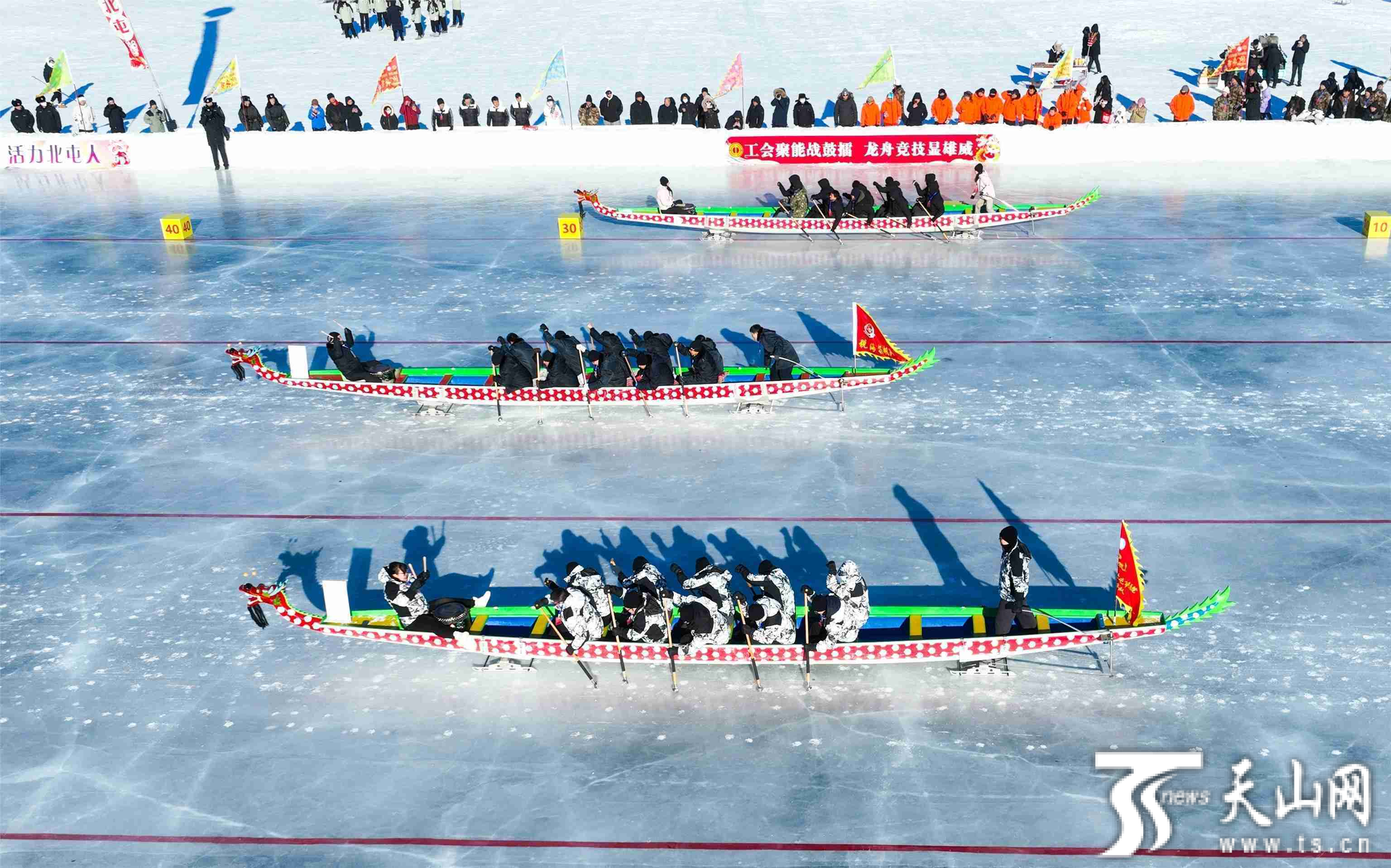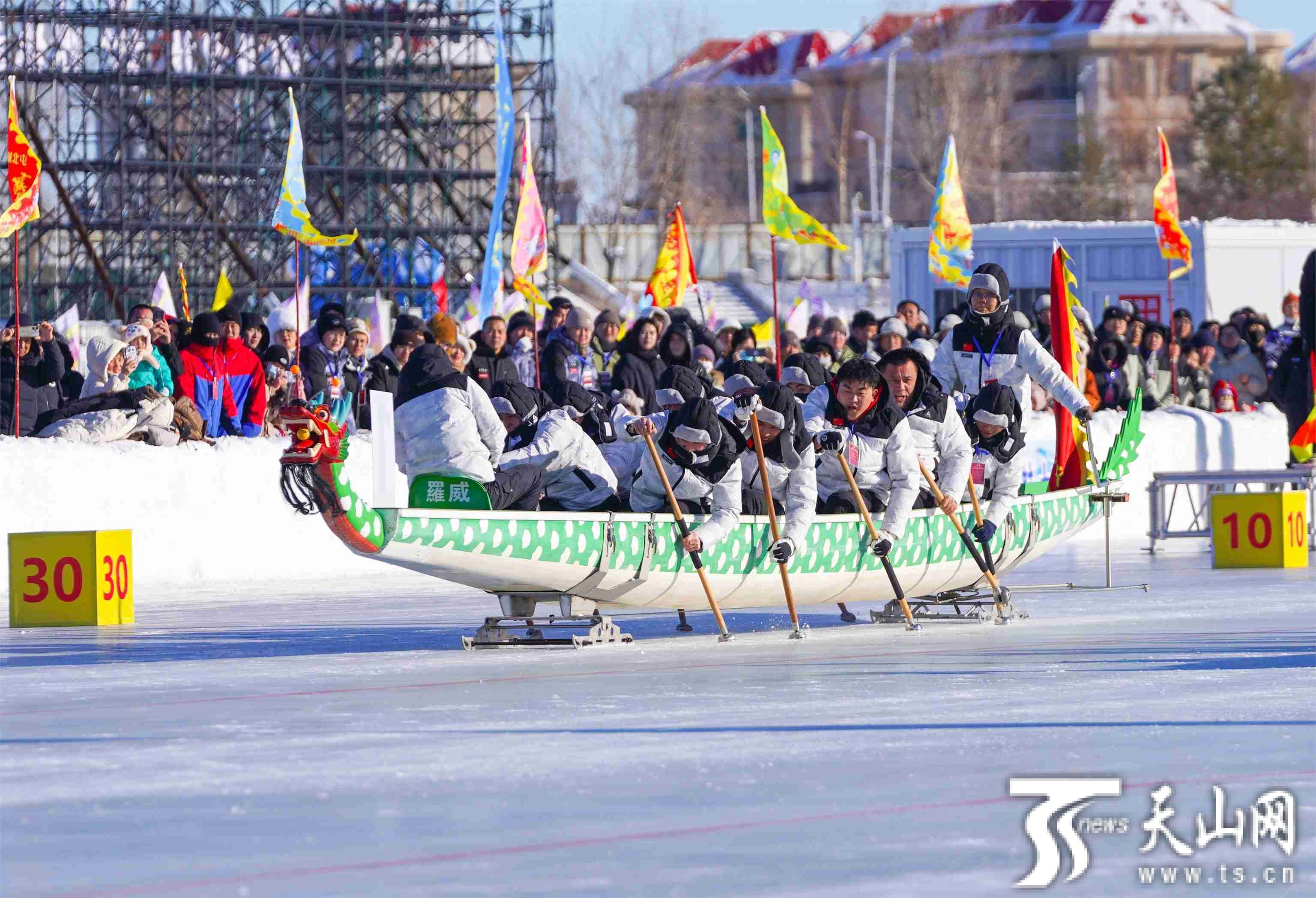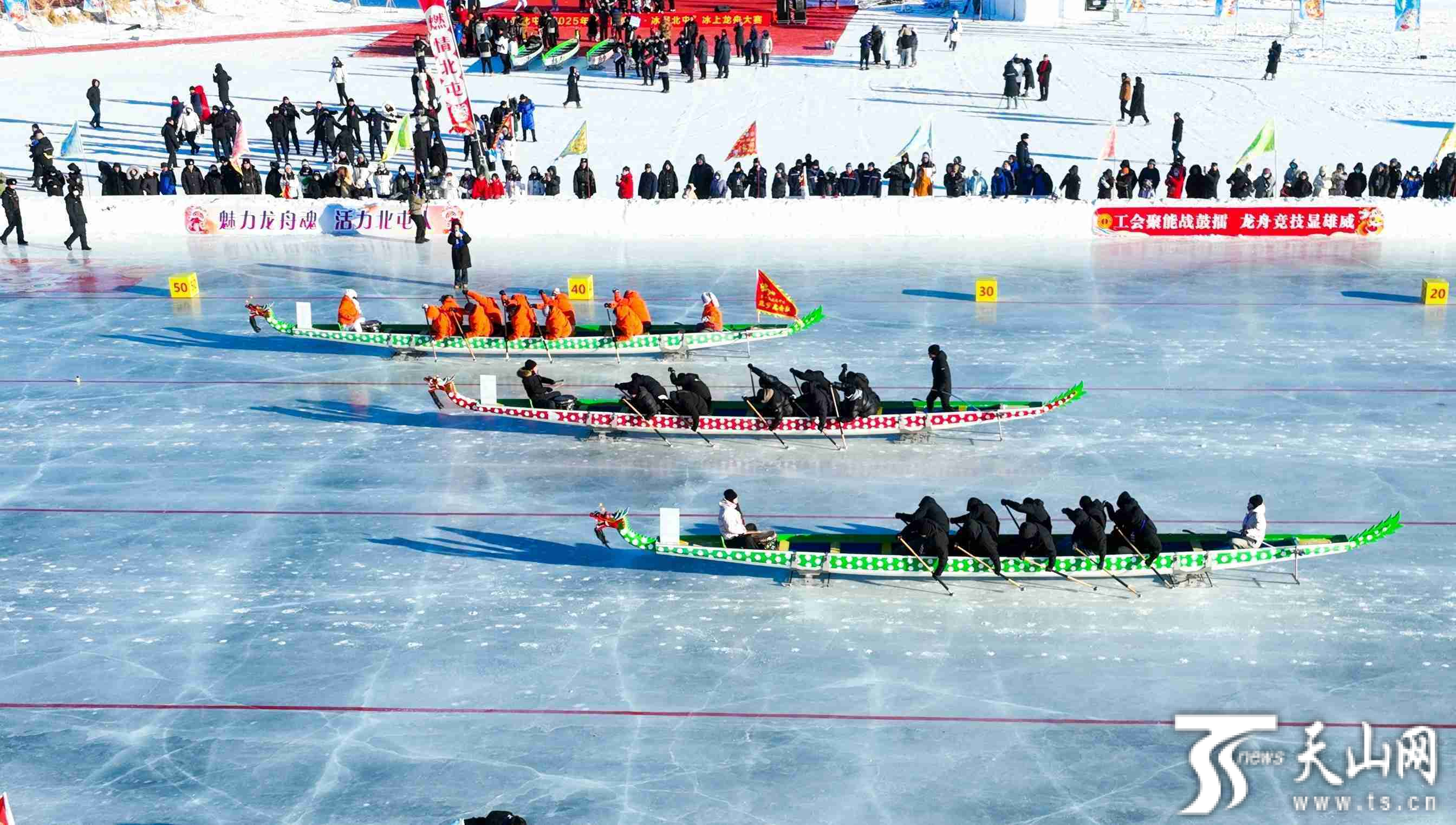 当日,北屯市2025年冰上龙舟大赛在玉带河火热开赛,来自各行各业的20支代表队在冰上激烈角逐,现场呐喊声、助威声、喝彩声此起彼伏。