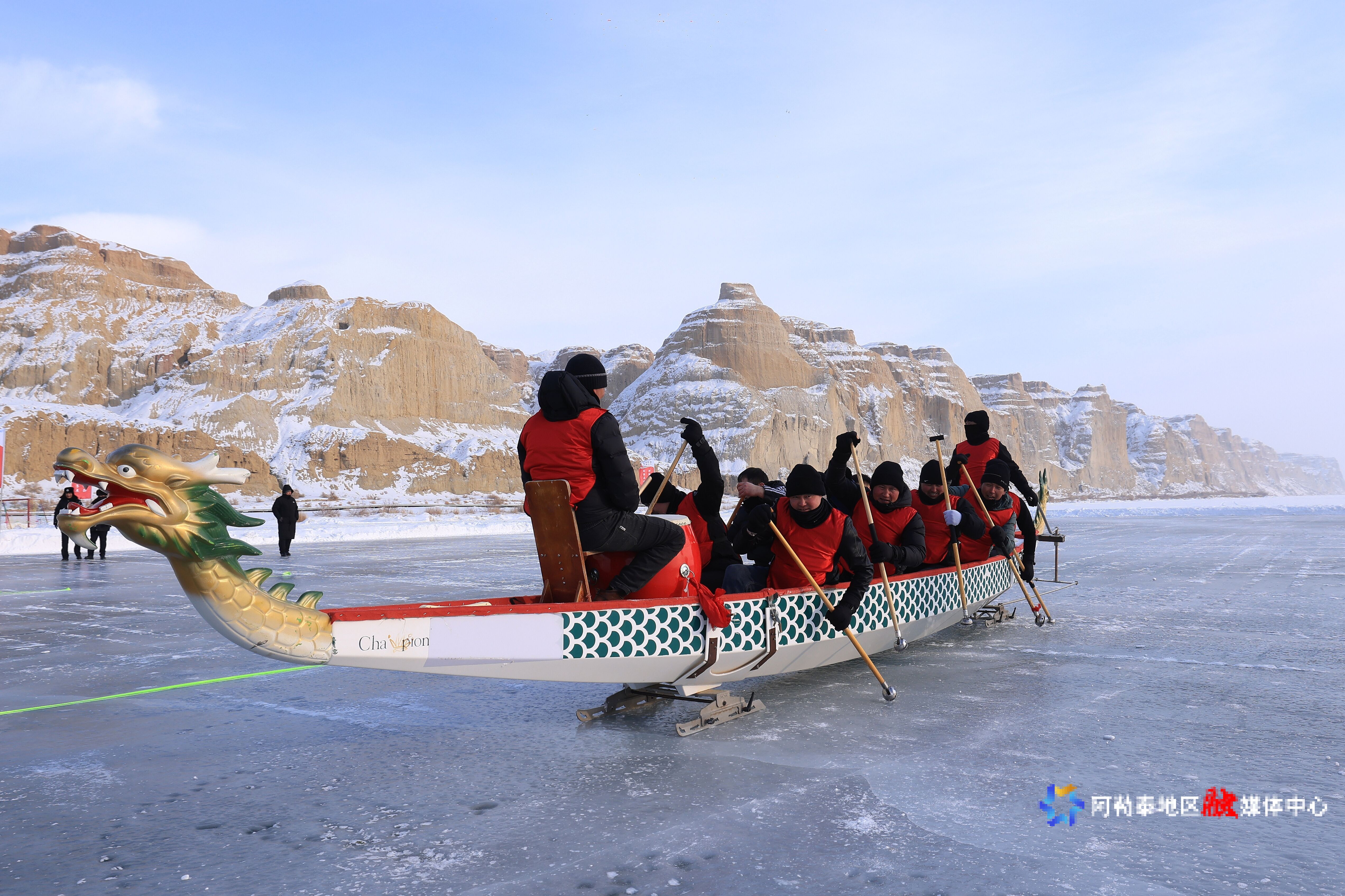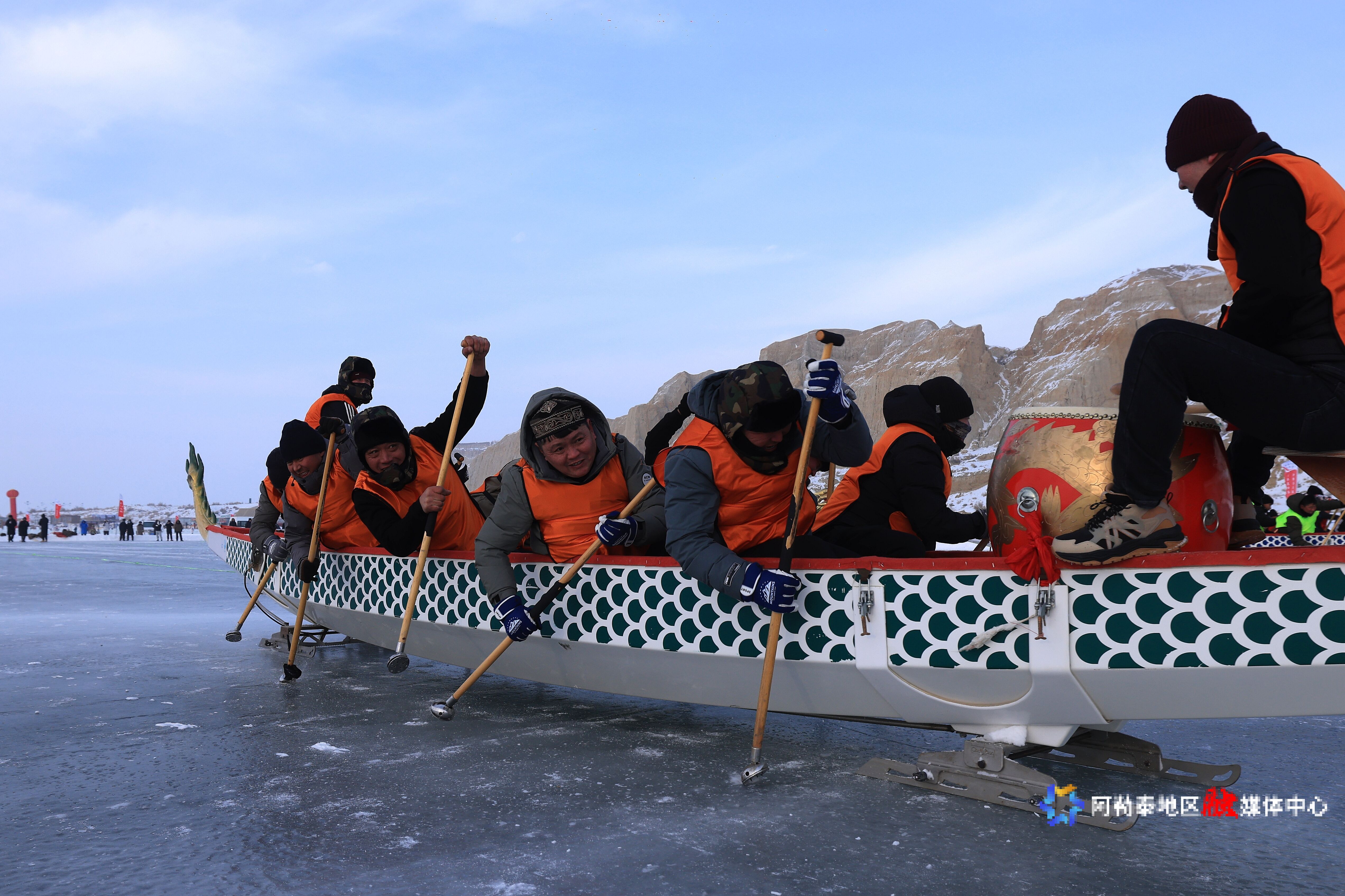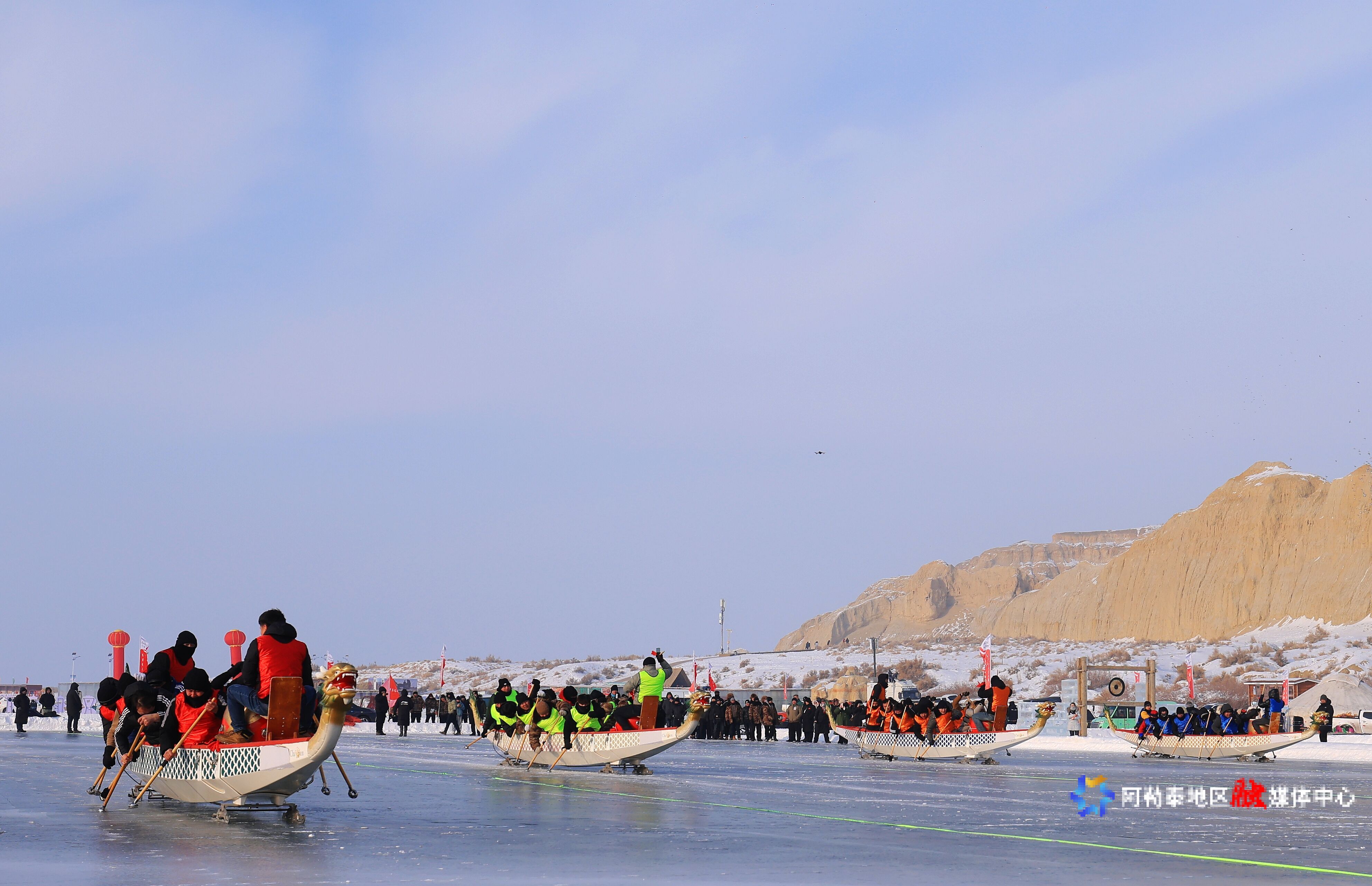 阿勒泰新闻网-阿勒泰地区融媒体中心(记者 古丽娜)1月18日下午,一场别开生面的冰上龙舟赛在福海县乌伦古湖冰面上演。