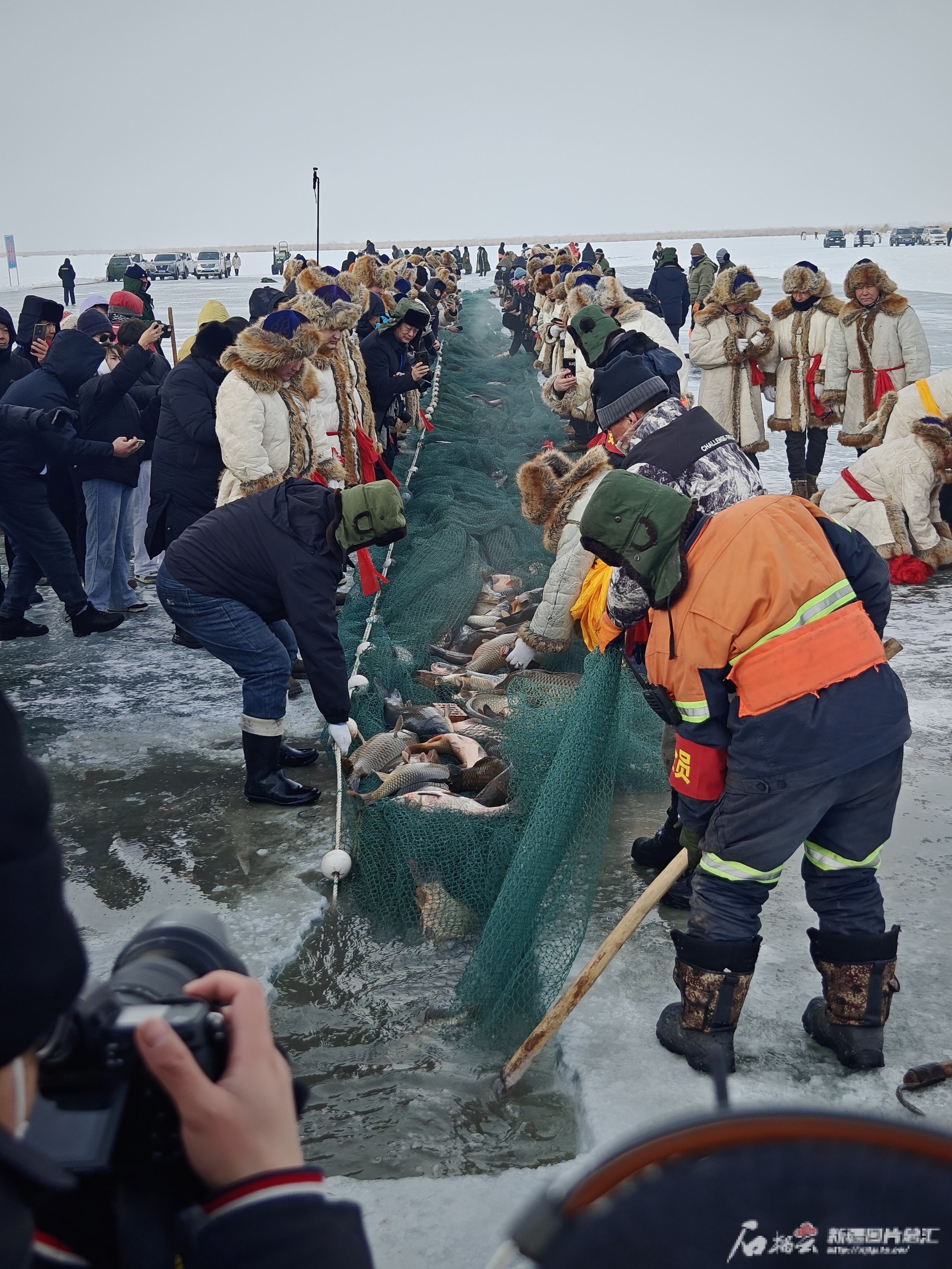 第十八届乌伦古湖冬捕文化旅游节第一网鱼。苗学龙摄