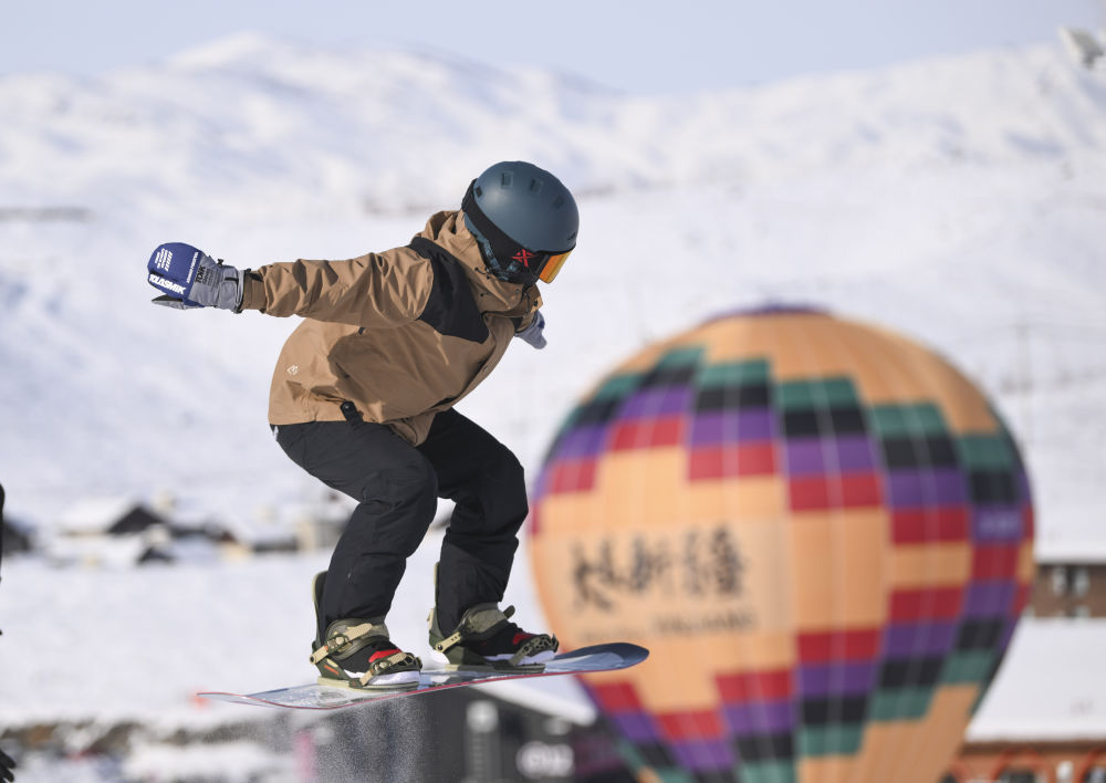 1月25日,游客在将军山国际滑雪度假区乘坐热气球观光。 新华社记者 胡虎虎 摄