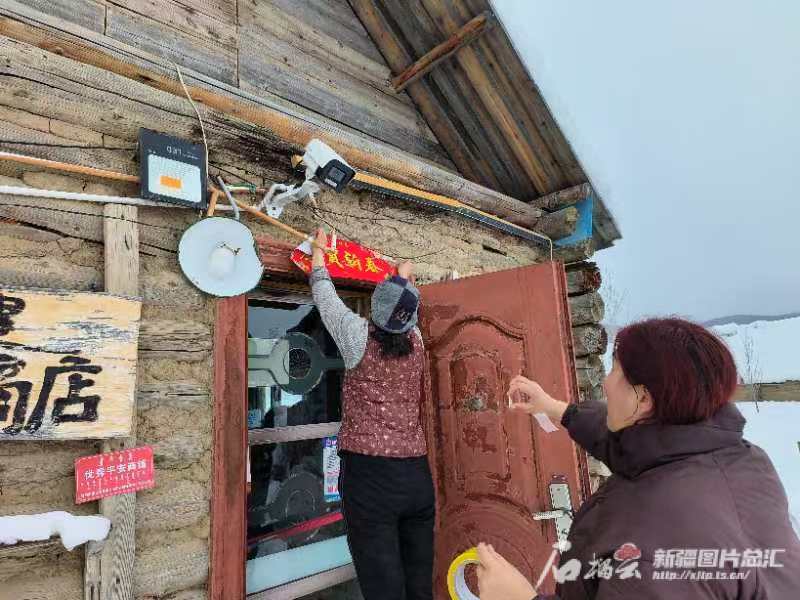 禾木村的村民在贴春联。叶尔肯巴叶尔摄