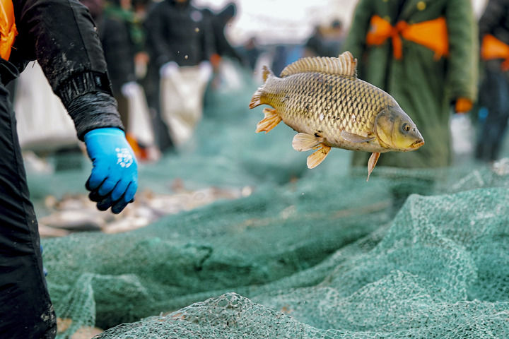 “我们冬捕用的是大网孔渔网,为的就是抓大放小,有助于鱼类繁殖,维护生态平衡。”渔工说。