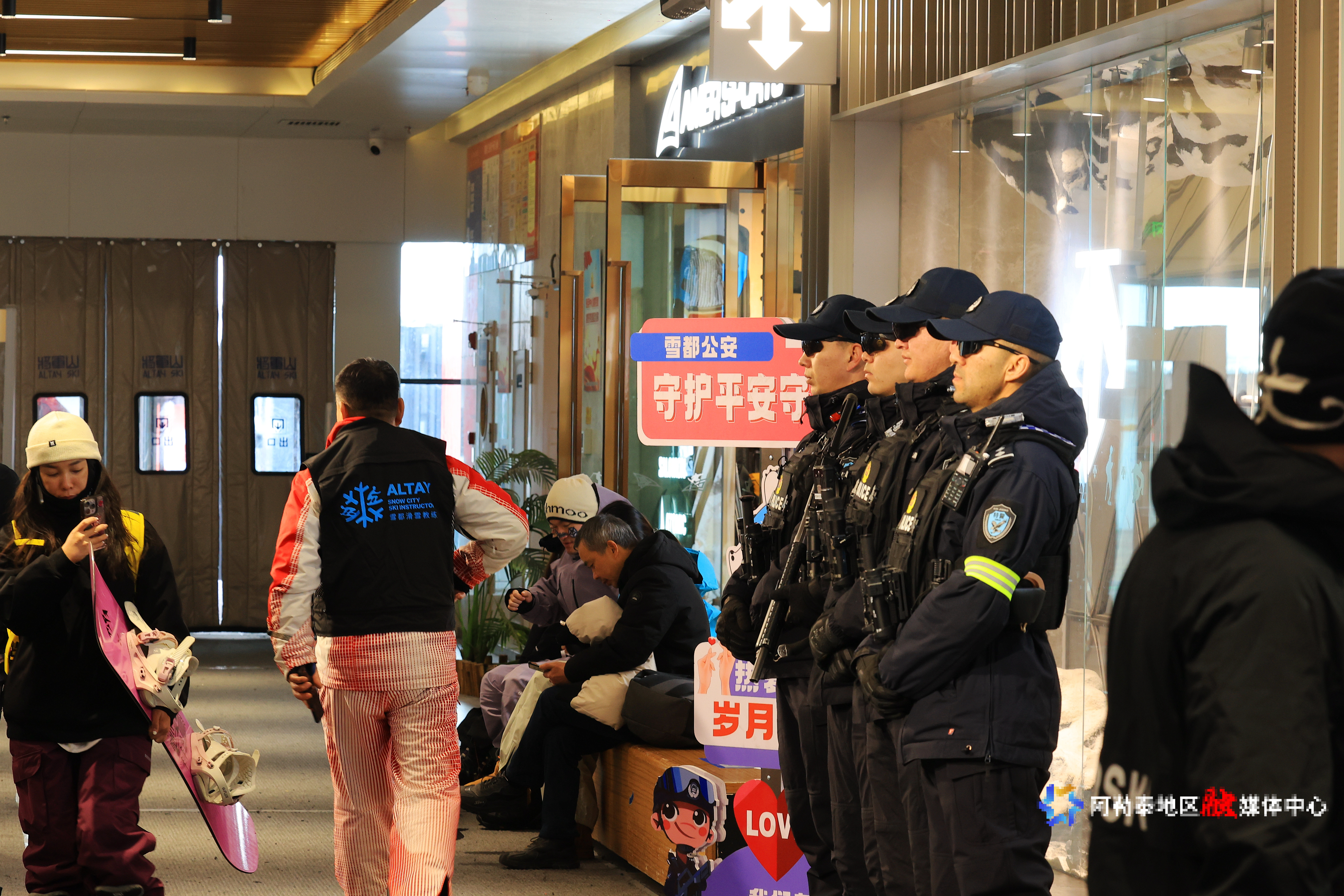 在阿勒泰将军山国际滑雪度假区,雪都特警队员正在开展治安巡逻工作。他们身着特警制服,精神抖擞,在熙熙攘攘的人群中为游客们提供着安全保障。他们的坚守,让游客们在享受滑雪乐趣的同时,也能感受到满满的安全感。
