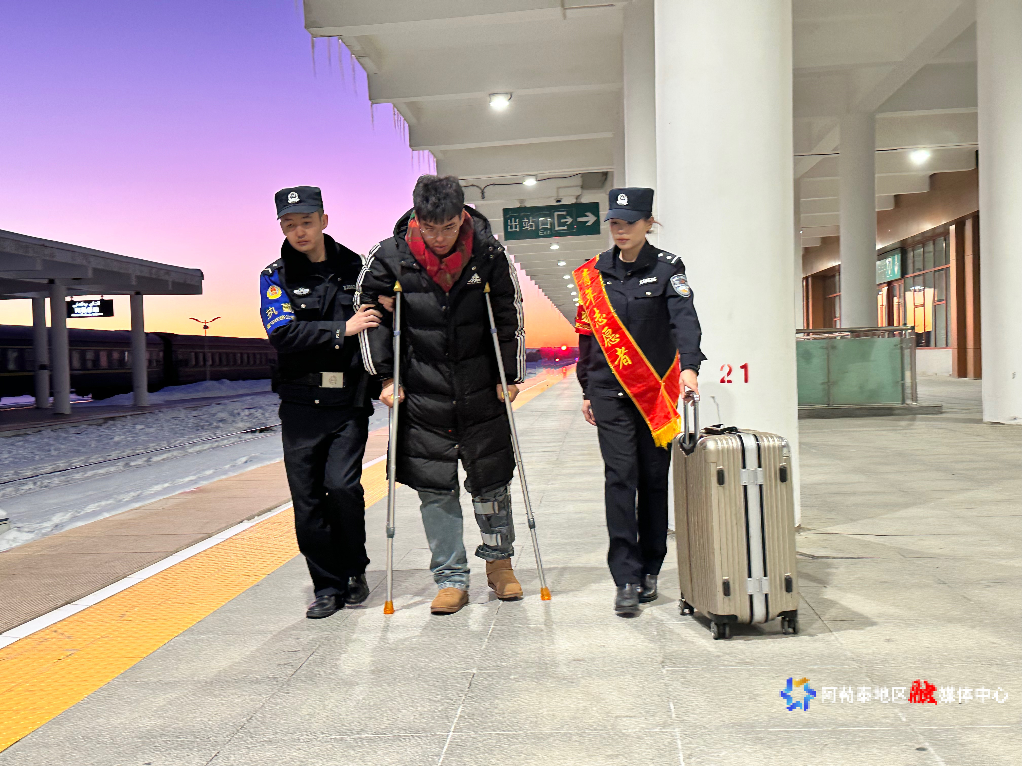乌鲁木齐铁路公安局奎屯公安处阿勒泰站派出所副所长齐海洋说:“春节期间,我们将不断加大警力投入和巡逻防控力度,全力护航旅客平安出行,切实保障每一位旅客都能安心踏上旅程。”