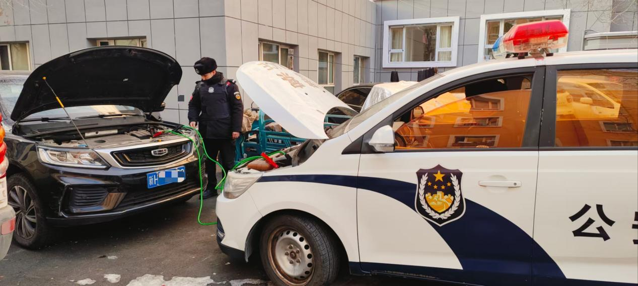 经检查,民辅警发现该车辆因电瓶亏电、低温导致无法正常启动。随后,民辅警用搭车线,借助警车电瓶发电,经过反复尝试,最终将车辆成功启动。