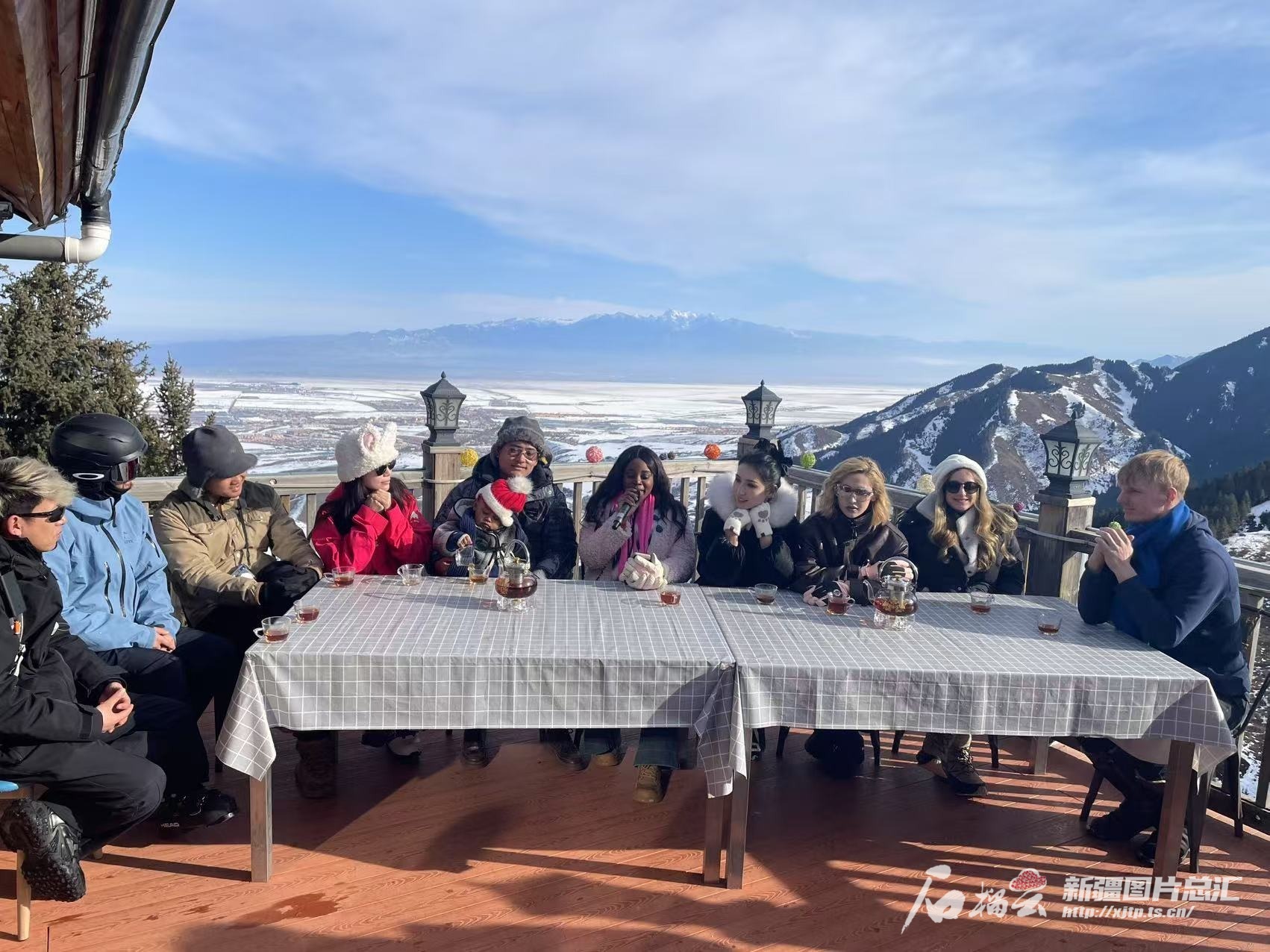 中外博主打卡将军山国际滑雪度假区。石榴云/新疆日报记者 姚刚摄