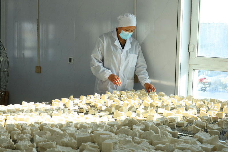 朱马尔提·亚汗的家庭牧场占地6000多平方米,自从对牲畜品种进行改良后,借助肉牛和奶牛具有生长速度快、肉质鲜美、产奶量高等优点,为牧场的发展注入了新的活力。同时,近两年,他还注重奶产业的发展,购入了先进的挤奶器、奶罐等设备,确保牛奶的采集、储存和运输过程的安全与卫生,先后在县城开了一家奶制品销售店,在村里开设了一间奶制品加工坊,专门销售自家生产的新鲜牛奶。