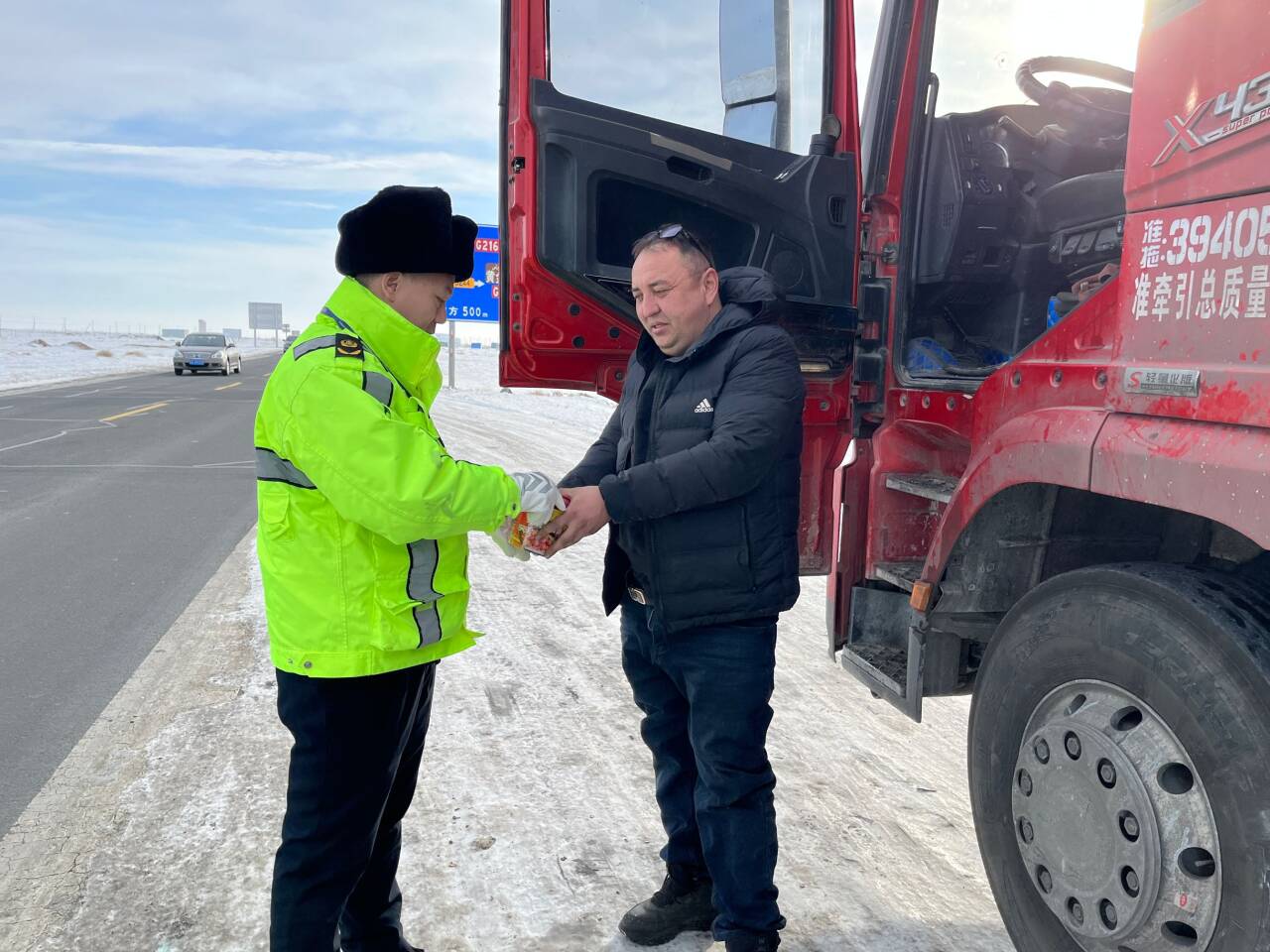 春运期间,执法人员积极开展公路救援行动,以最快的速度使受困车辆脱离险境,同时为广大司乘人员提供矿泉水、方便面等便民服务物资,以“执法温度”守护了群众安全。
