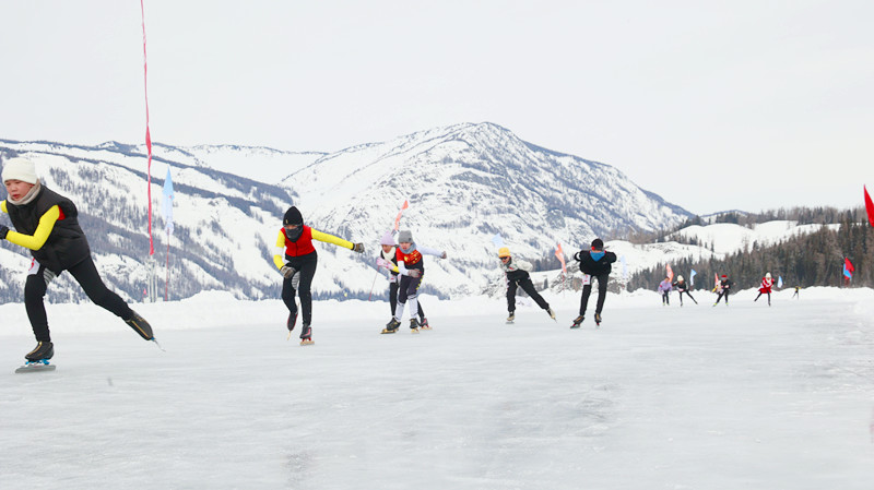 燃!百余名速滑爱好者在喀纳斯湖面展开冰雪竞技